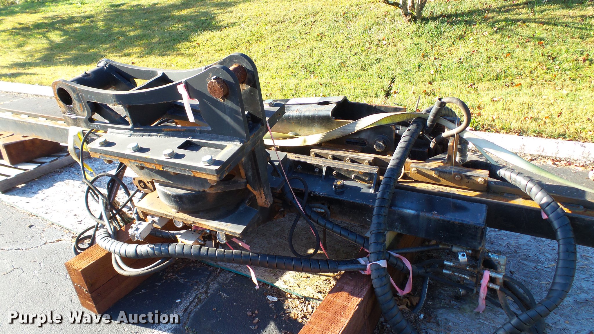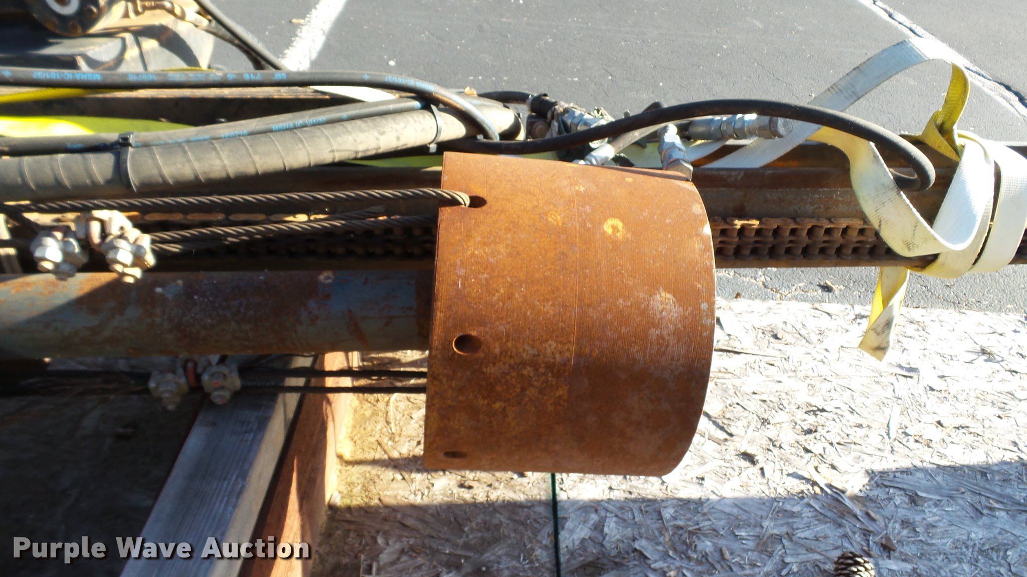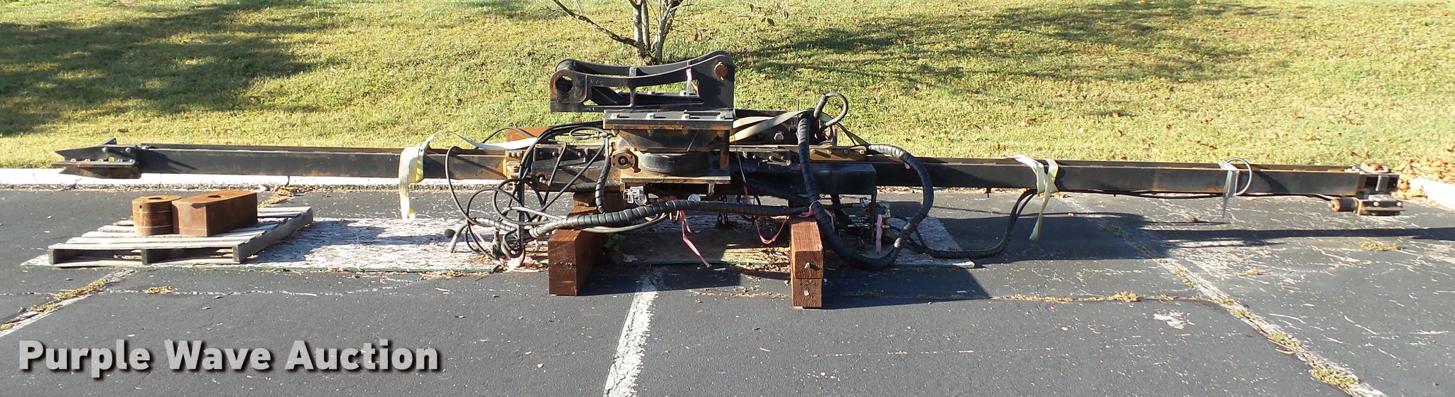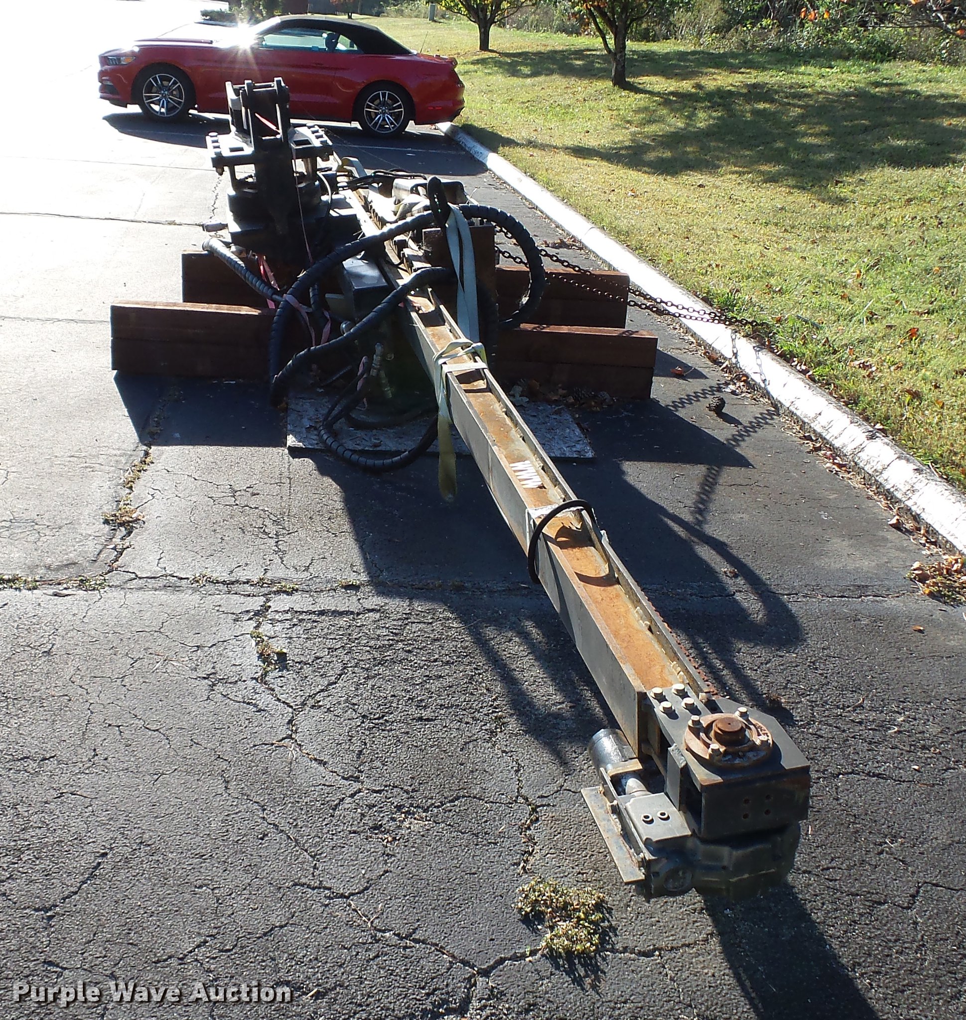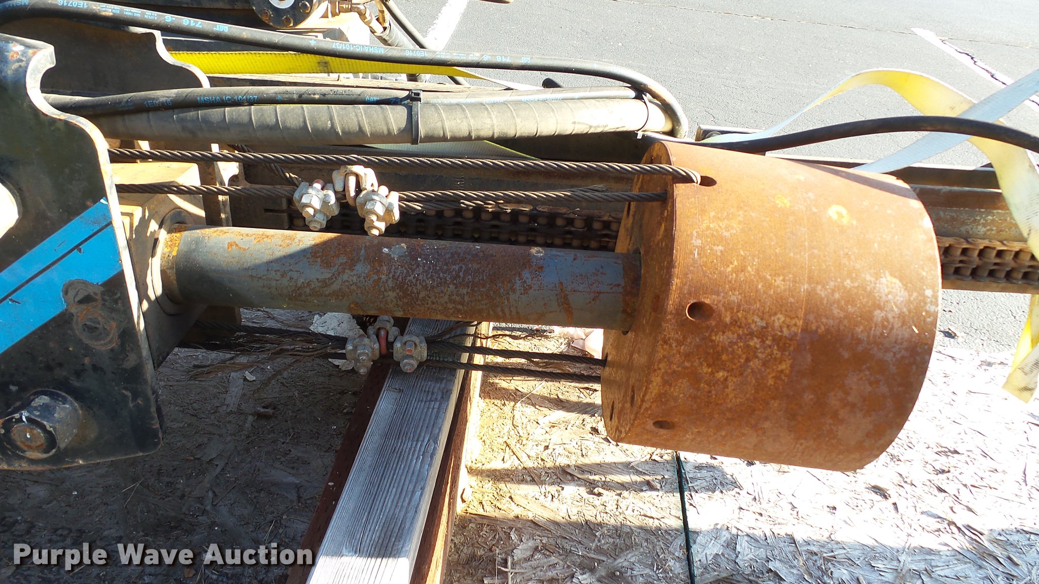 Purple Wave is selling a used Excavator Attach. in Tennessee. This item is a Word International rock drill with the following: 27'L, 12,000 lbs push/pull capacity, Hydraulic raise and lower, Hydraulic angle adjustment, 360 degree lateral movement of feed unit, RD940 Hydraulic ontrols, Metering valves, (3) pile cap subs, 8"H x 10" diameter, 10"H x 13 3/4" diameter, 18"L x 9 1/4"W x 8"H, 33" pin to pin, 11"W, Approximately 3,800 lbs, Removed from a Caterpillar 316 excavator