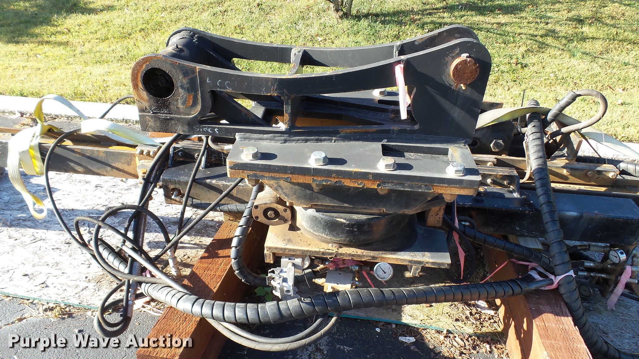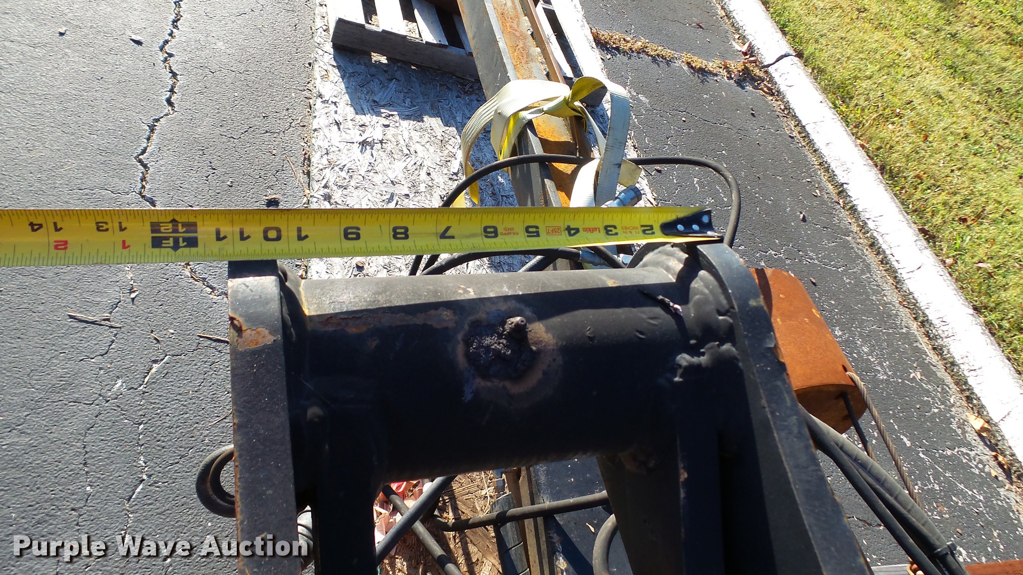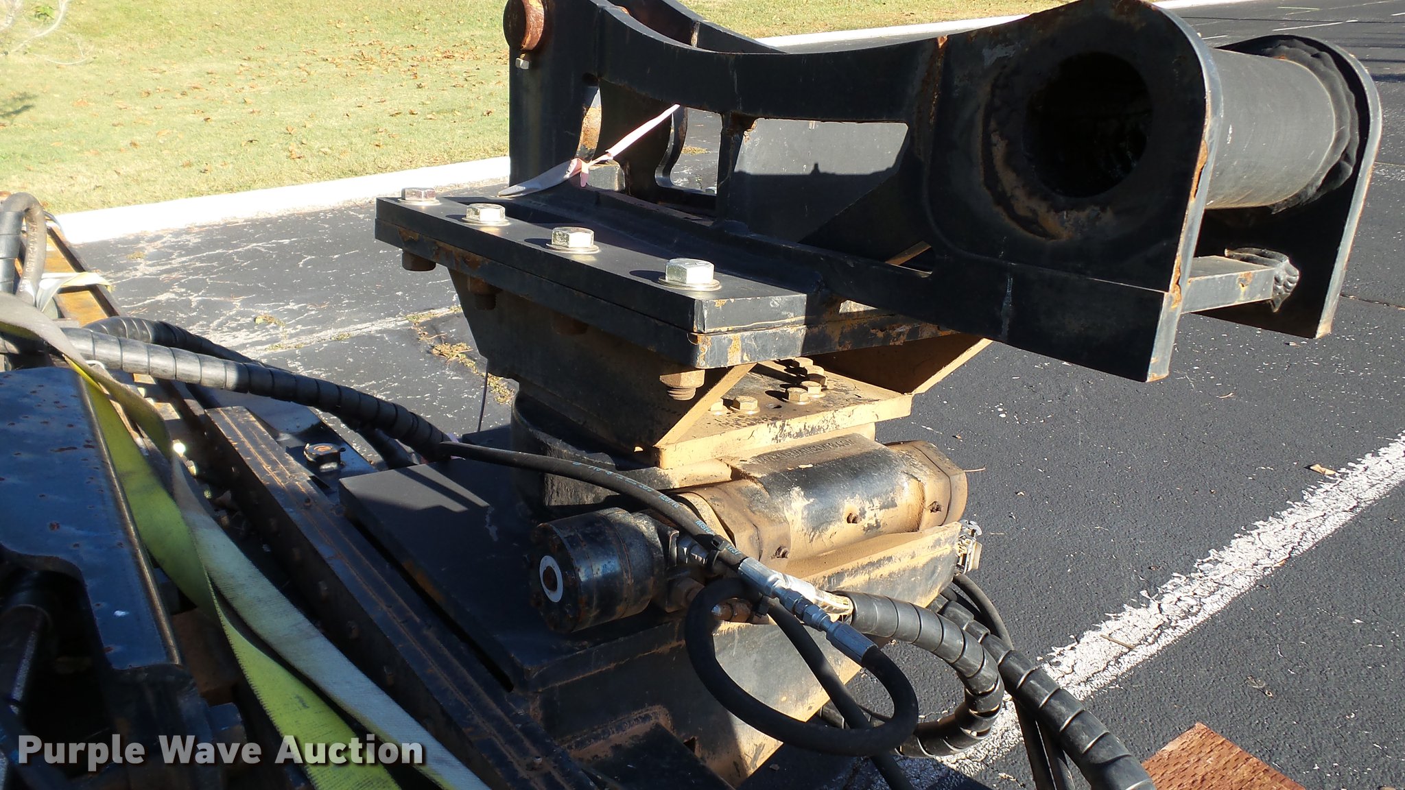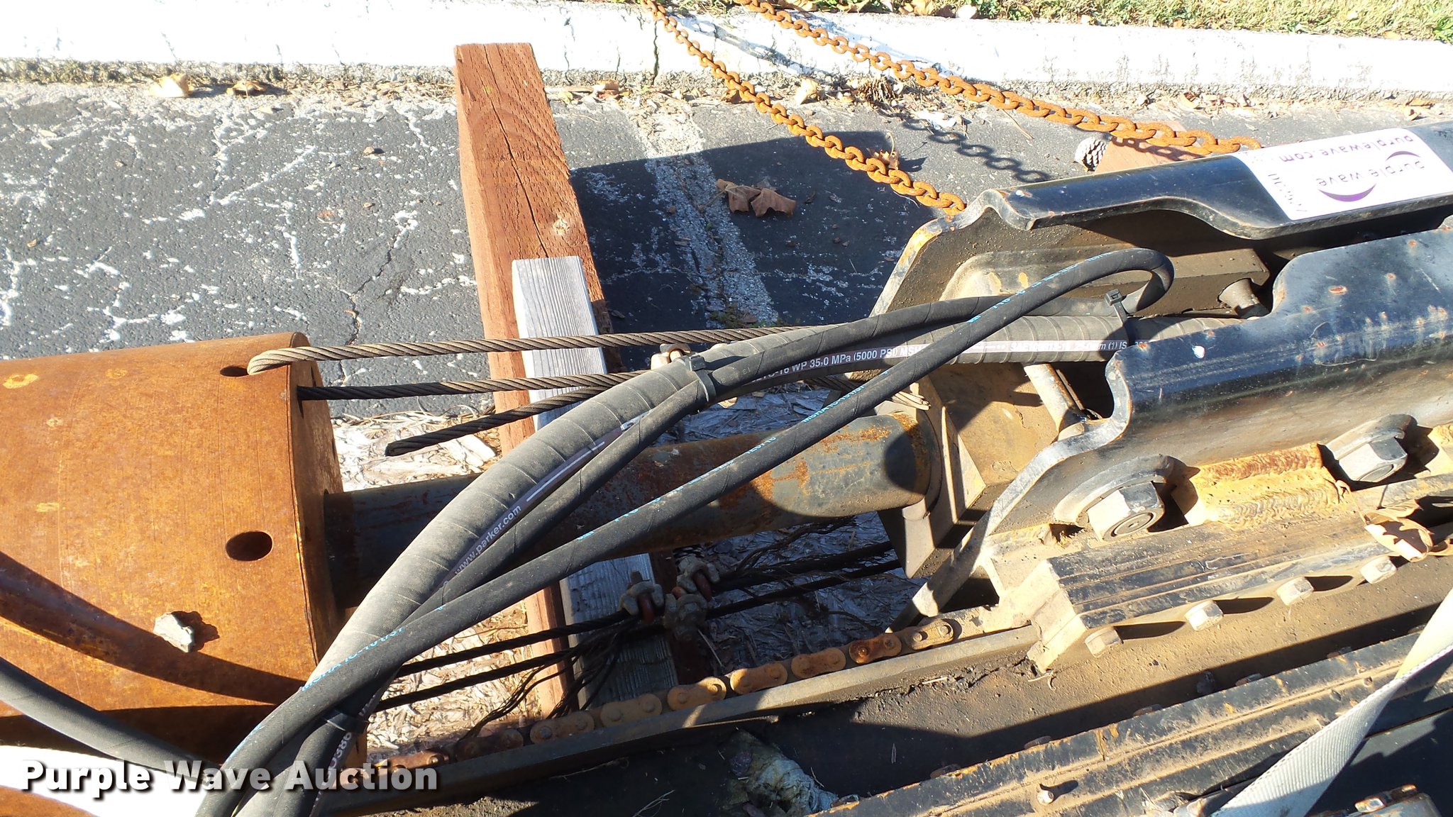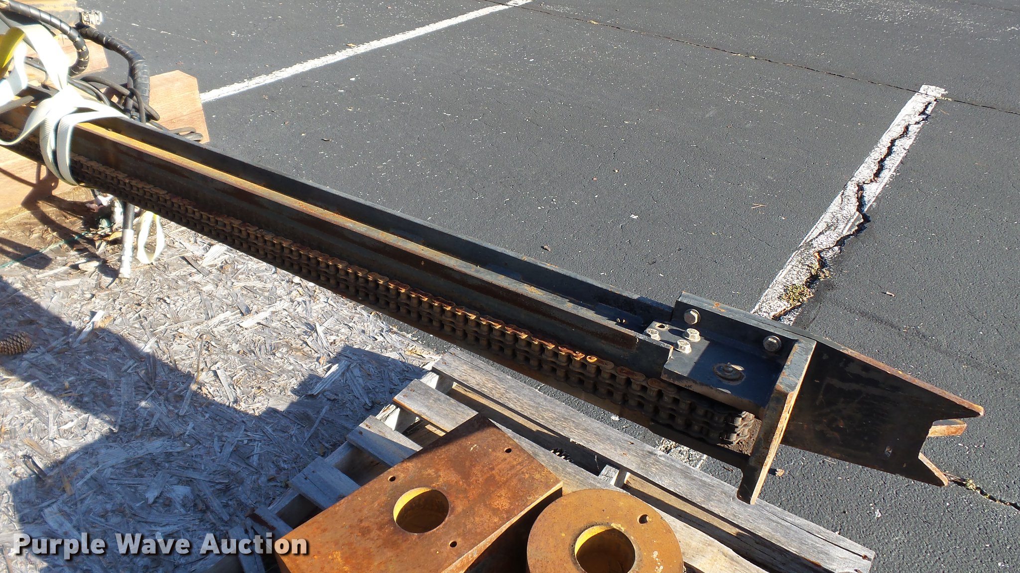 Purple Wave is selling a used Excavator Attach. in Tennessee. This item is a Word International rock drill with the following: 27'L, 12,000 lbs push/pull capacity, Hydraulic raise and lower, Hydraulic angle adjustment, 360 degree lateral movement of feed unit, RD940 Hydraulic ontrols, Metering valves, (3) pile cap subs, 8"H x 10" diameter, 10"H x 13 3/4" diameter, 18"L x 9 1/4"W x 8"H, 33" pin to pin, 11"W, Approximately 3,800 lbs, Removed from a Caterpillar 316 excavator