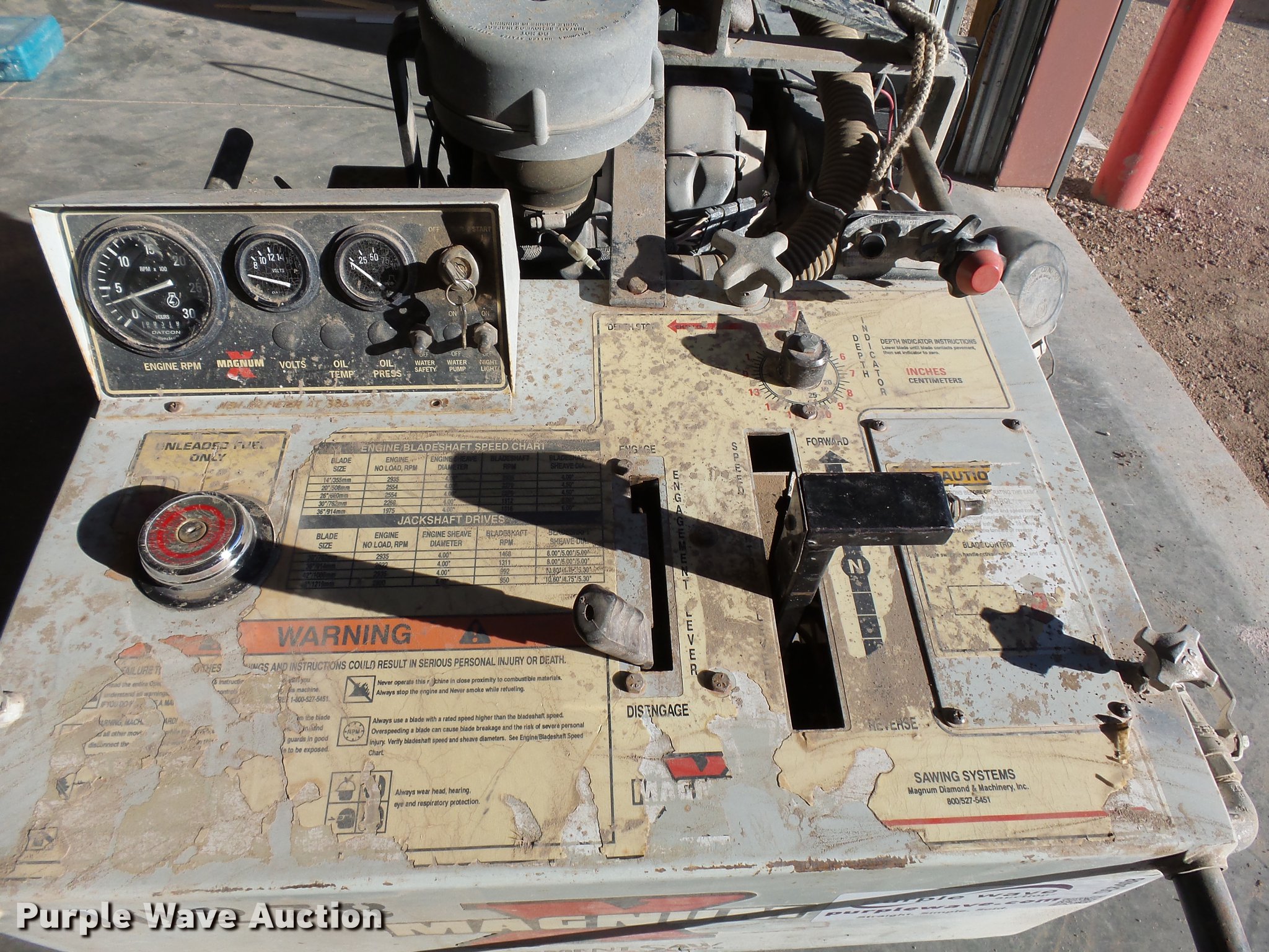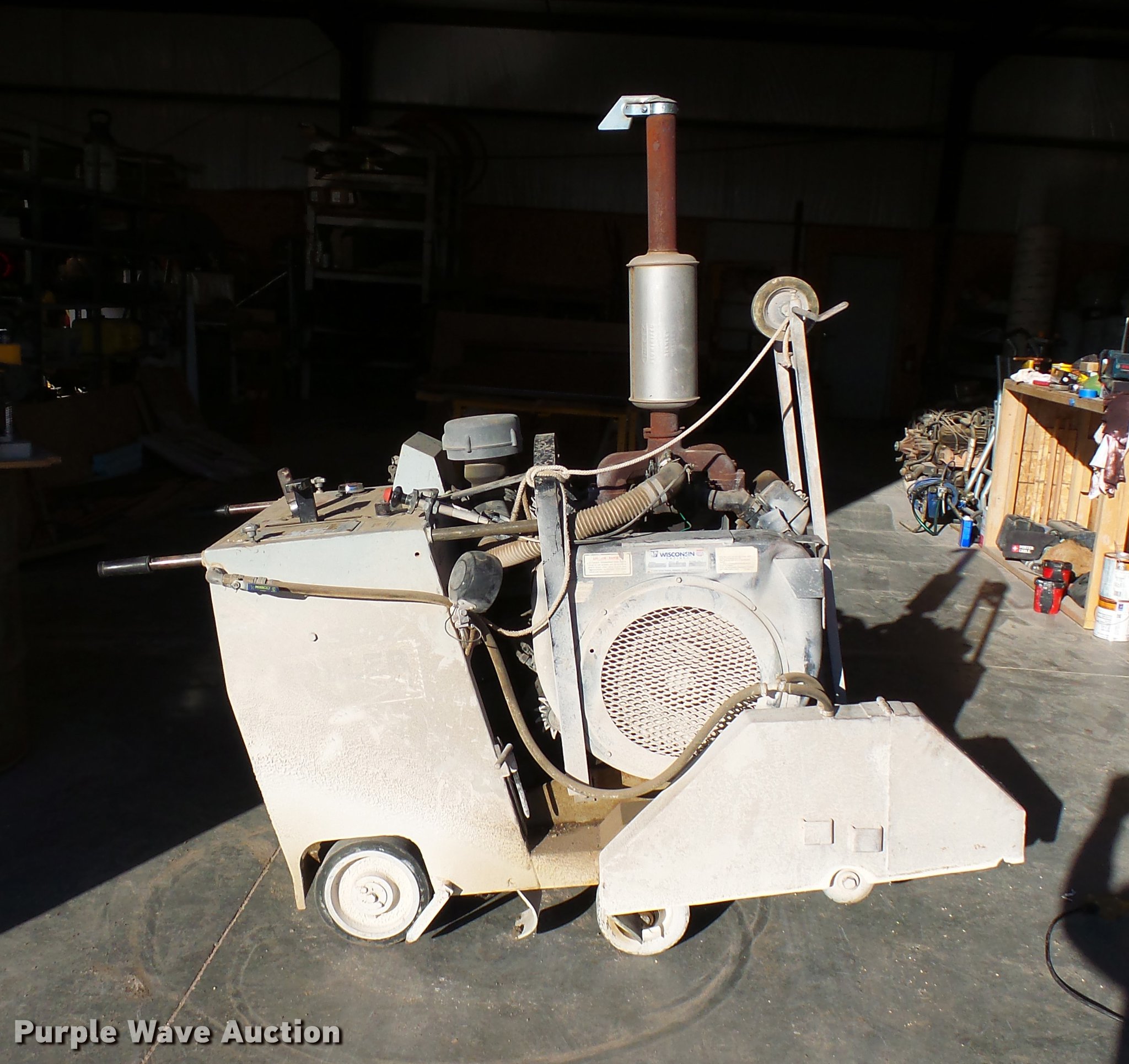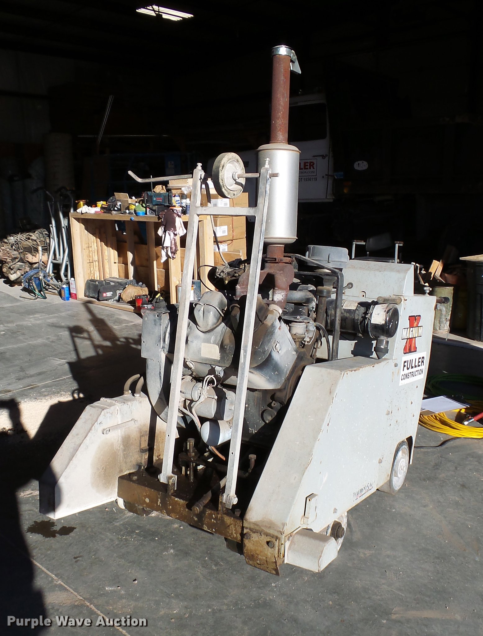 Purple Wave is selling a used Concrete Equip. or Acces. in Nebraska. This item is a Magnum Supermag 26 concrete saw with the following: 318 hours on meter, Wisconsin V46501 gas engine, Serial 99120773, 26" blade, Work lights, Serial 425001642