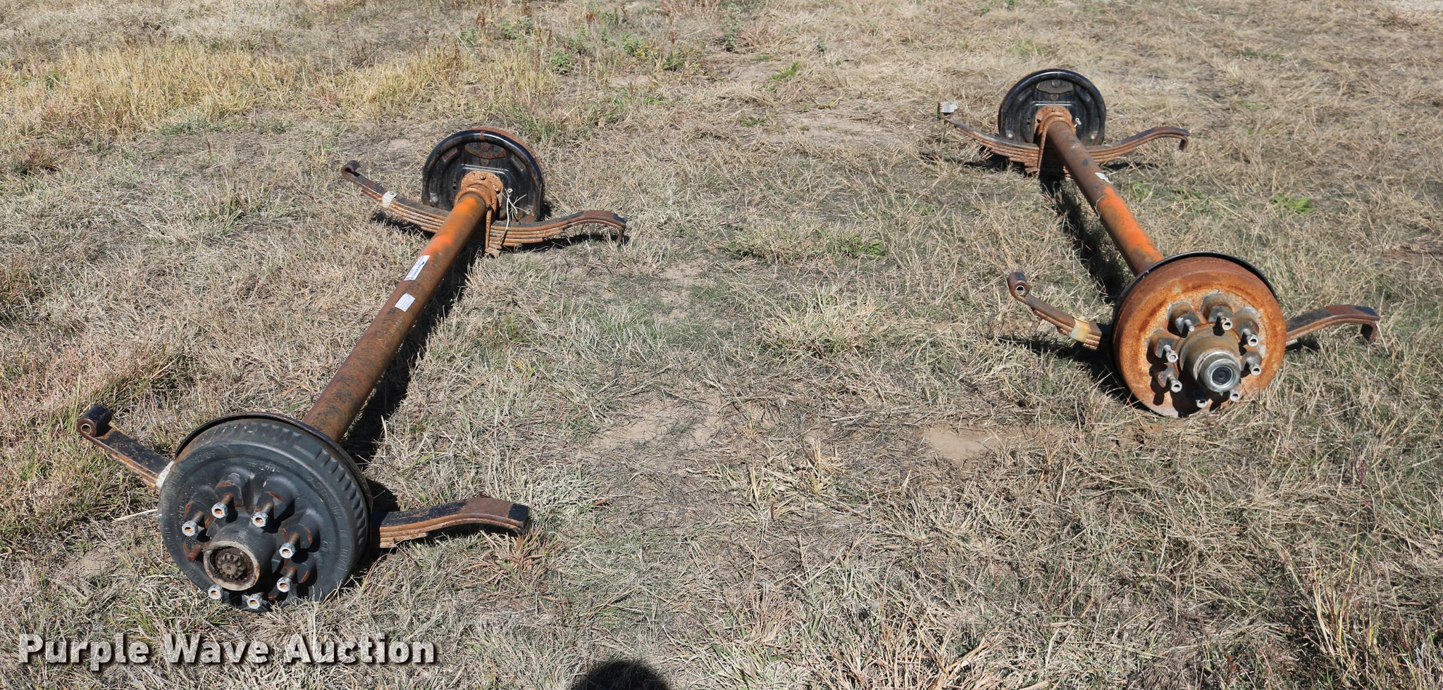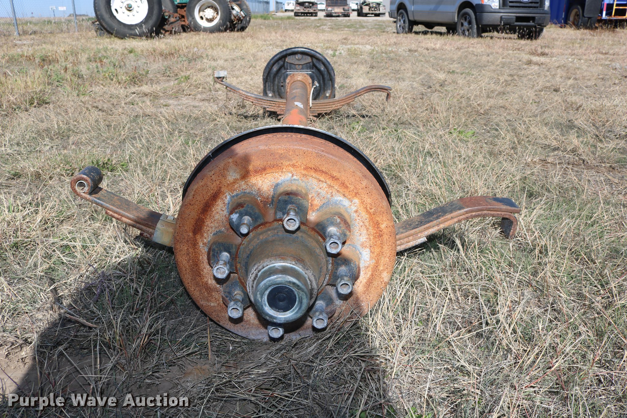 Purple Wave is selling a used Truck Part and Attach. in Kansas. This item is a (2) axles with the following: Quality Trailer Products Axle Division, 7,000 lbs capacity, PJ Summer, 7,000 lbs capacity, Part No. TS70730580865ABC, Eight bolt wheels, 63 1/2" between hubs