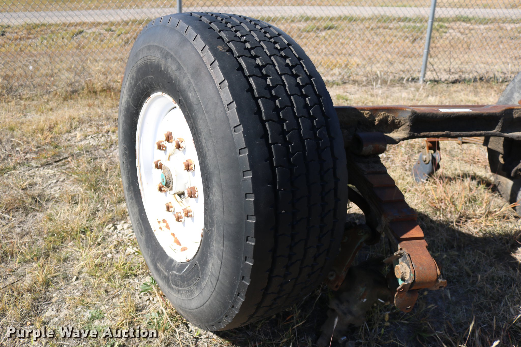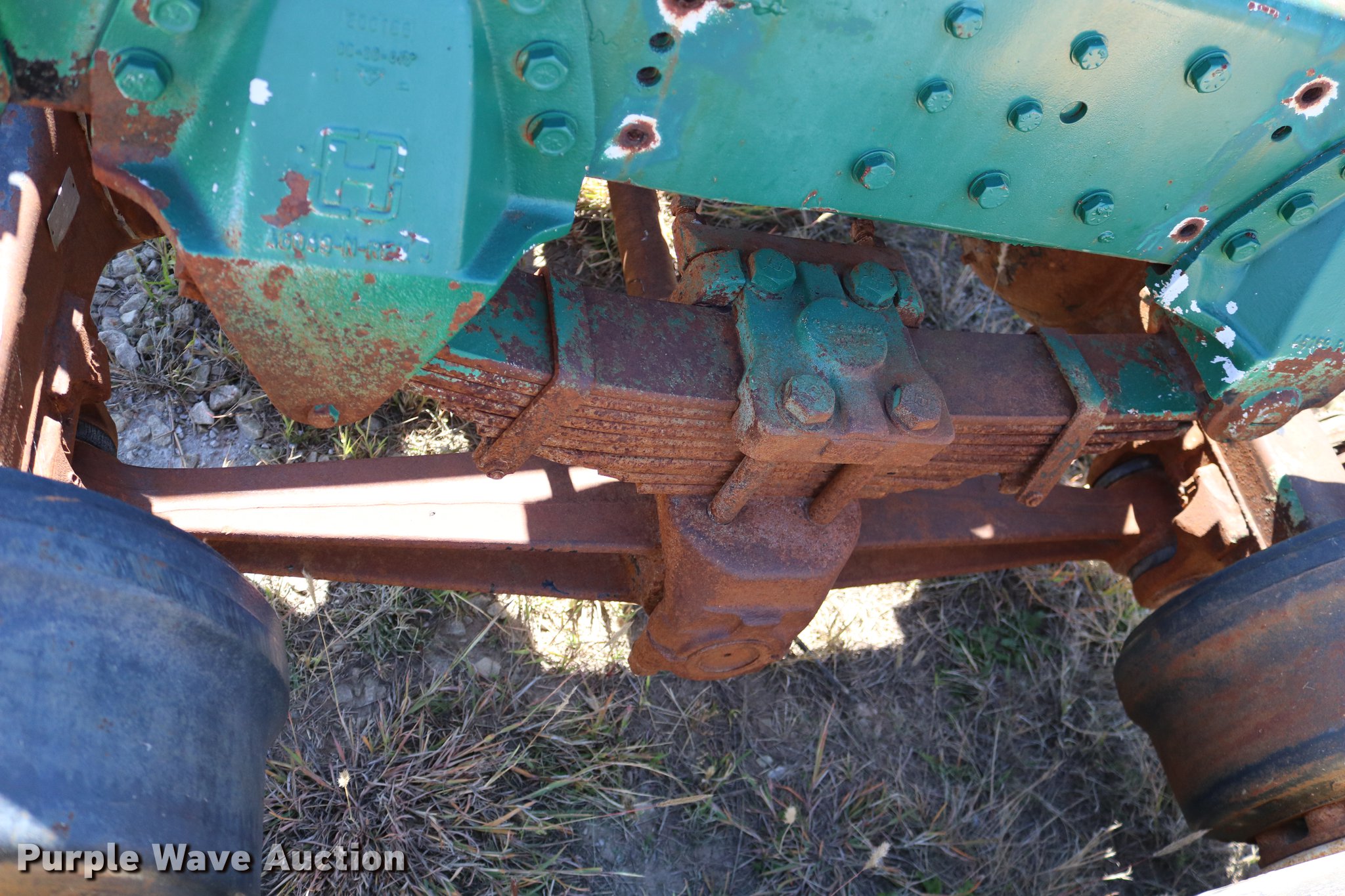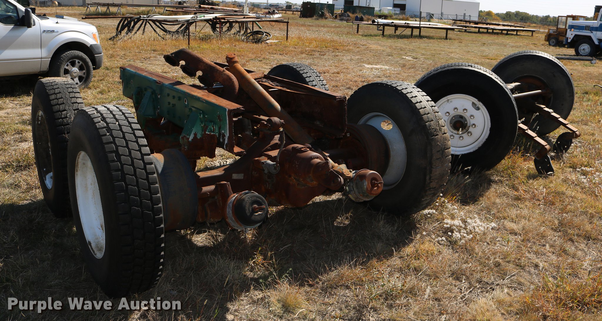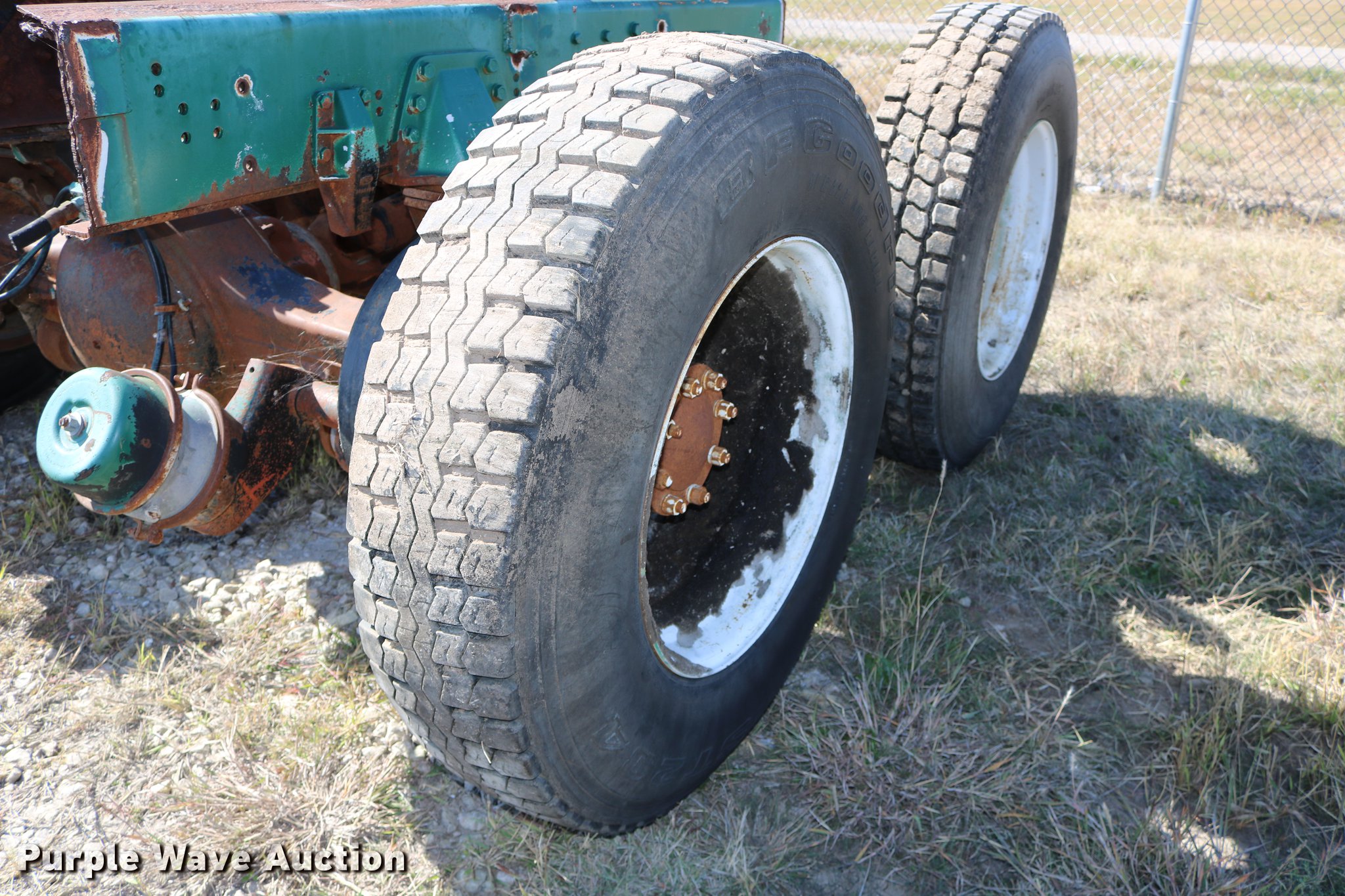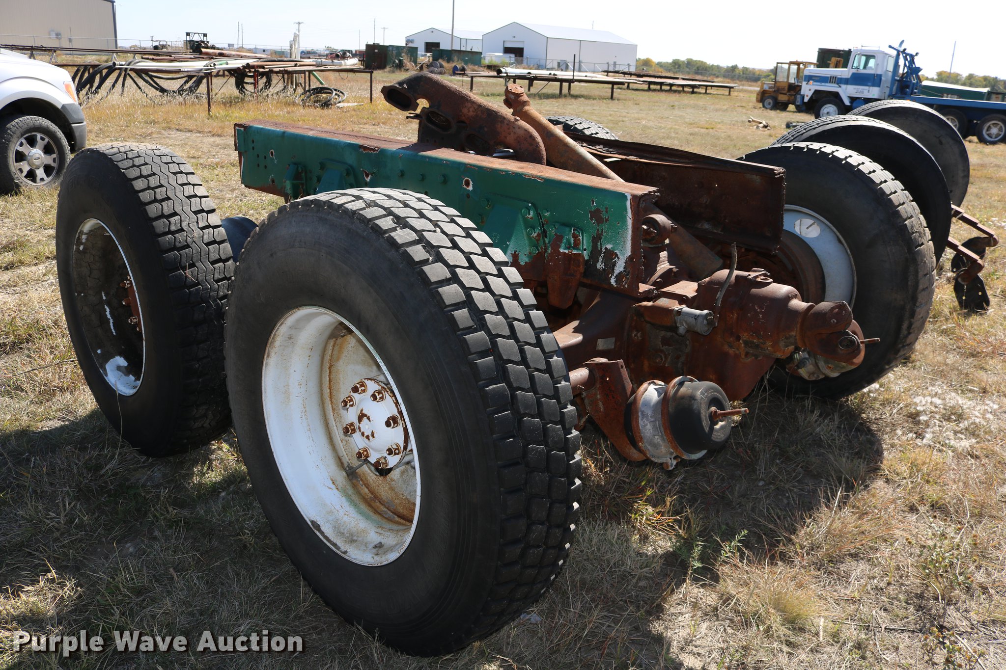 Purple Wave is selling a used Truck Part and Attach. in Kansas. This item is a GMC Brigadier axles with the following: Rear spring over walking beam suspension, Front spring suspension, (4) 11R22.5 tires, (2) 425/65R22.5 tires