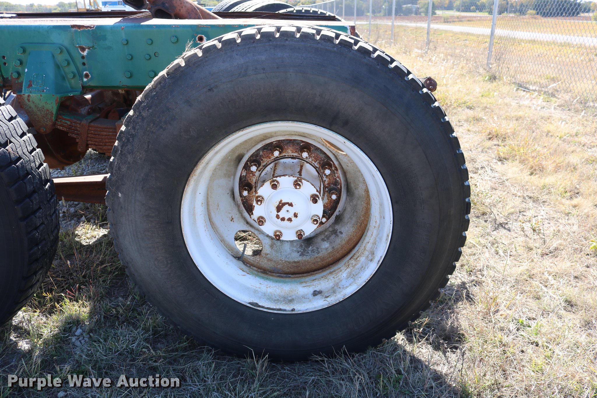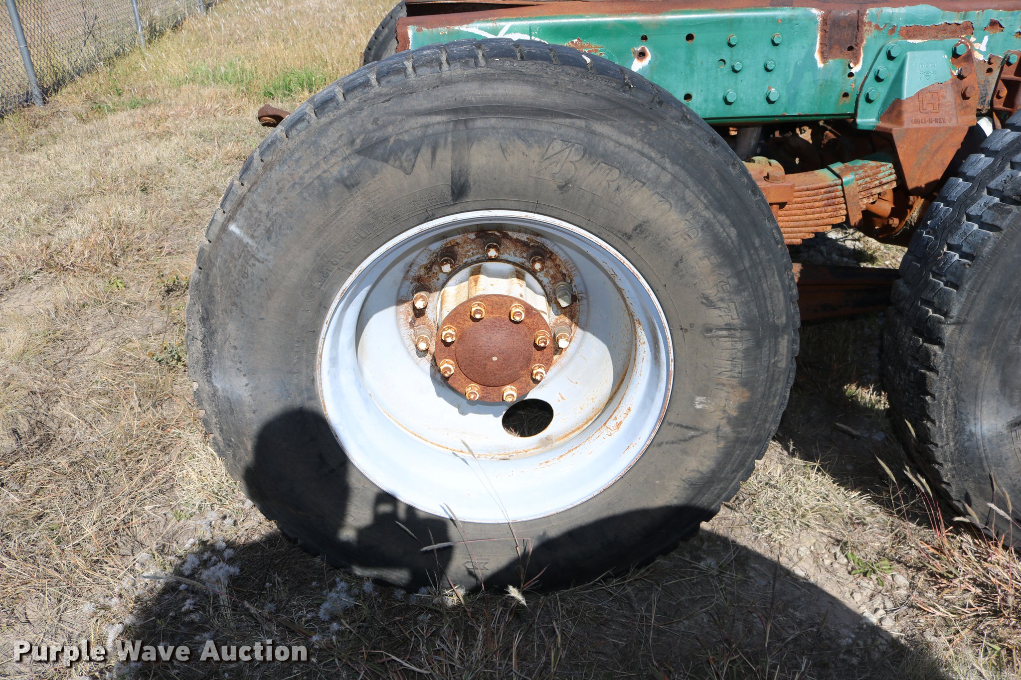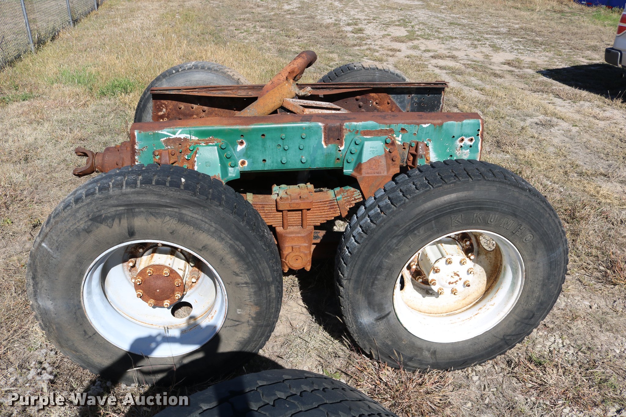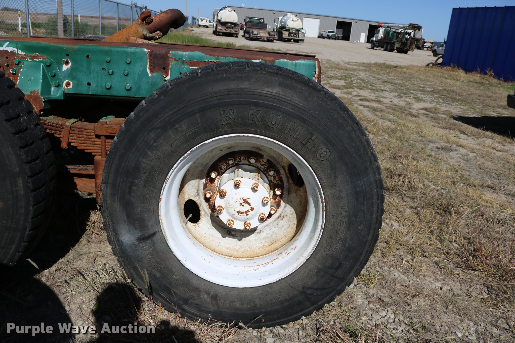 Purple Wave is selling a used Truck Part and Attach. in Kansas. This item is a GMC Brigadier axles with the following: Rear spring over walking beam suspension, Front spring suspension, (4) 11R22.5 tires, (2) 425/65R22.5 tires