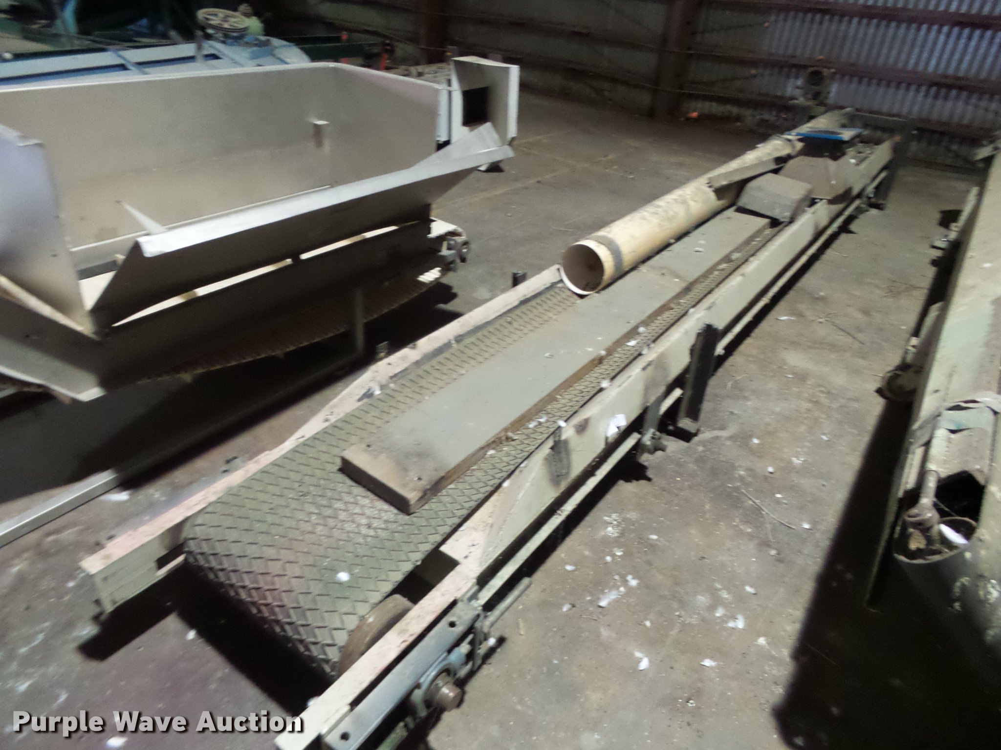 Purple Wave is selling a used Auger or Conveyor in Texas. This item is a Elevator legs and conveyors with the following: 12'L x 12"W V conveyor, 14'L x 17"W conveyor, 7'L x 32"W unloading auger, My-D Hand-D auger, 5" diameter, 174"L conveyor, 13"W belt, 19"W frame, Lift conveyor, 21.5"W overall, 14"W belt, 4' x 2' trough, 6'H, 17' elevator, 21"H overall, 20" x 12" shaft, 17' elevator, (2) 6" x 8" shafts