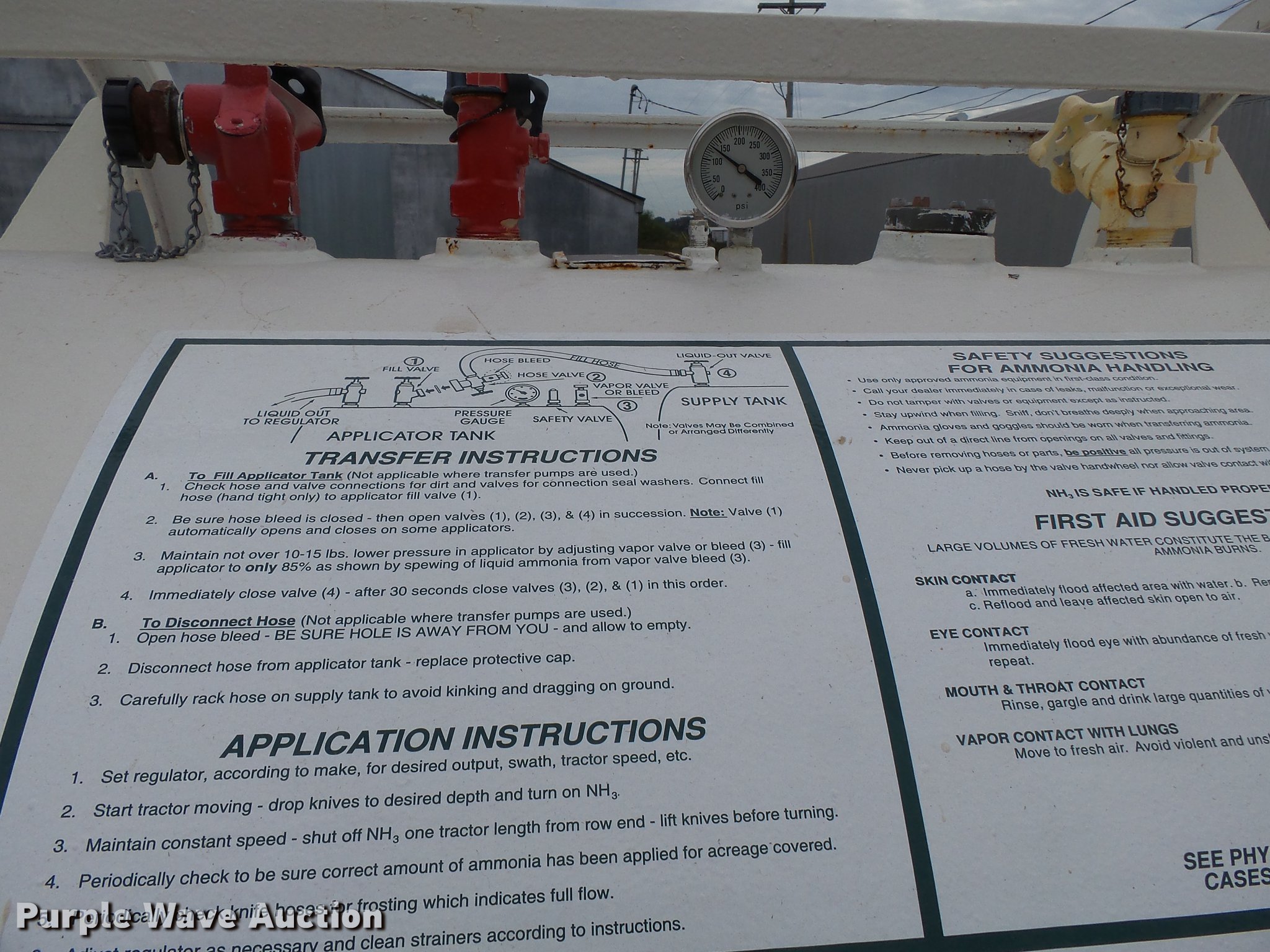 Purple Wave is selling a used Applicator Attach. in Missouri. This item is a Anhydrous ammonia nurse tank with the following: 16'L tank, 1,000 gallon capacity, 12.5-15 tires, Decals will be removed prior to auction