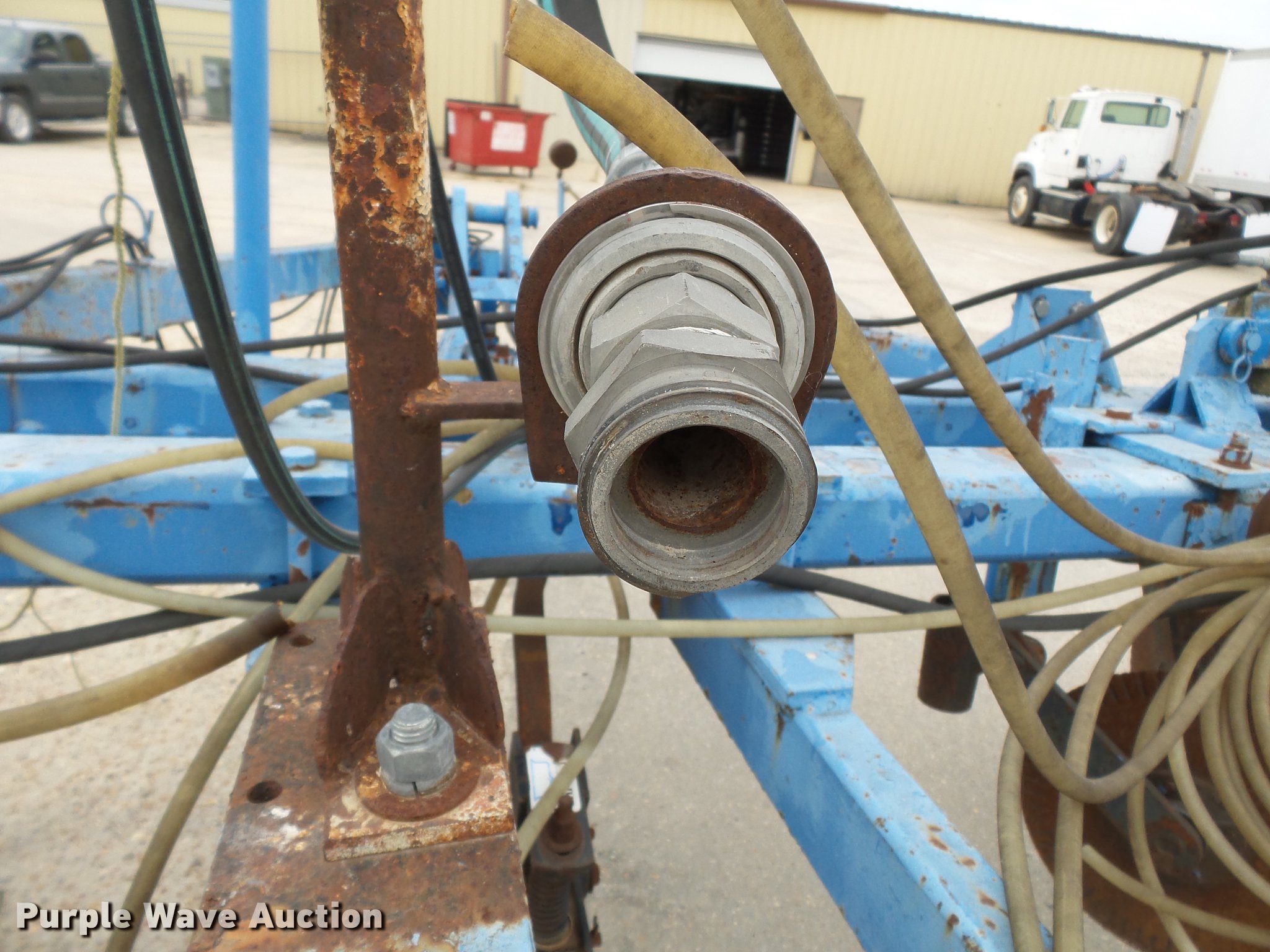 Purple Wave is selling a used Applicator Pull Type in Missouri. This item is a Blu-Jet anhydrous ammonia applicator with the following: 12 rows, Hydraulic lift and fold, 27x9.5-15 tires, Unknown operating condition