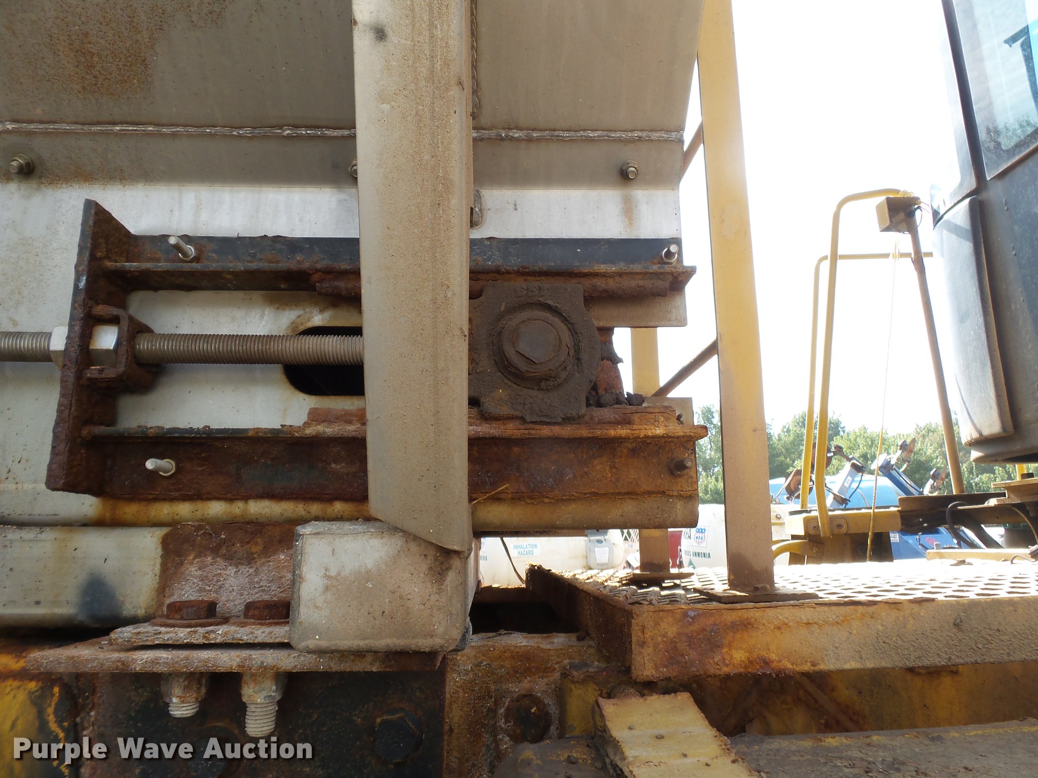 Purple Wave is selling a used Applicator Self Propelled in Missouri. This item is a 2002 Ag-Chem RoGator 1254C self-propelled applicator with the following: 13 miles on odometer, 4.4 hours on meter, Unknown actual miles and hours, Cummins six cylinder diesel engine, Hydrostatic transmission, Four wheel drive, AC and heat, AM/FM, Suspension seat, Trimble CFX750 GPS monitor, New Leader L3020G4-8 stainless steel dry fertilizer spreader bed, 8'L, 24"W conveyor belt, Dual spinners, Serial 121789, Hydraulic ladder, Hydraulic axle width adjust, 380/90R46 row crop tires, Low voltage light on, Hydraulic axle width adjust inoperable, Hydraulic ladder inoperable, Serial 125063202, Unit# 52408400