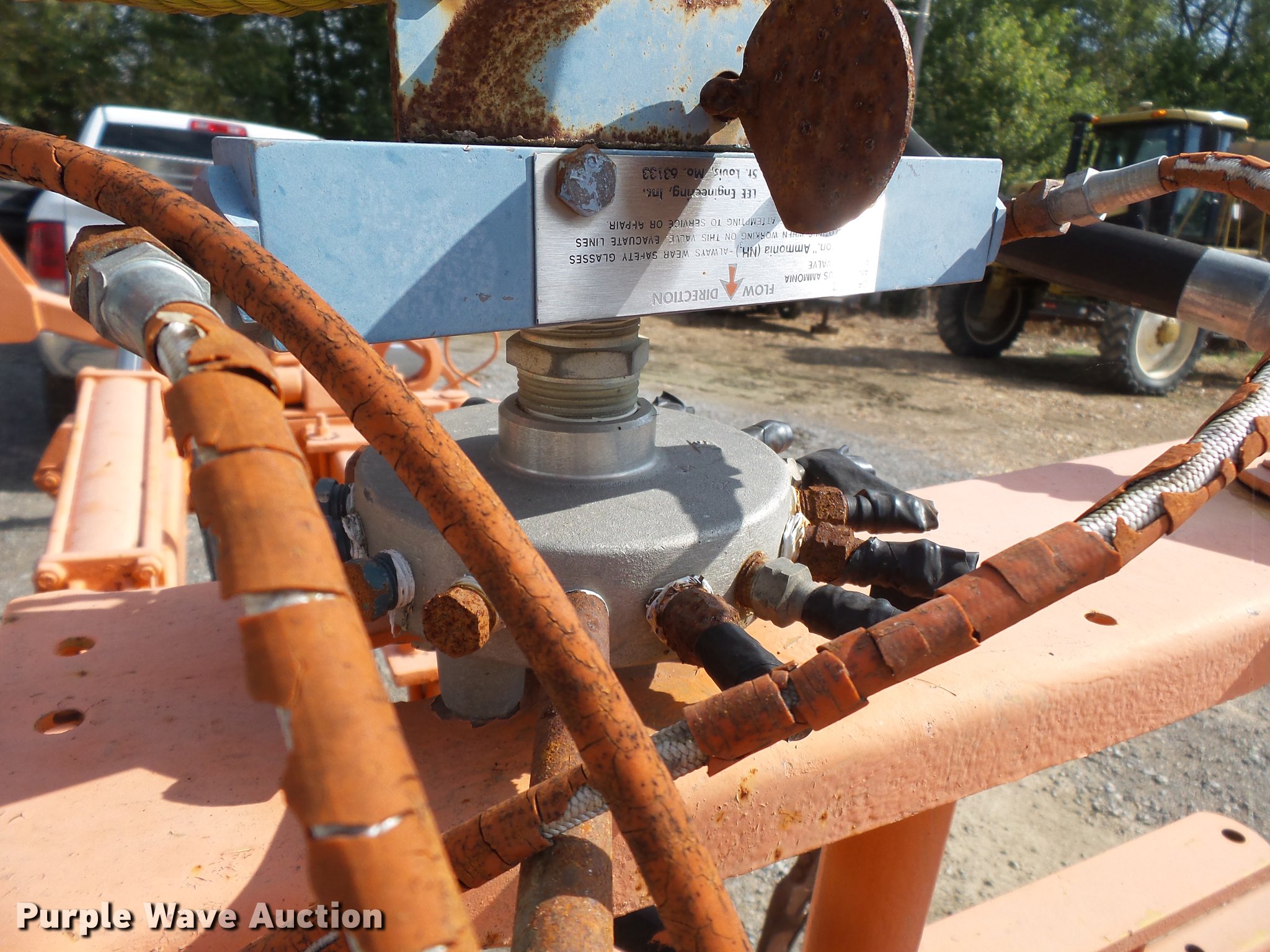 Purple Wave is selling a used Applicator Pull Type in Missouri. This item is a Anhydrous ammonia applicator with the following: Eight rows, 30" row spacing, Folding toolbar, Three point, LT235/75R15 tires, Unit# 49759900