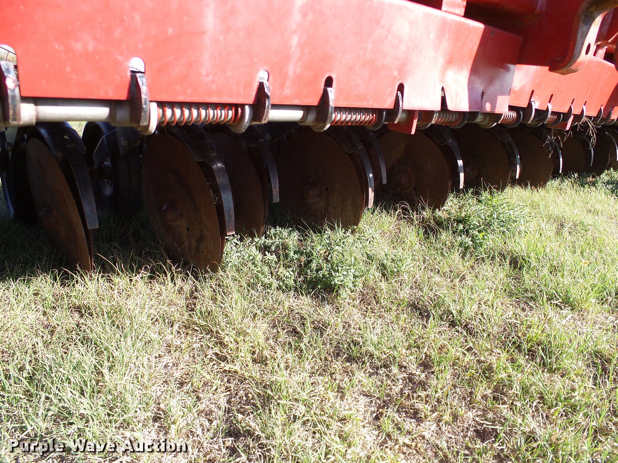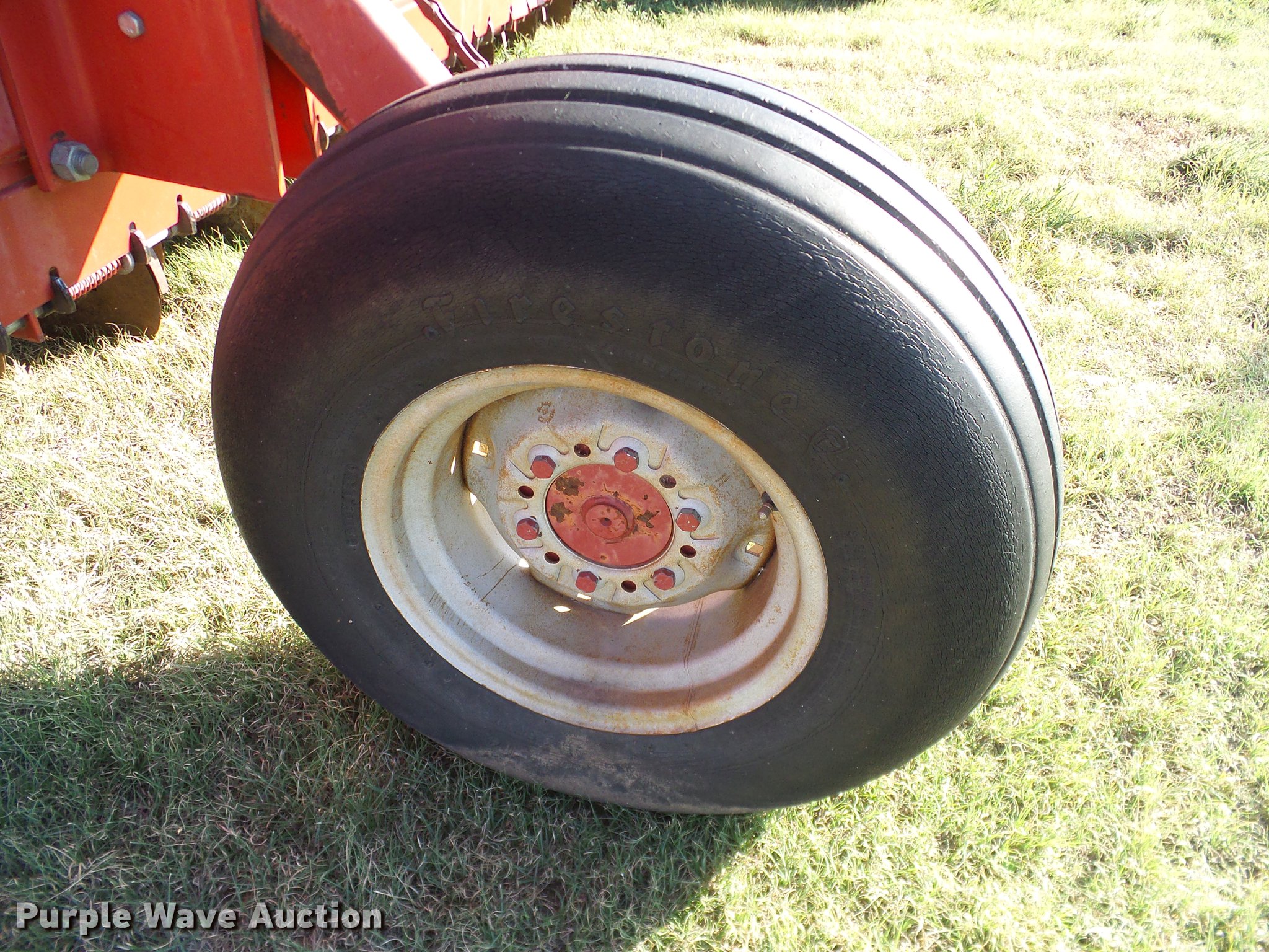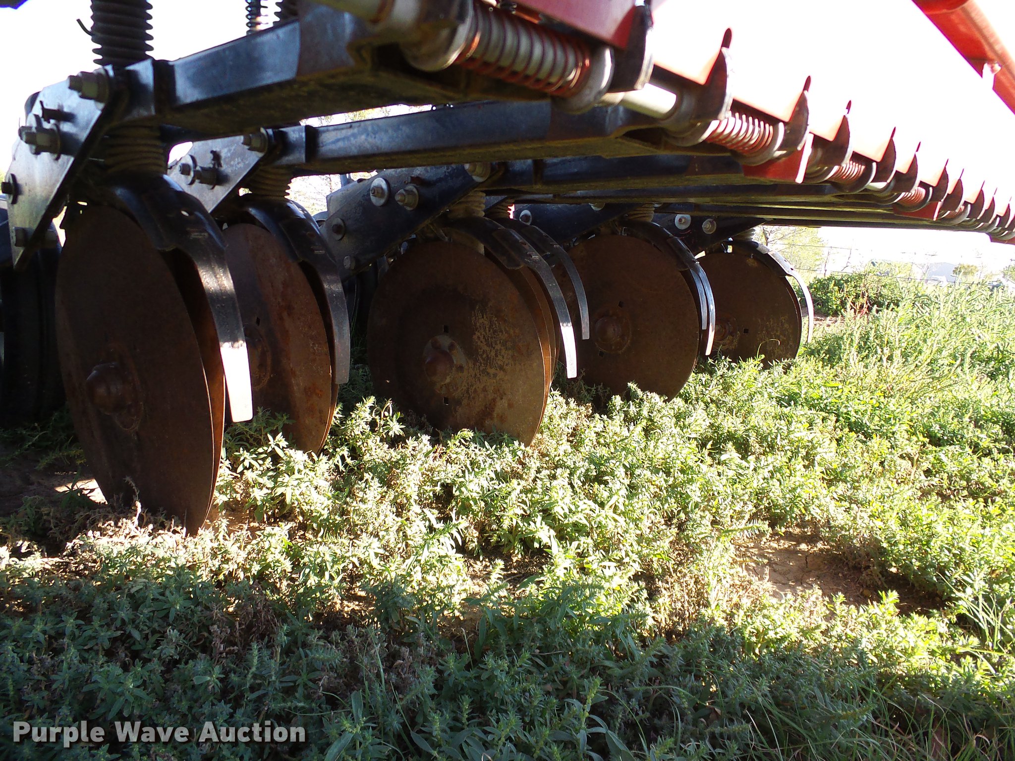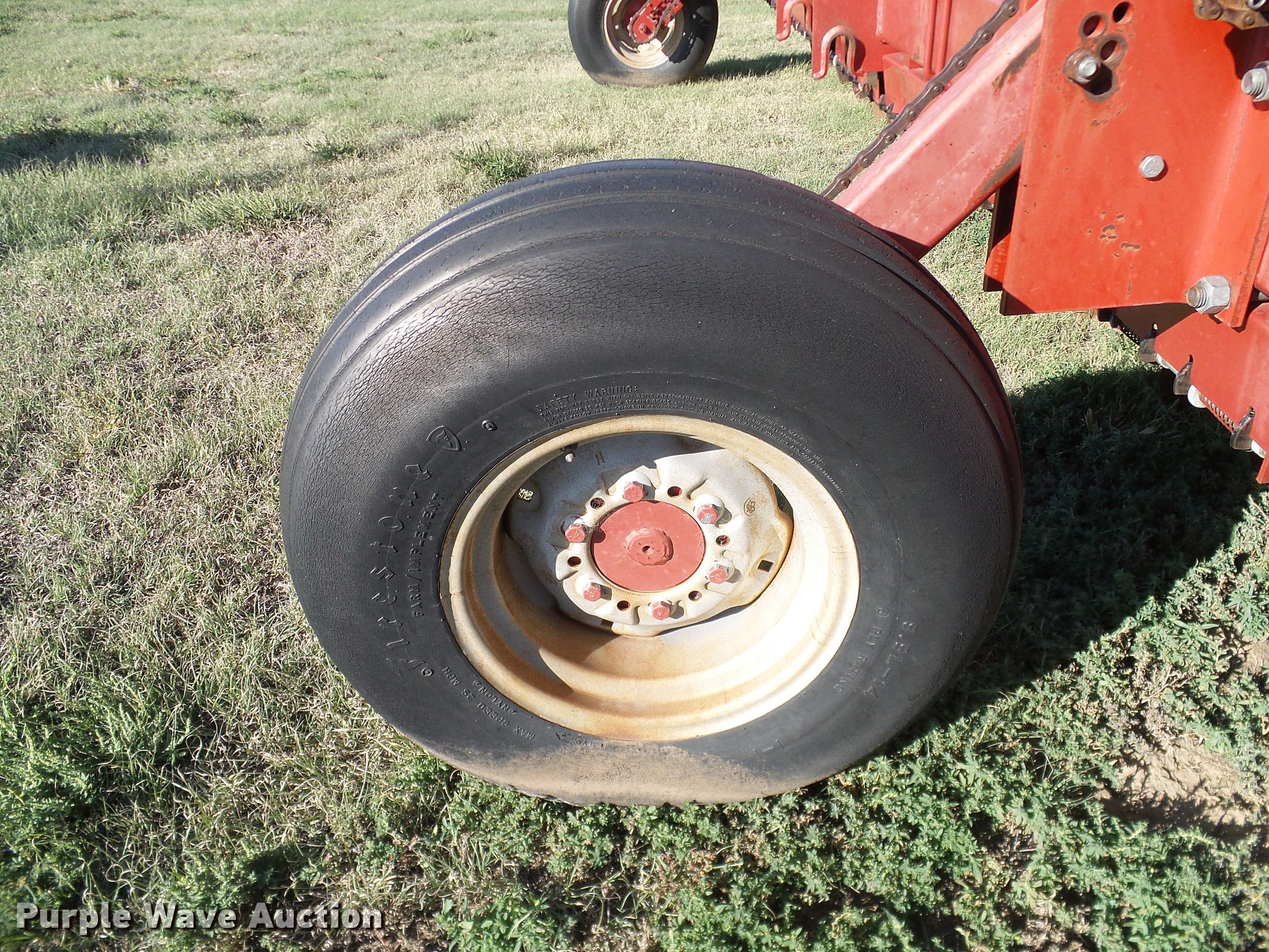 Purple Wave is selling a used Grain Drill or Seeder in Oklahoma. This item is a Case IH 5200 grain drill with the following: 19.5'W, 30 row units, 8" row spacing, Bulk fill system, Ground meter drive, HD spring down pressure, Double disk openers, Rubber closing system, Three point, (2) 9.5L-14 drive/outside tires, Serial 0100472