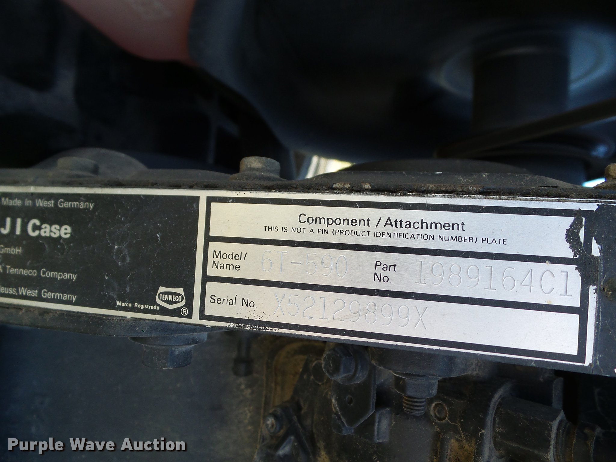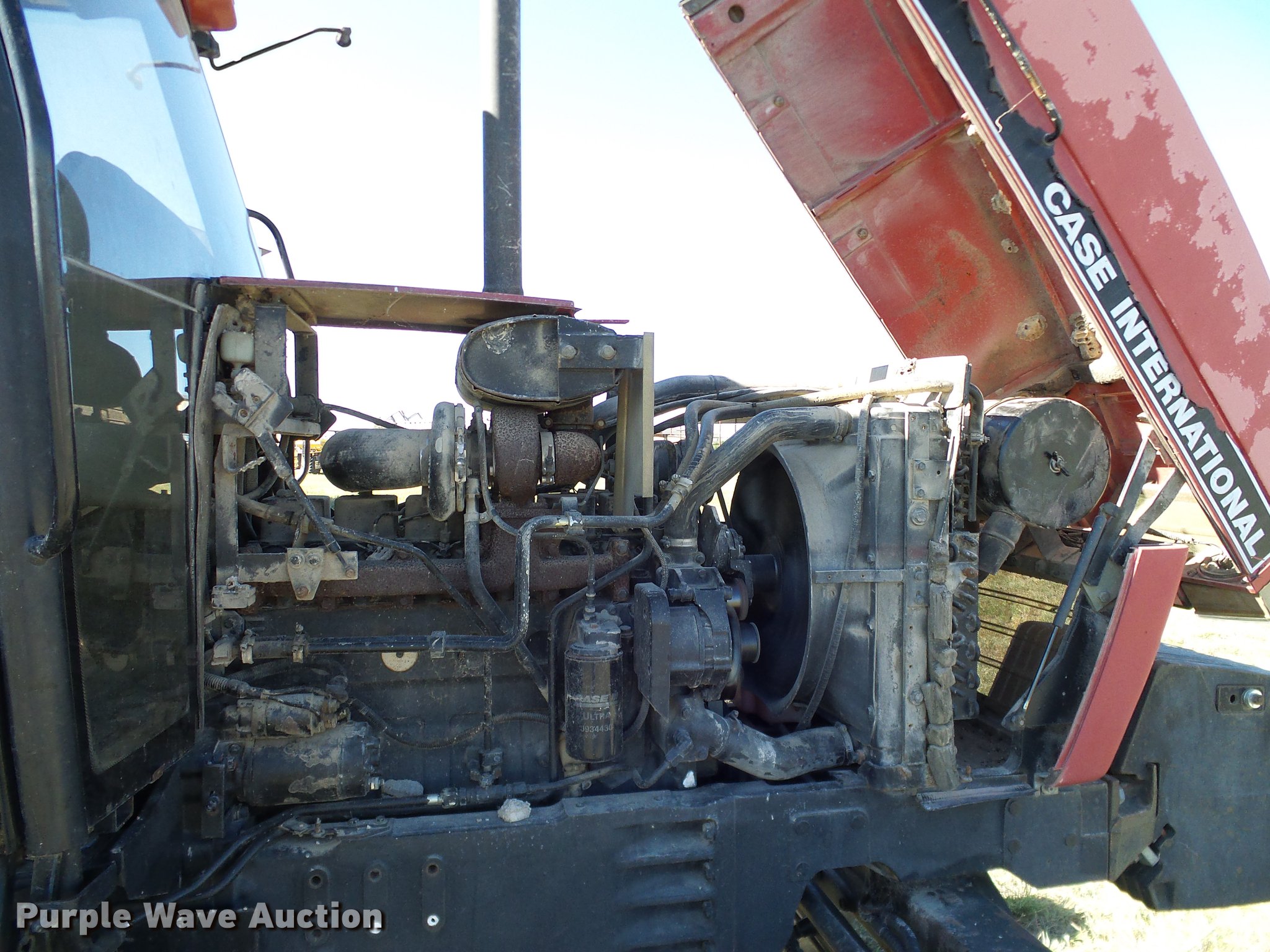 Purple Wave is selling a used Tractor in Texas. This item is a 1992 Case IH Maxxum 5250 tractor with the following: Case 6T-590 six cylinder turbo diesel engine, Serial 52129899, Partial powershift transmission, 16F-16R gears, AC and heat, Tilt steering wheel, AM/FM, Suspension seat, Visor, Three point, Top link, Seven pin outlet, 540 PTO, (2) rear hydraulic remotes, (12) suitcase weights, 18.4R38 rear tires, Hour meter inoperable, possible bad chip, Non-operational parking brake, AC leaks in cab, Serial JJF1022490