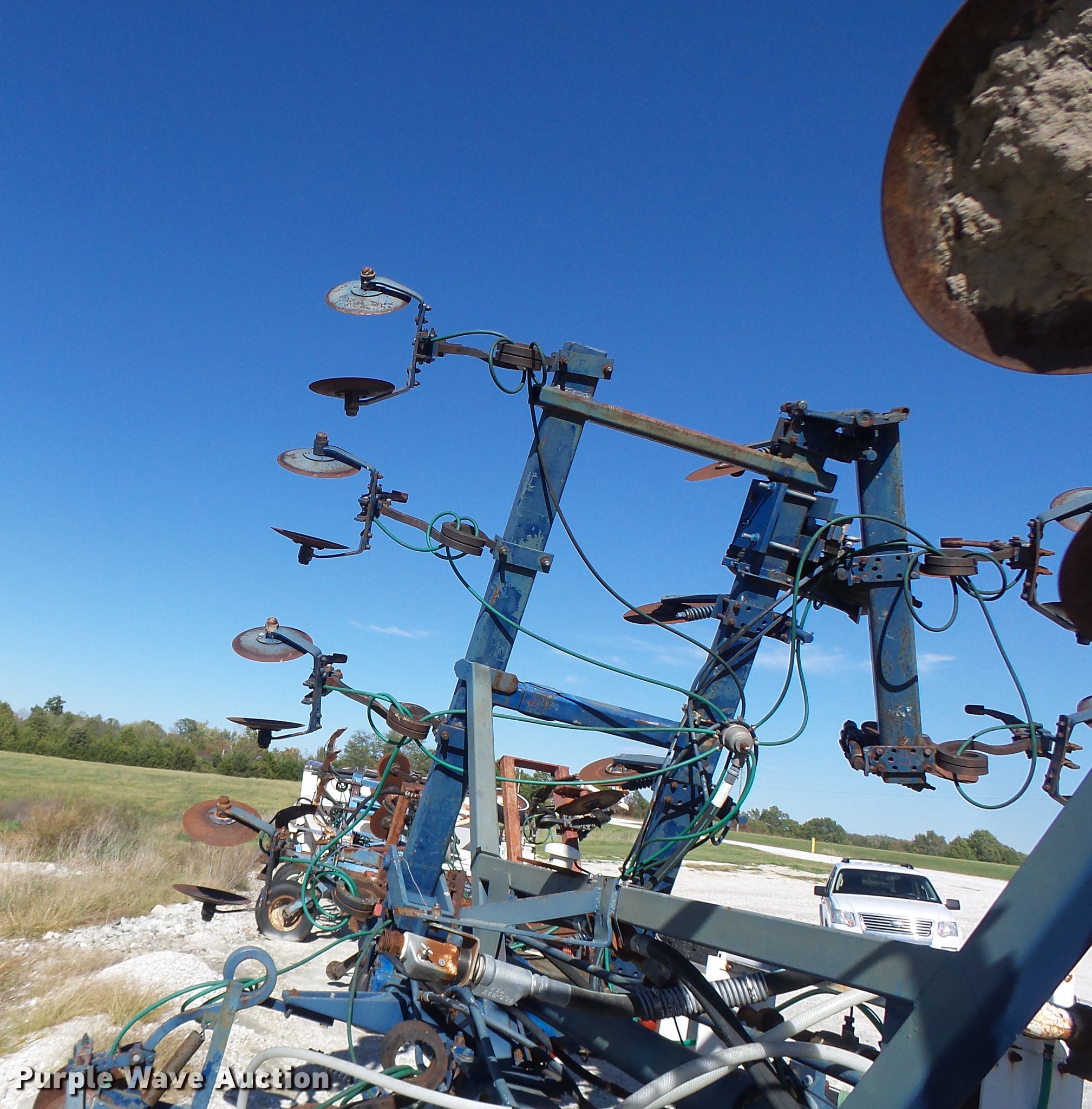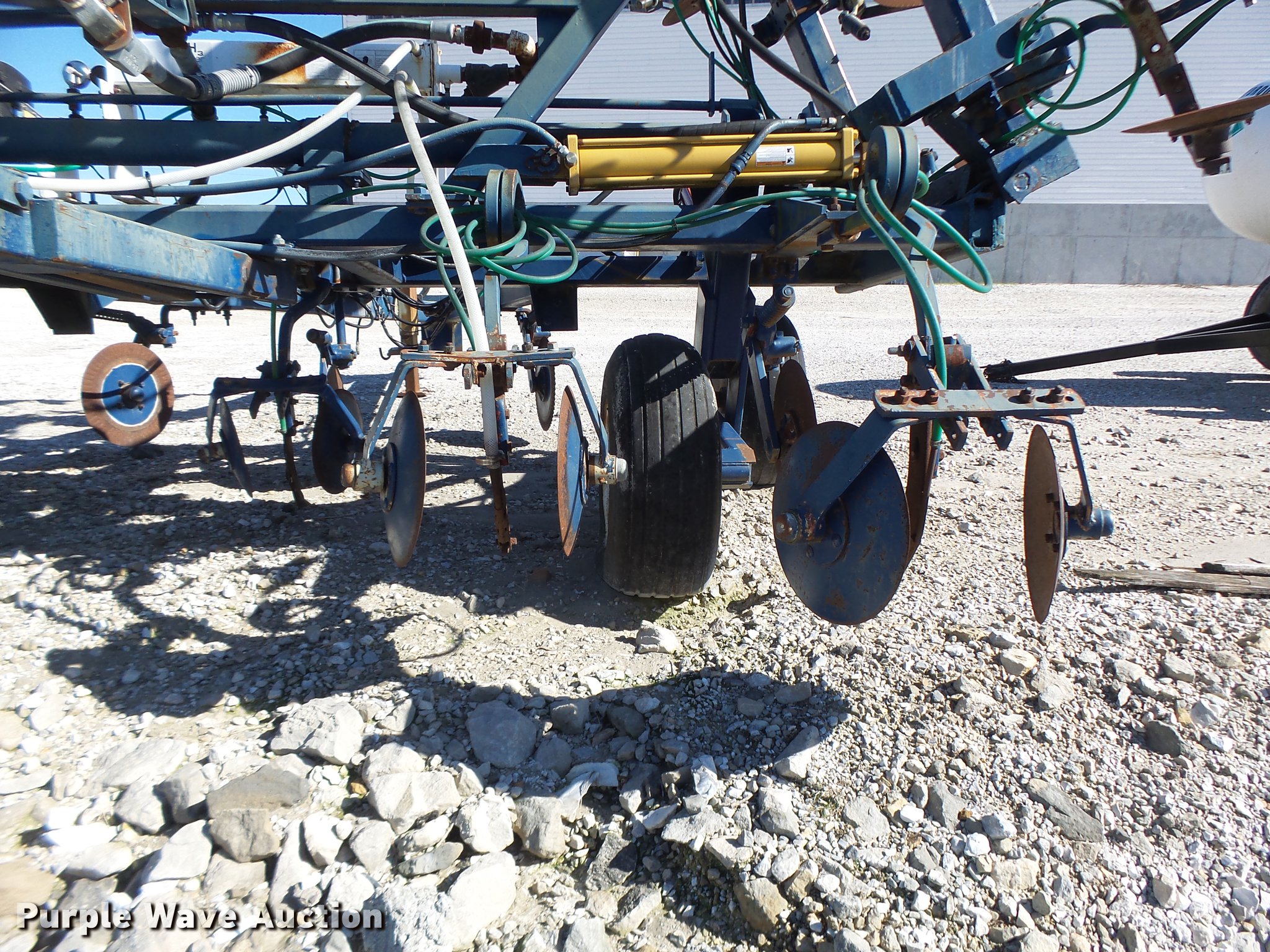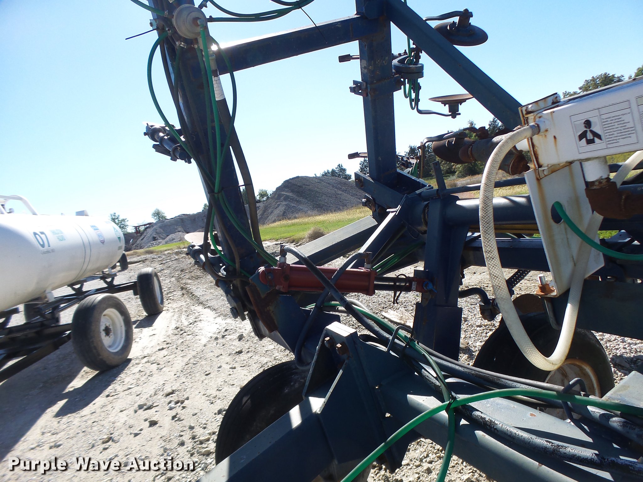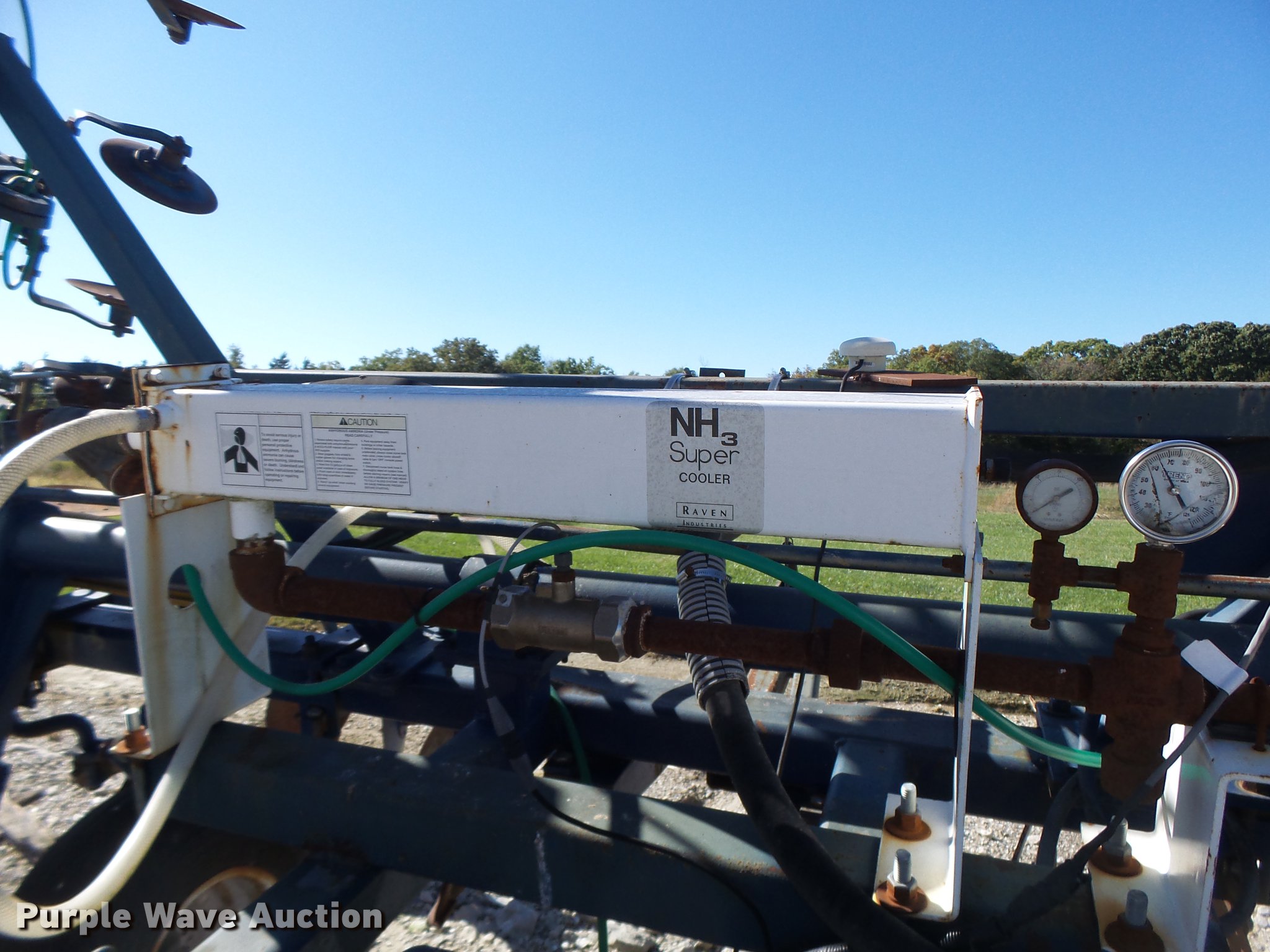 Purple Wave is selling a used Applicator Pull Type in Missouri. This item is a Anhydrous ammonia toolbar with the following: 40'W, 18" diameter front blades, 30" spacing, (17) shanks, 30" spacing, Hydraulic lift and fold, NH3 cooler, Anhydrous hookups, Pin/clevis hitch, 11L-15SL tires