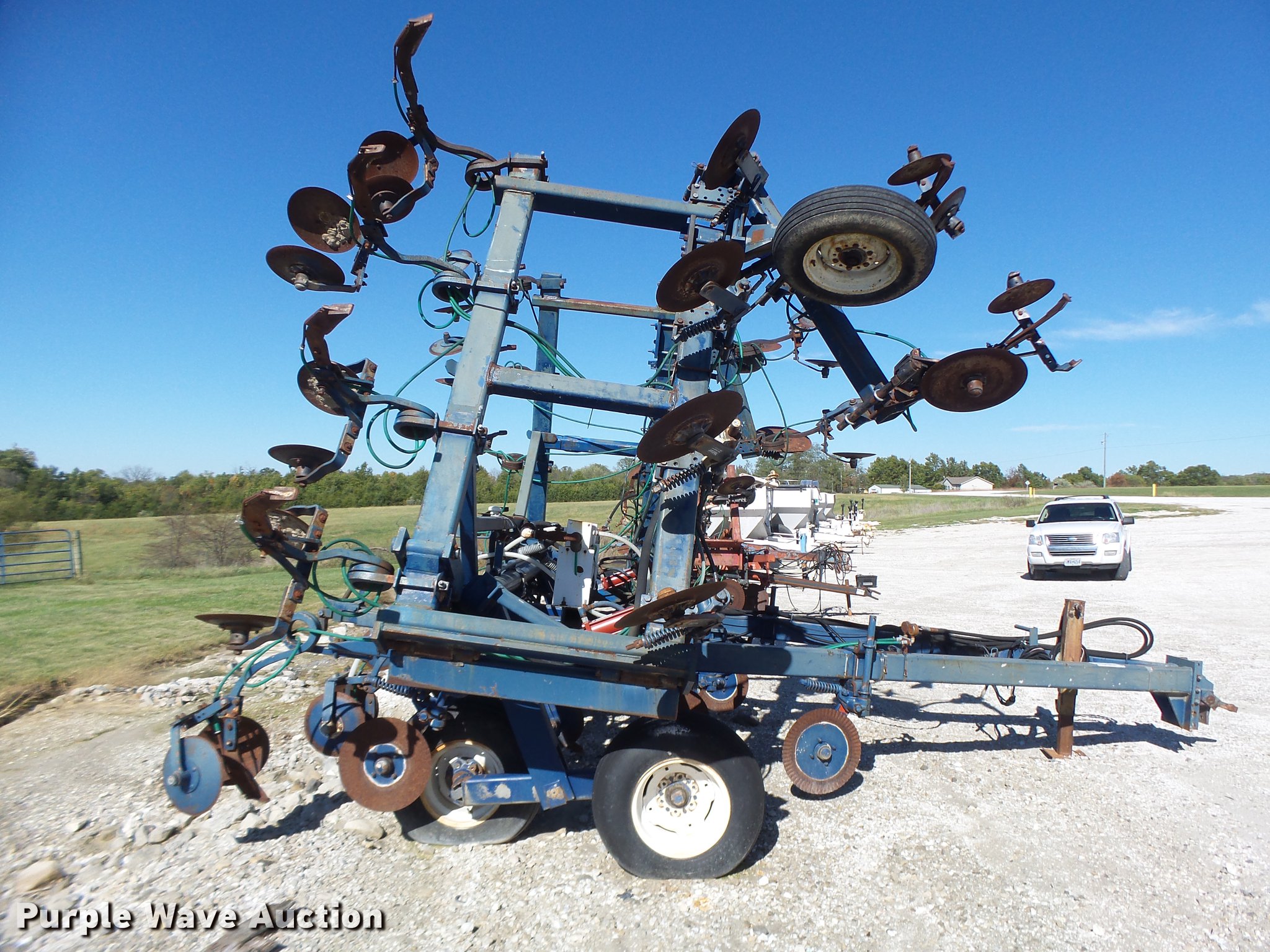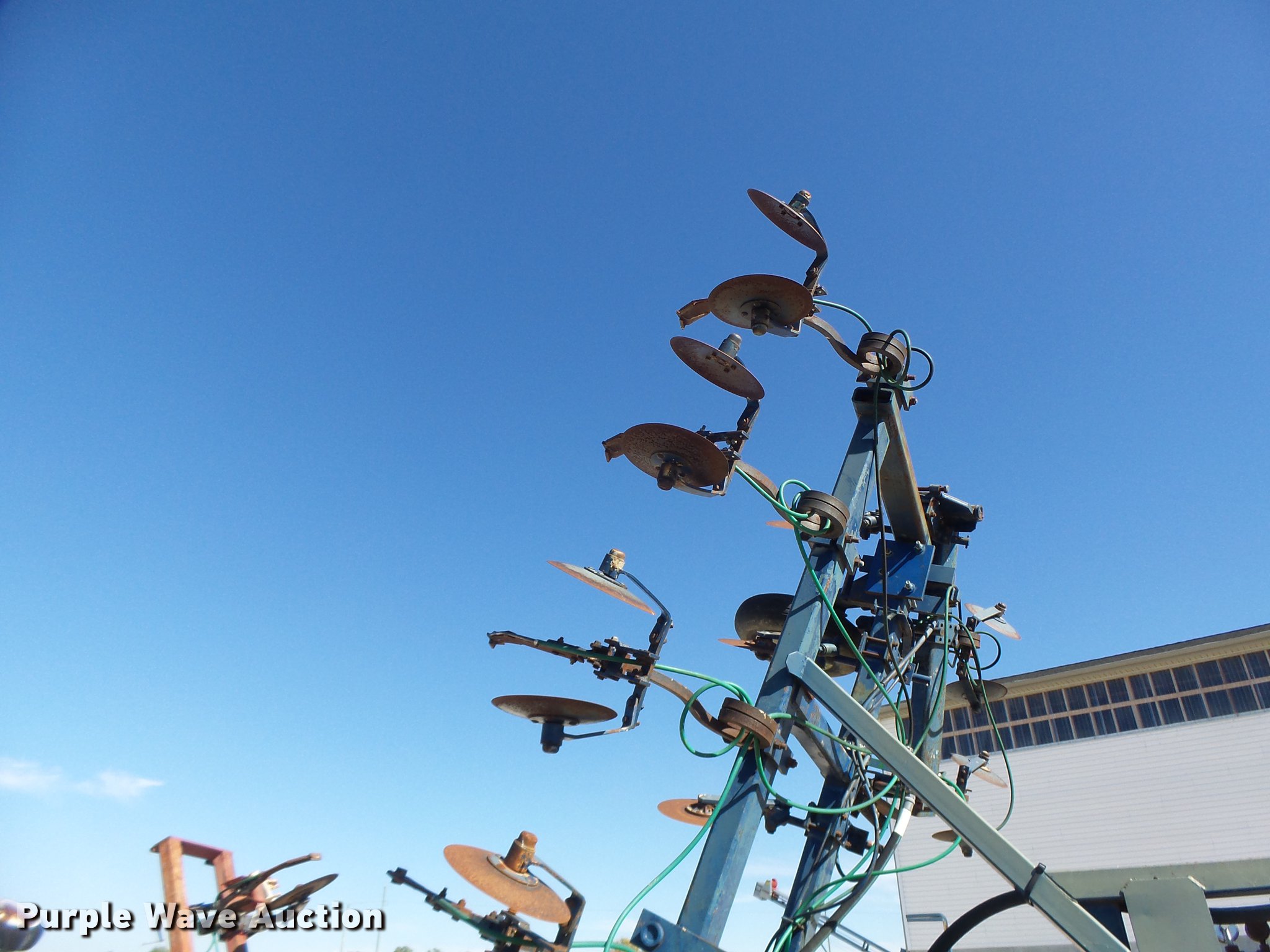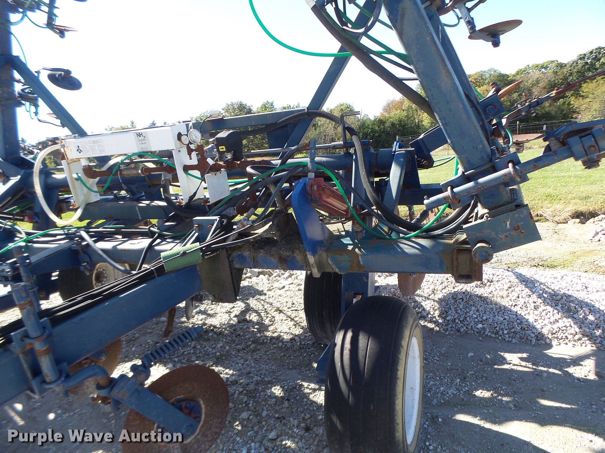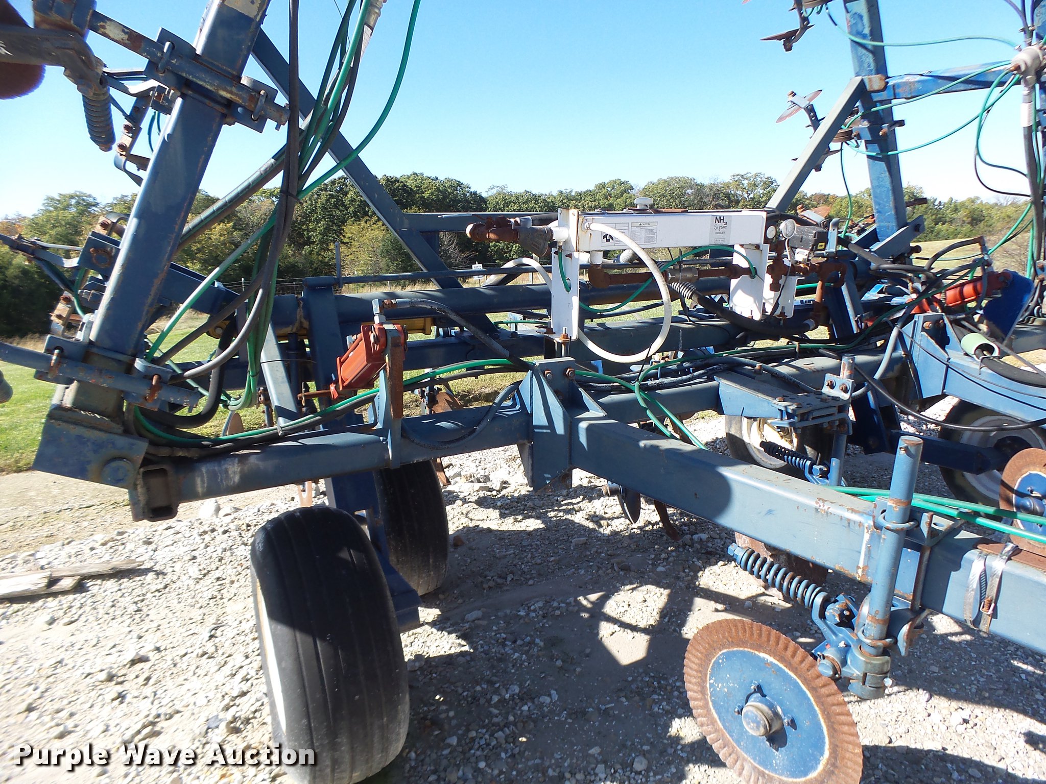 Purple Wave is selling a used Applicator Pull Type in Missouri. This item is a Anhydrous ammonia toolbar with the following: 40'W, 18" diameter front blades, 30" spacing, (17) shanks, 30" spacing, Hydraulic lift and fold, NH3 cooler, Anhydrous hookups, Pin/clevis hitch, 11L-15SL tires