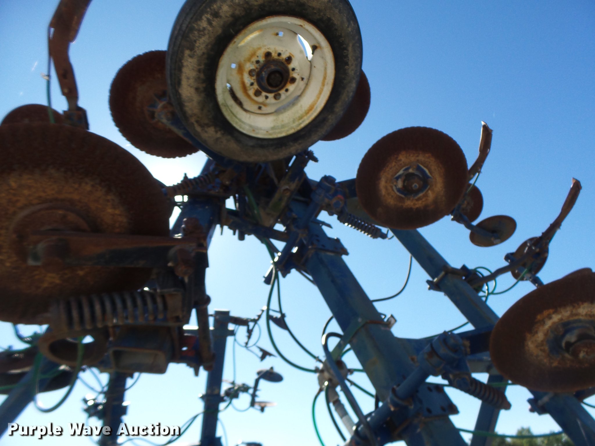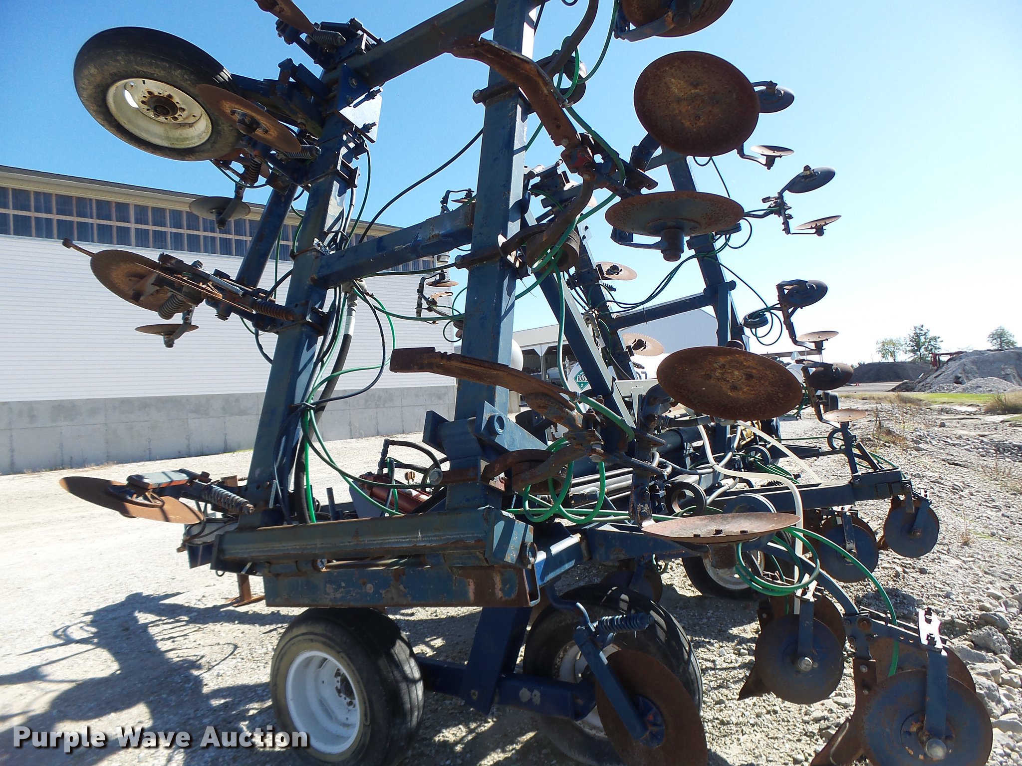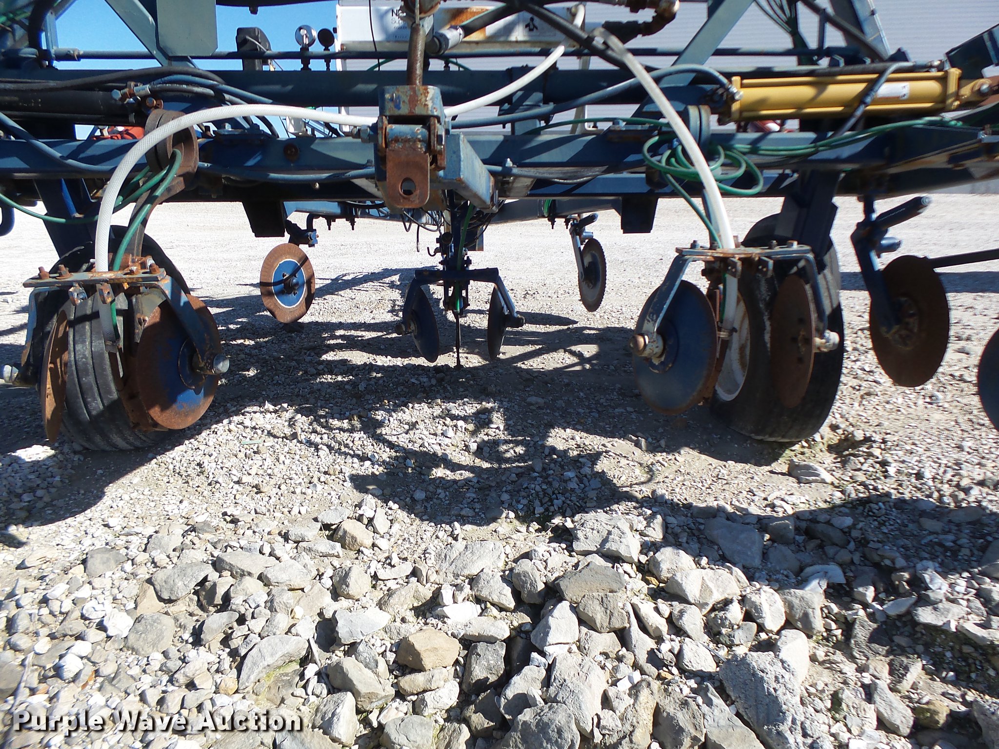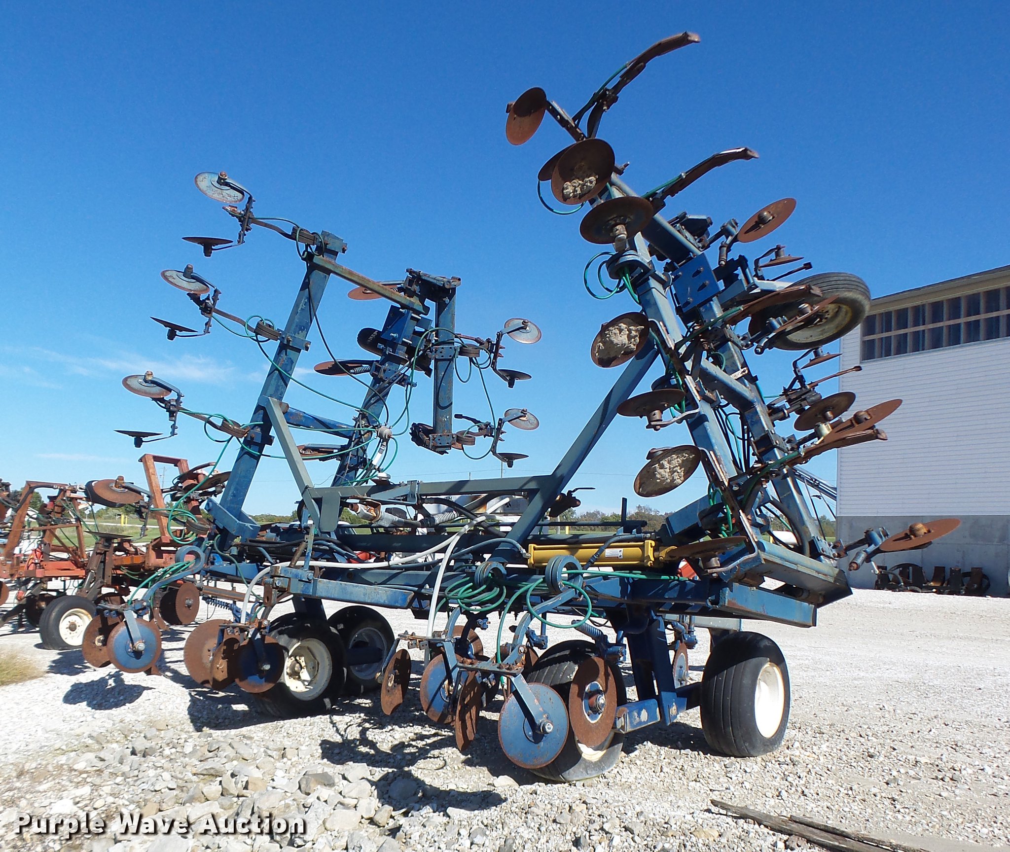 Purple Wave is selling a used Applicator Pull Type in Missouri. This item is a Anhydrous ammonia toolbar with the following: 40'W, 18" diameter front blades, 30" spacing, (17) shanks, 30" spacing, Hydraulic lift and fold, NH3 cooler, Anhydrous hookups, Pin/clevis hitch, 11L-15SL tires