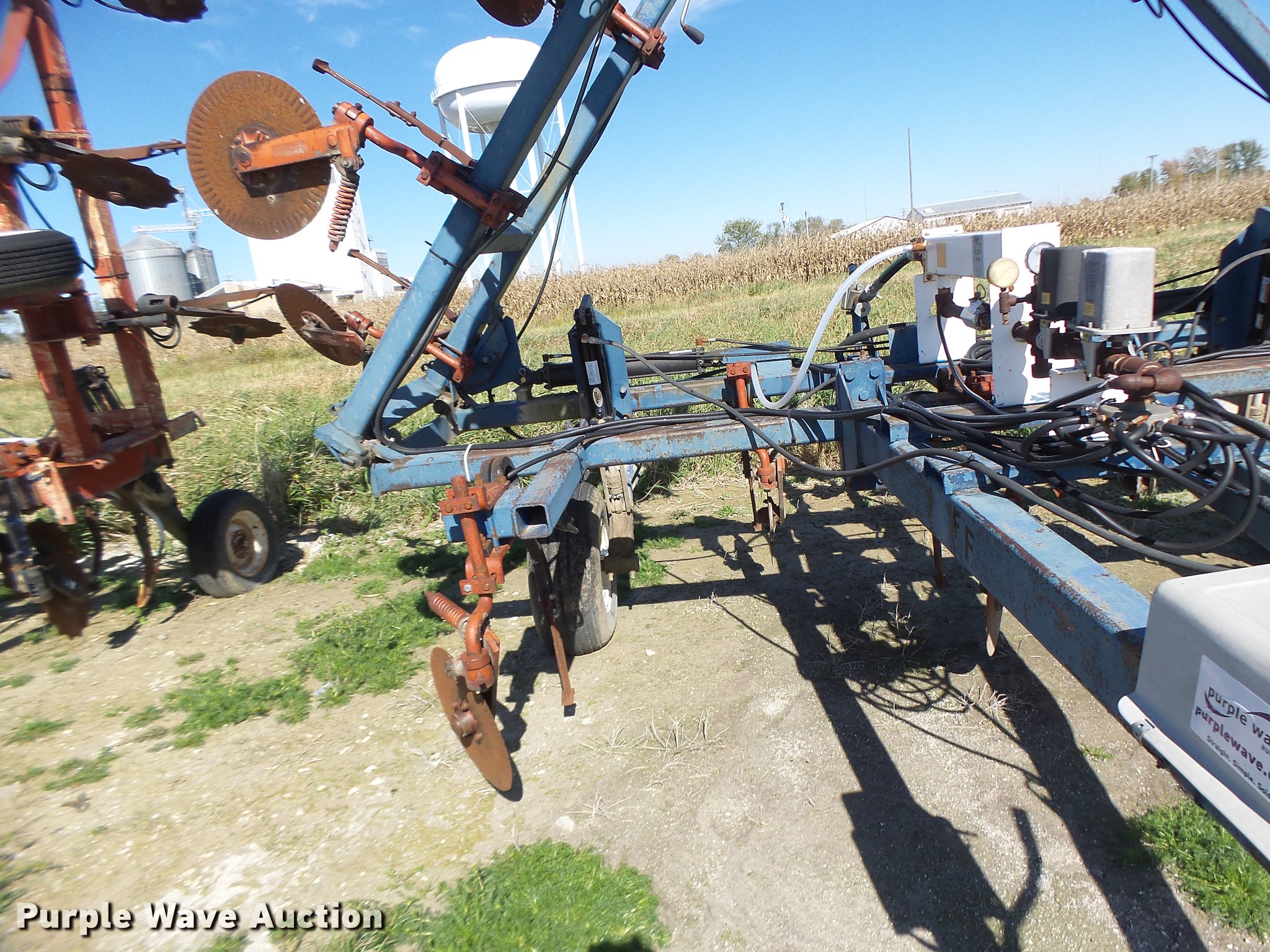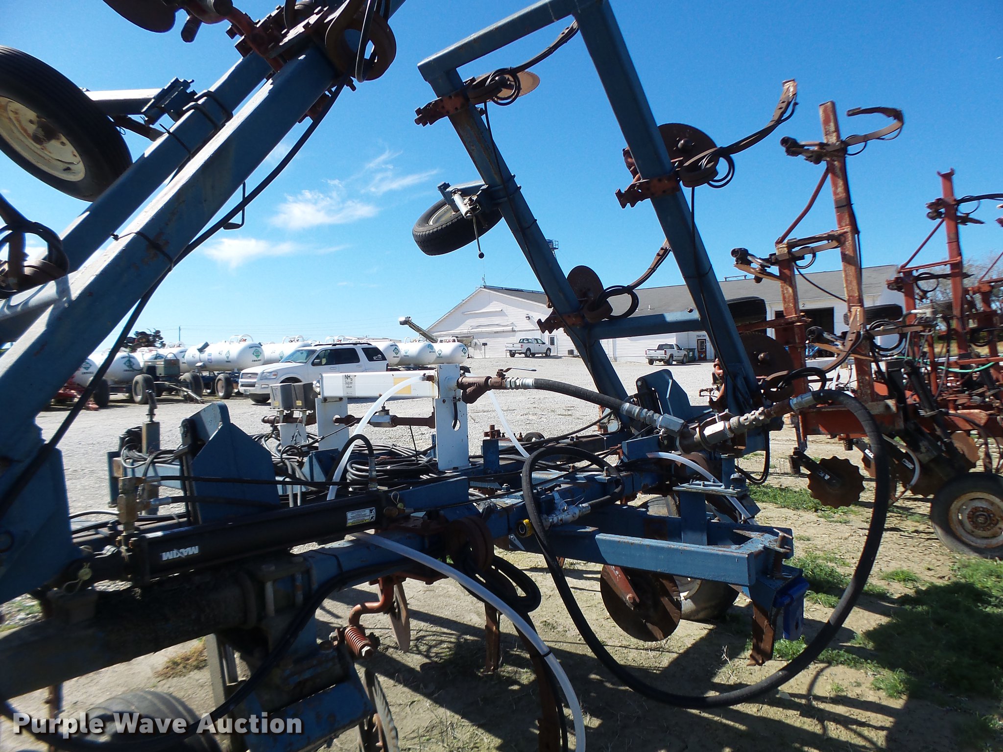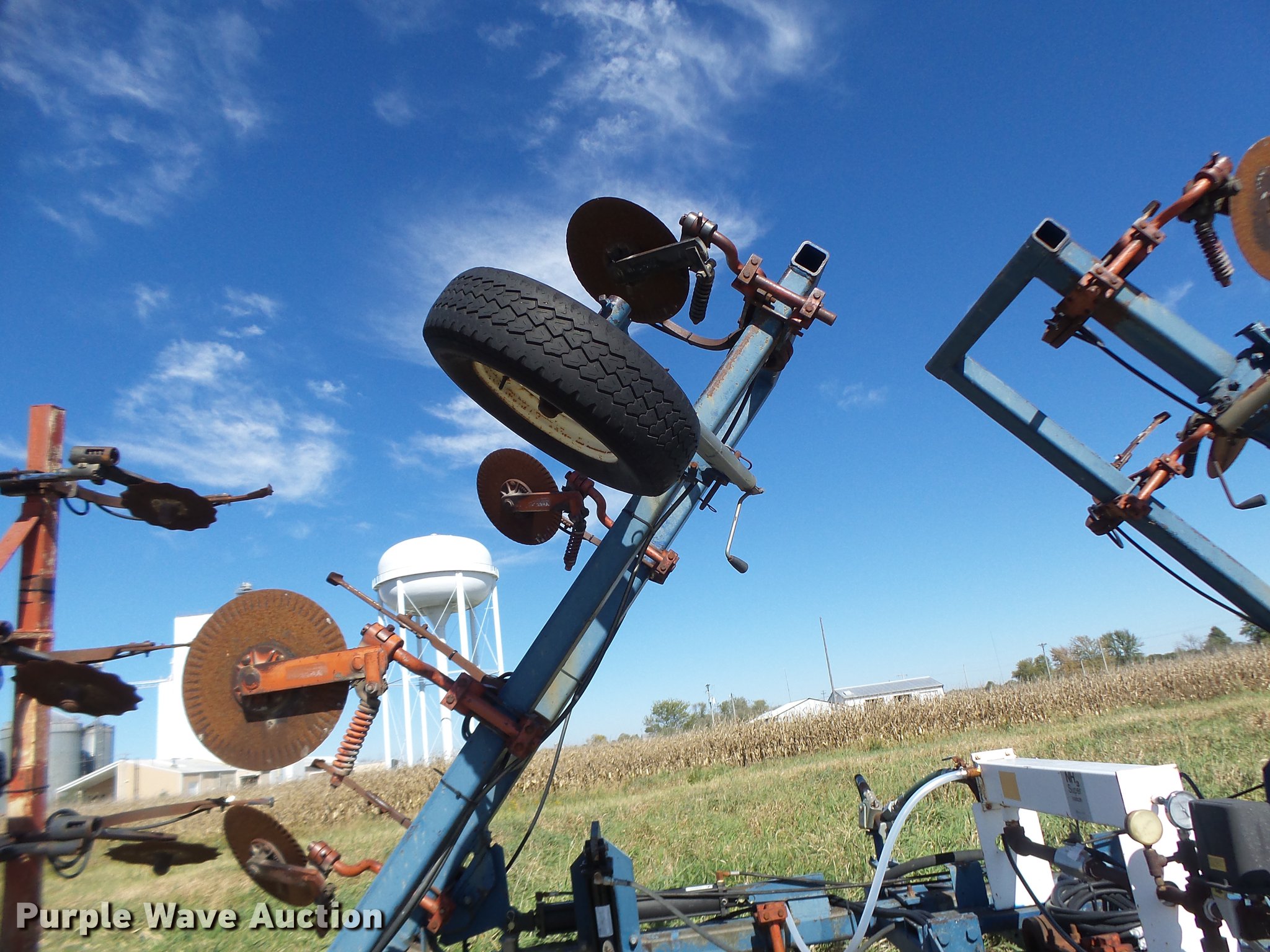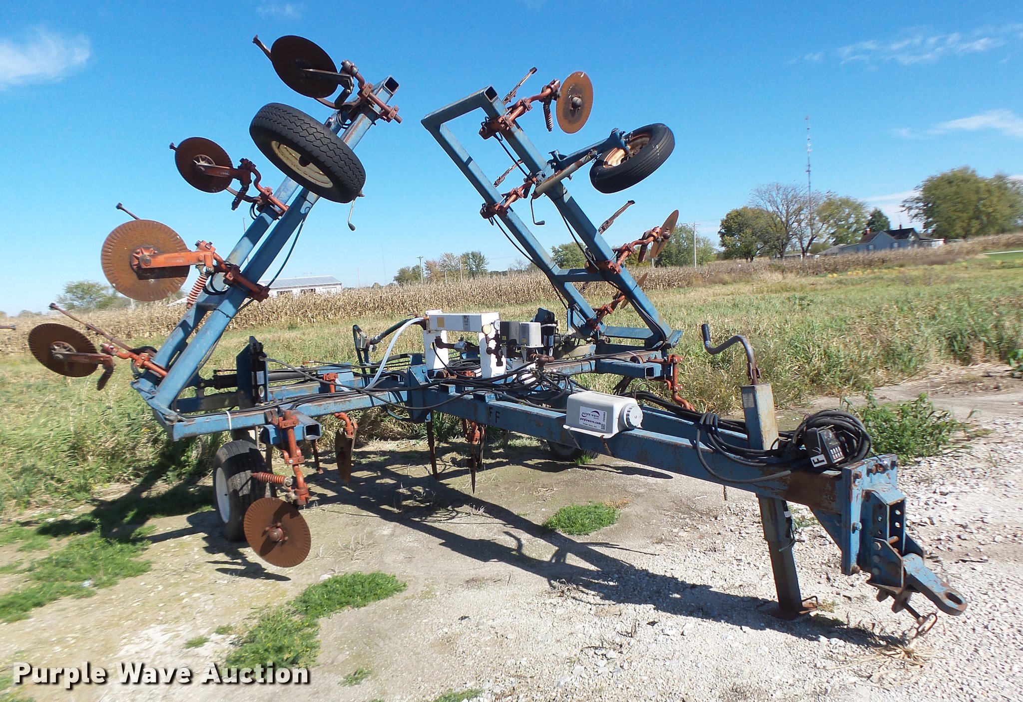 Anhydrous ammonia toolbar. 32'W, 18" diameter front blades 30" spacing, (13) shanks, Hydraulic lift and fold, Raven NH3 cooler, Raven SCS330NVM spray controller, Anhydrous hookups, Pin/clevis hitch, 11L-15 tires, Unit# F. MFA Ag Inc.. 22501 N March Rd. Centralia, MO 65240