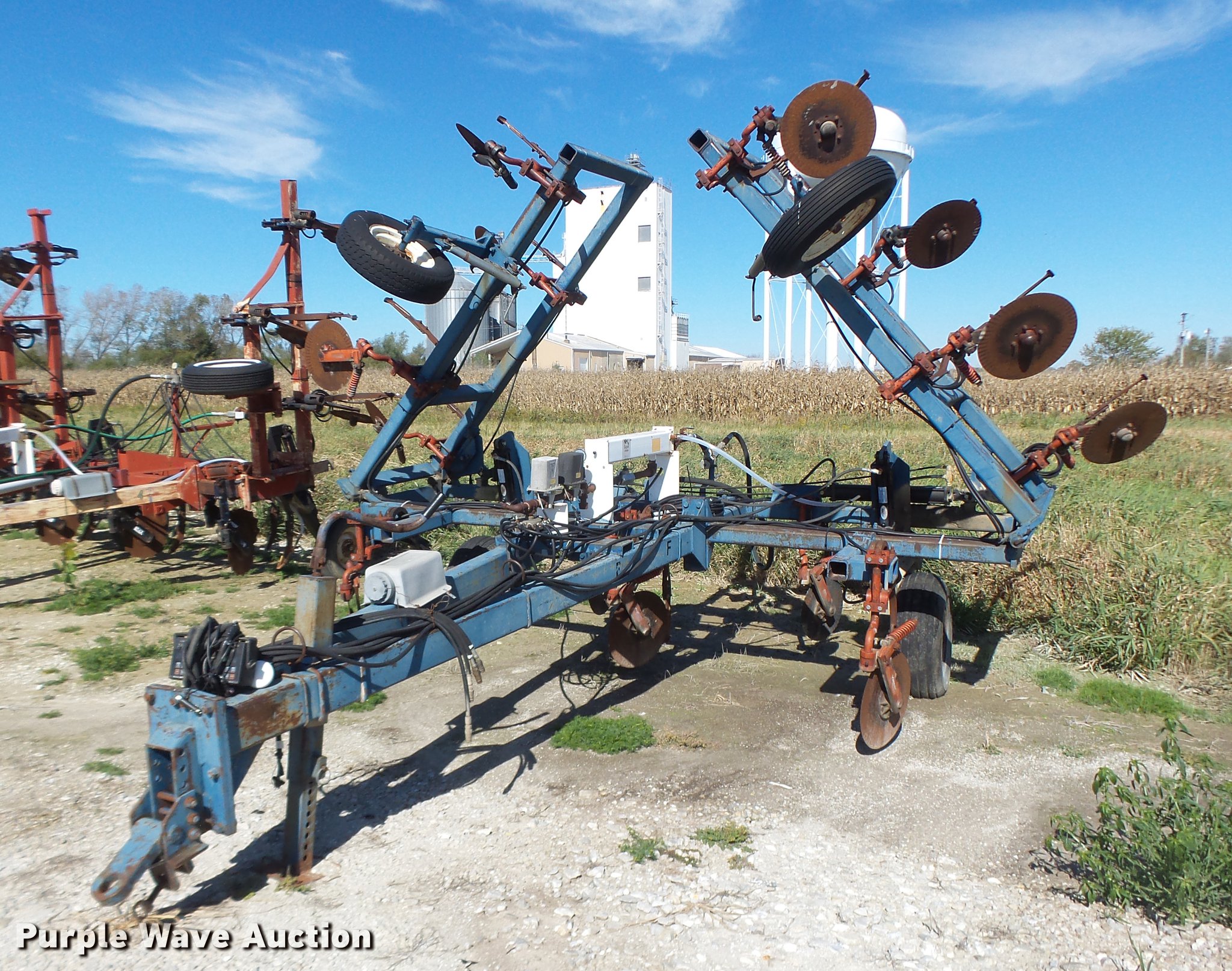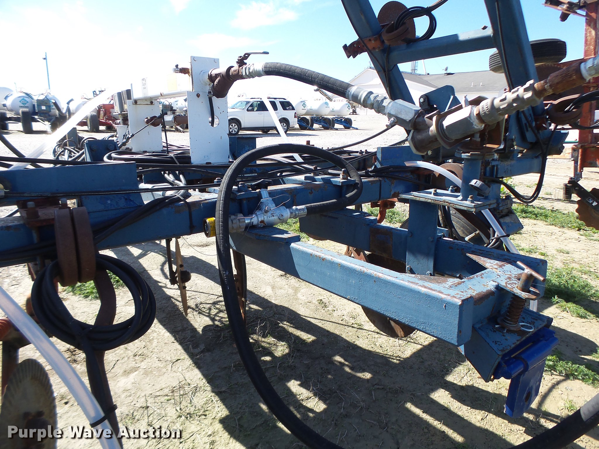 Purple Wave is selling a used Applicator Pull Type in Missouri. This item is a Anhydrous ammonia toolbar with the following: 32'W, 18" diameter front blades, 30" spacing, (13) shanks, Hydraulic lift and fold, Raven NH3 cooler, Raven SCS330NVM spray controller, Anhydrous hookups, Pin/clevis hitch, 11L-15 tires, Unit# F