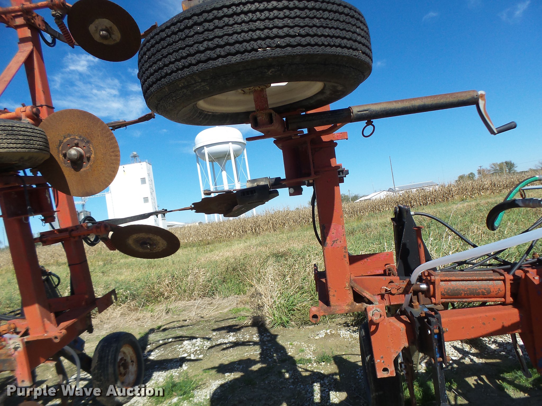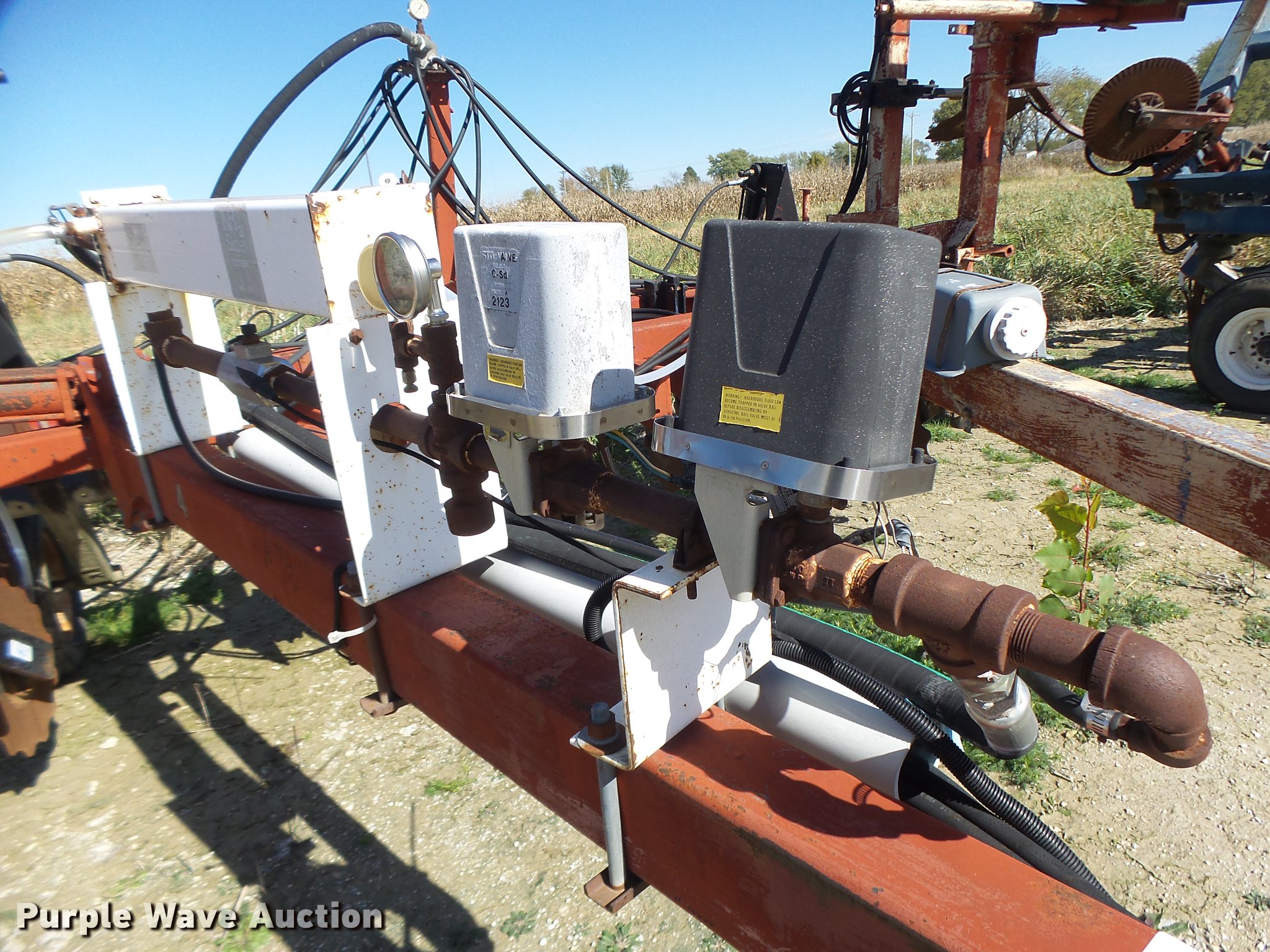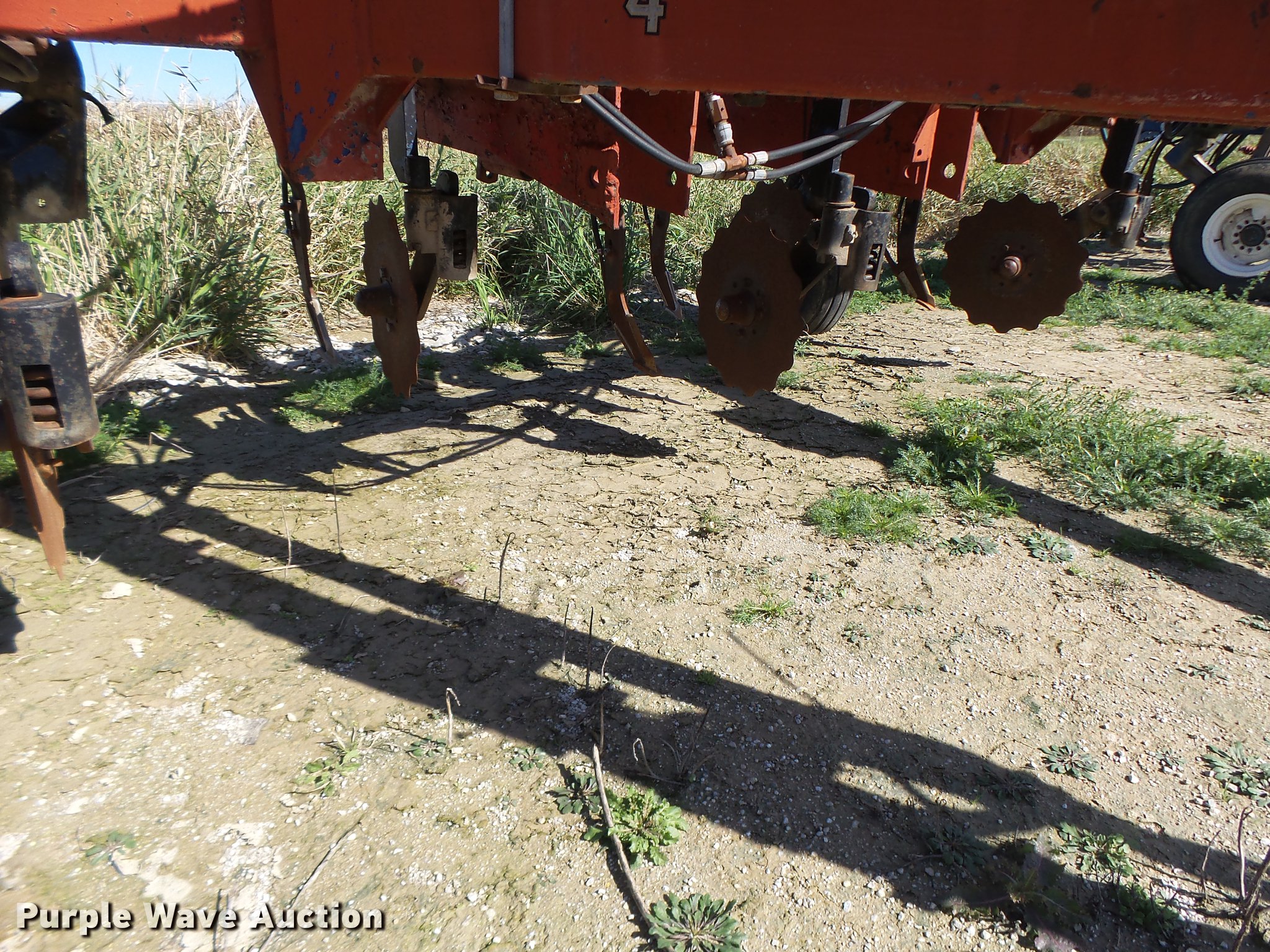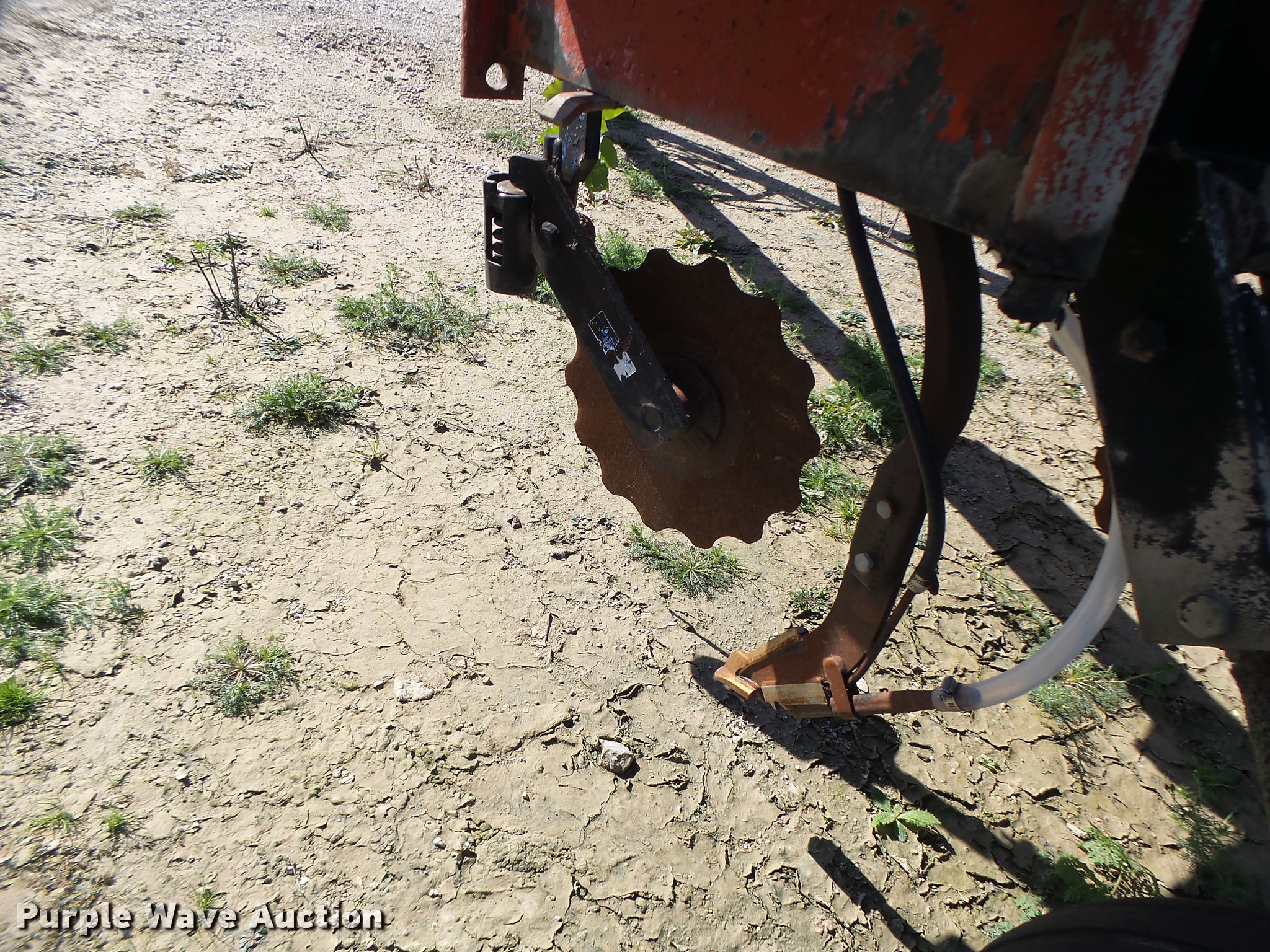 Purple Wave is selling a used Applicator Pull Type in Missouri. This item is a Anhydrous ammonia toolbar with the following: 28'W, 19" diameter front blades, 30" spacing, (11) shanks, 30" spacing, Hydraulic lift and fold, Raven NH3 cooler, Anhydrous hookups, Pin/clevis hitch, 9.50-15 tires, Unit# 4