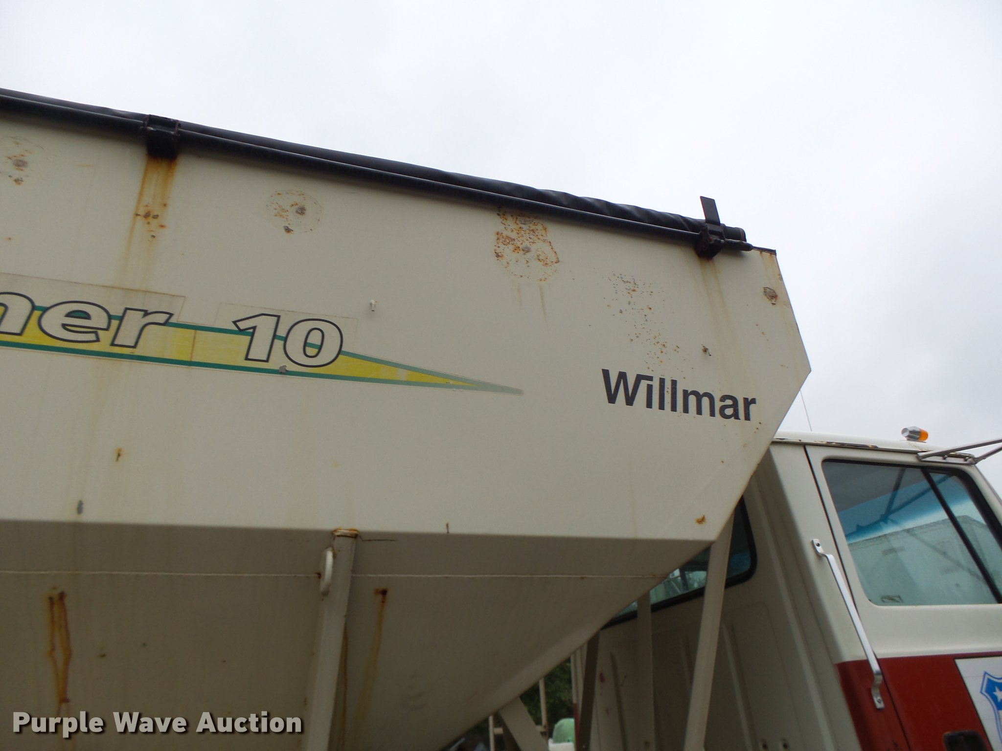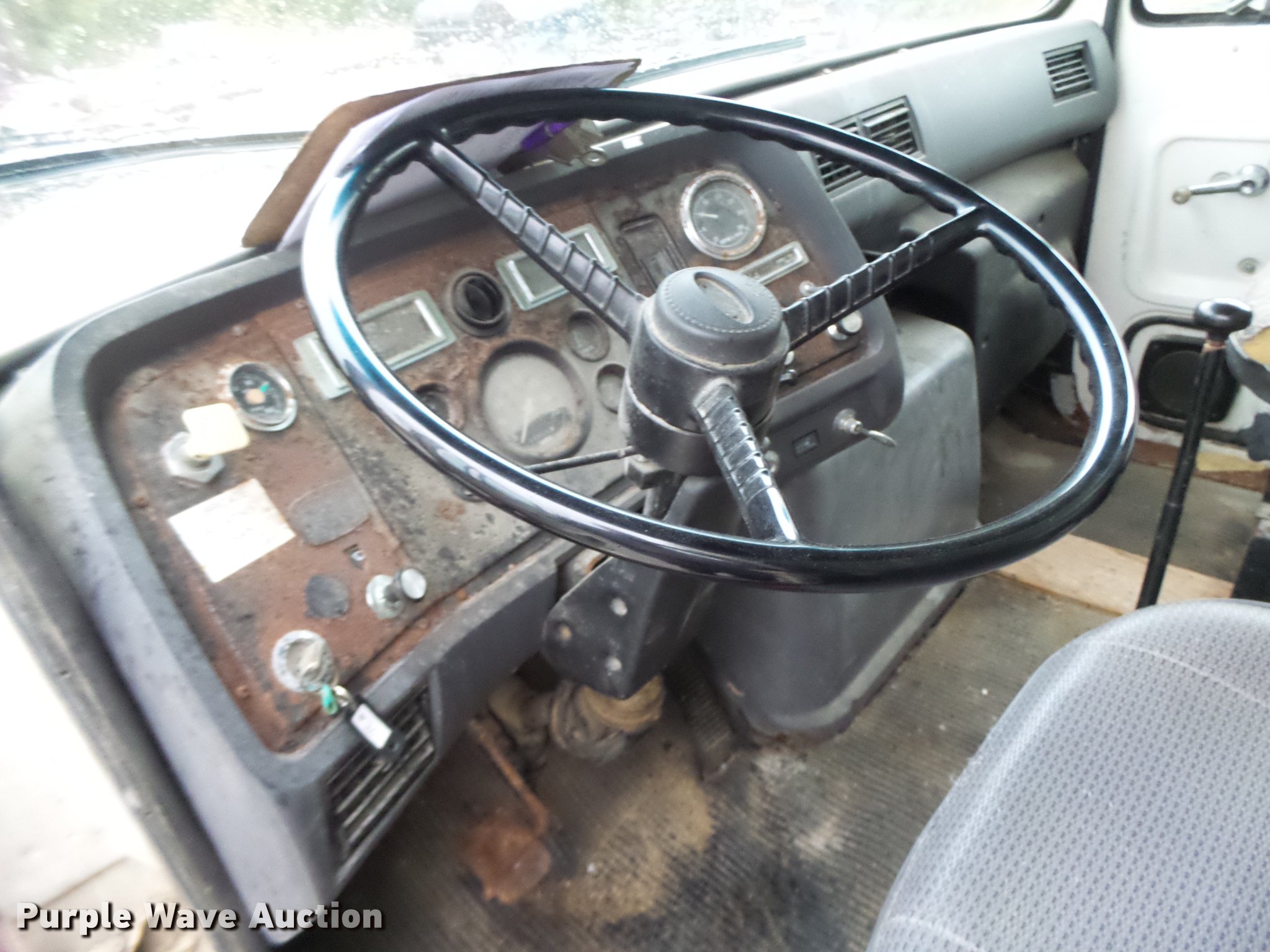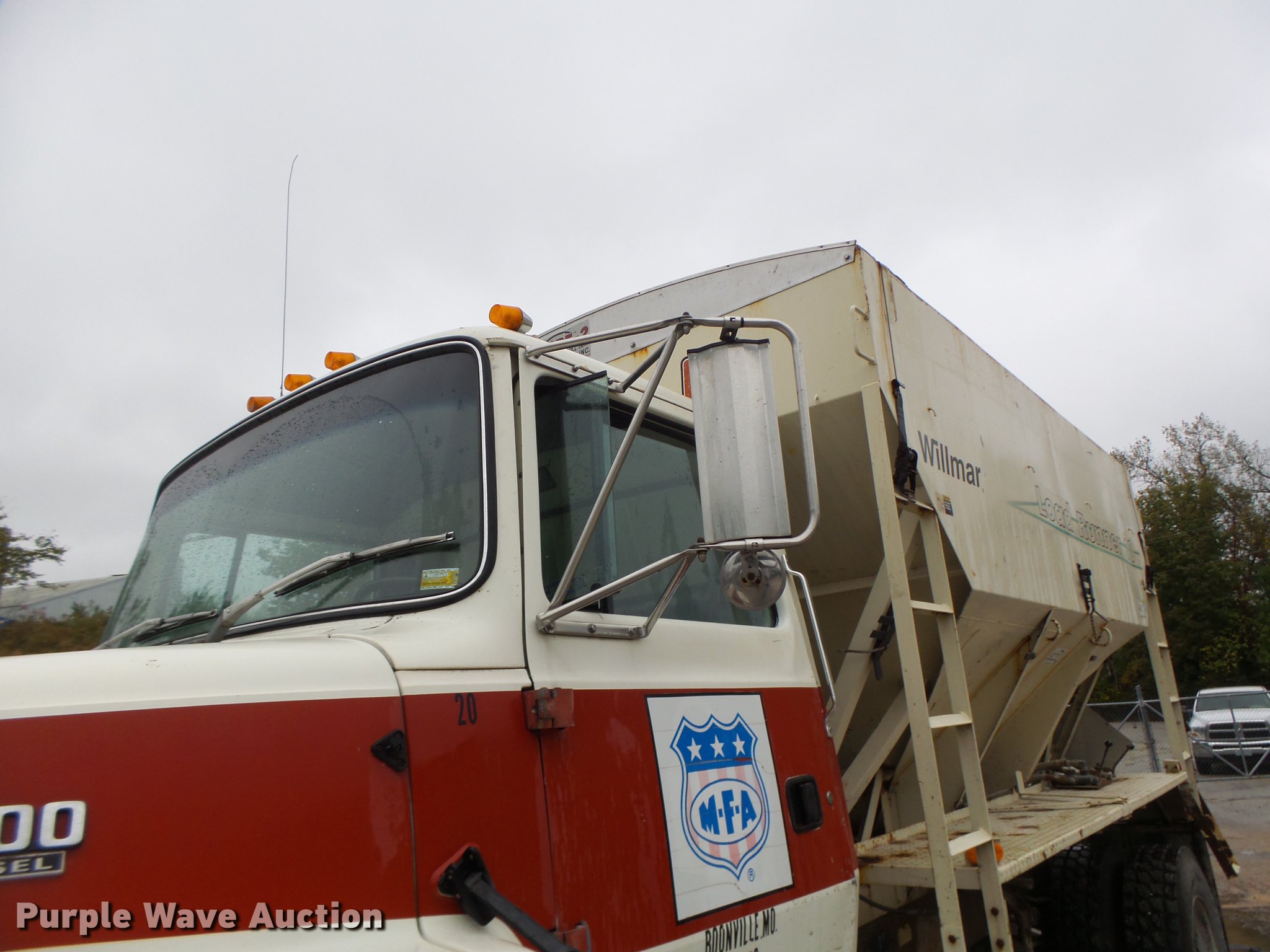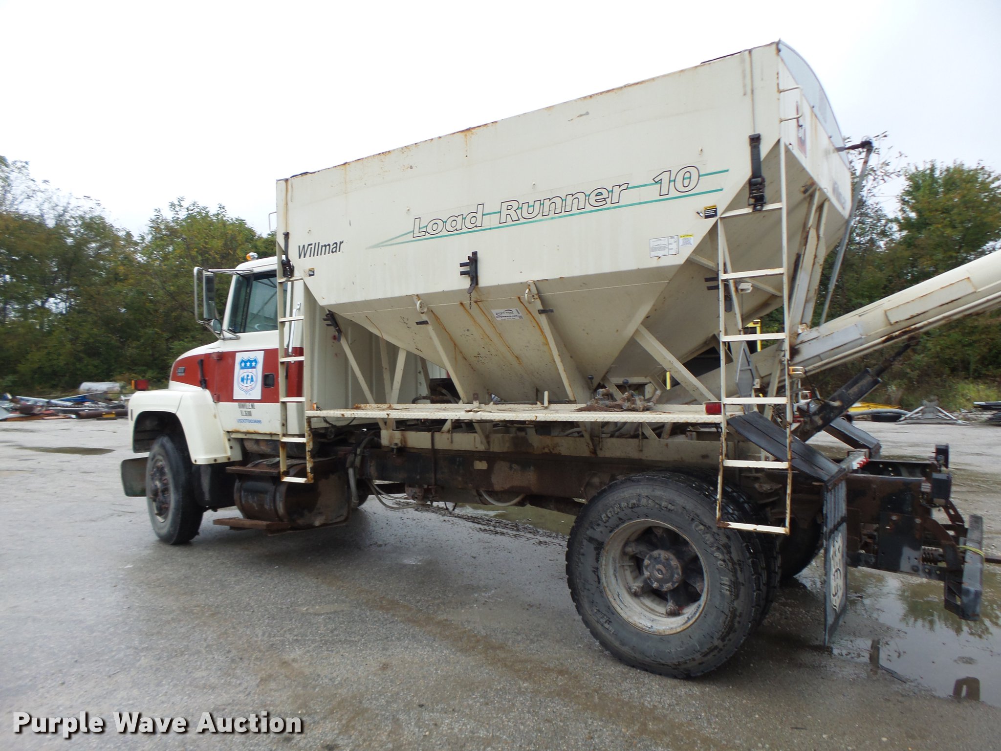 Purple Wave is selling a used Fertilizer or Feed Delivery Truck in Missouri. This item is a 1993 Ford L8000 fertilizer tender truck with the following: 177,726 miles on odometer, 7.8L L6 turbo diesel engine, Six speed manual transmission, Heat, AM/FM, Air suspension seat, PTO, Willmar Load Runner 10 tender bed, 340 cu.ft. struck capacity, Tarp, Single fuel tank, Spring suspension, Air brakes, 11R22.5 tires