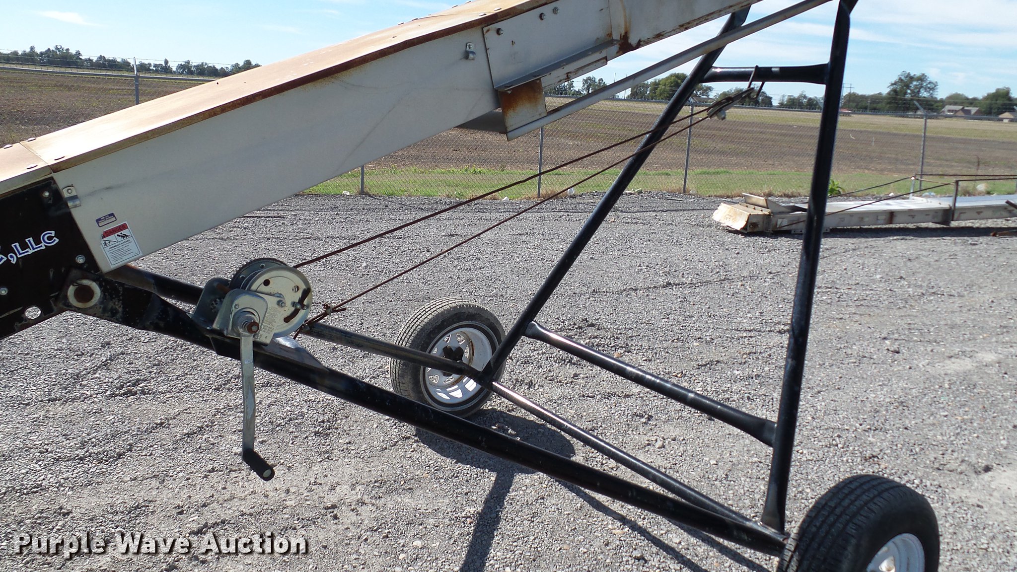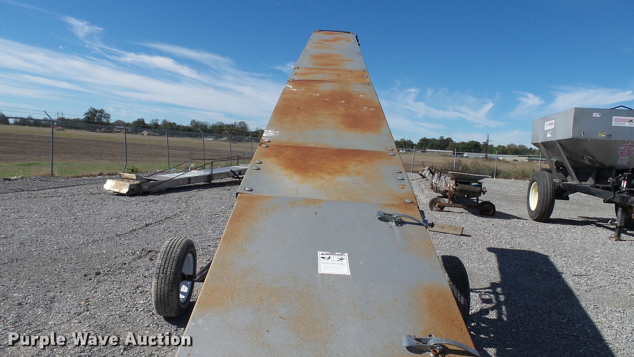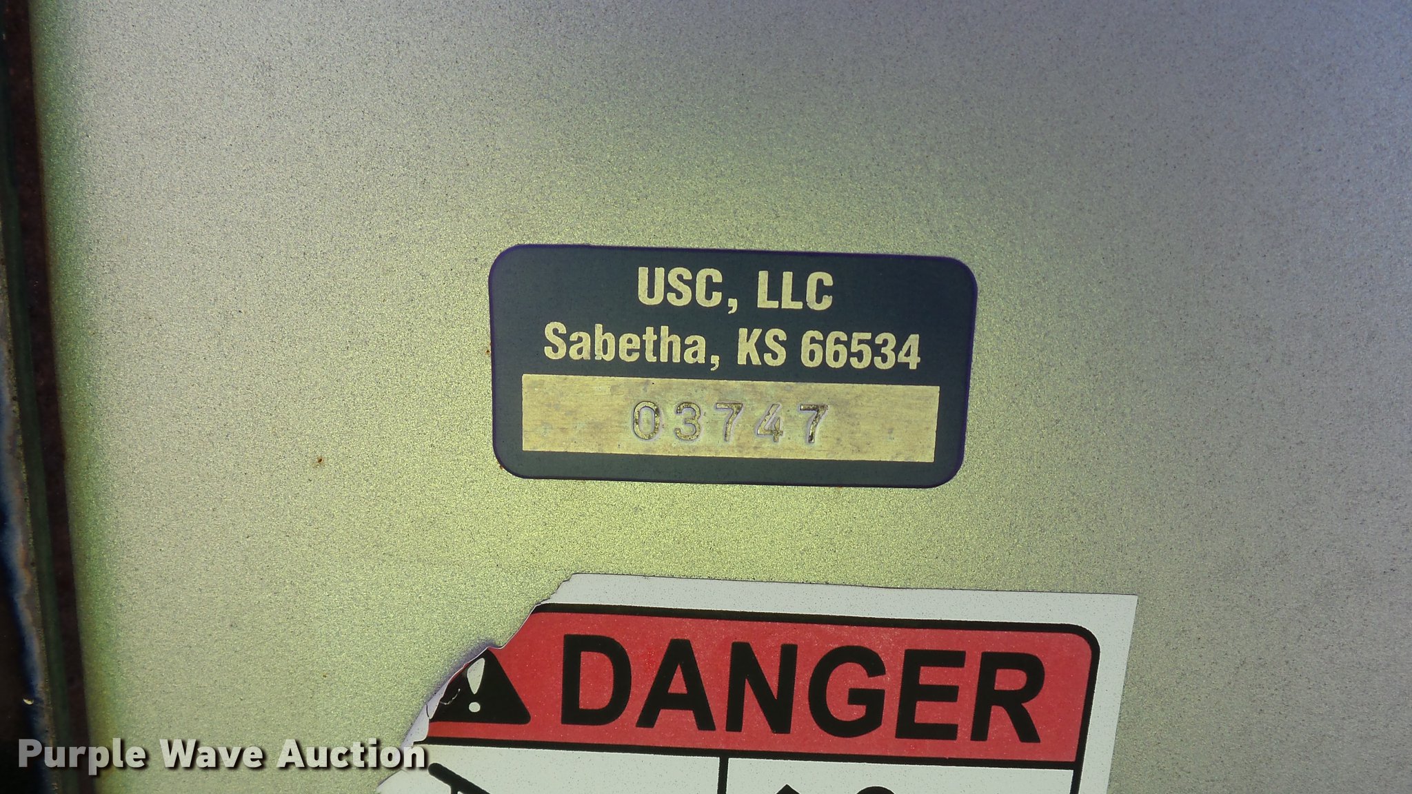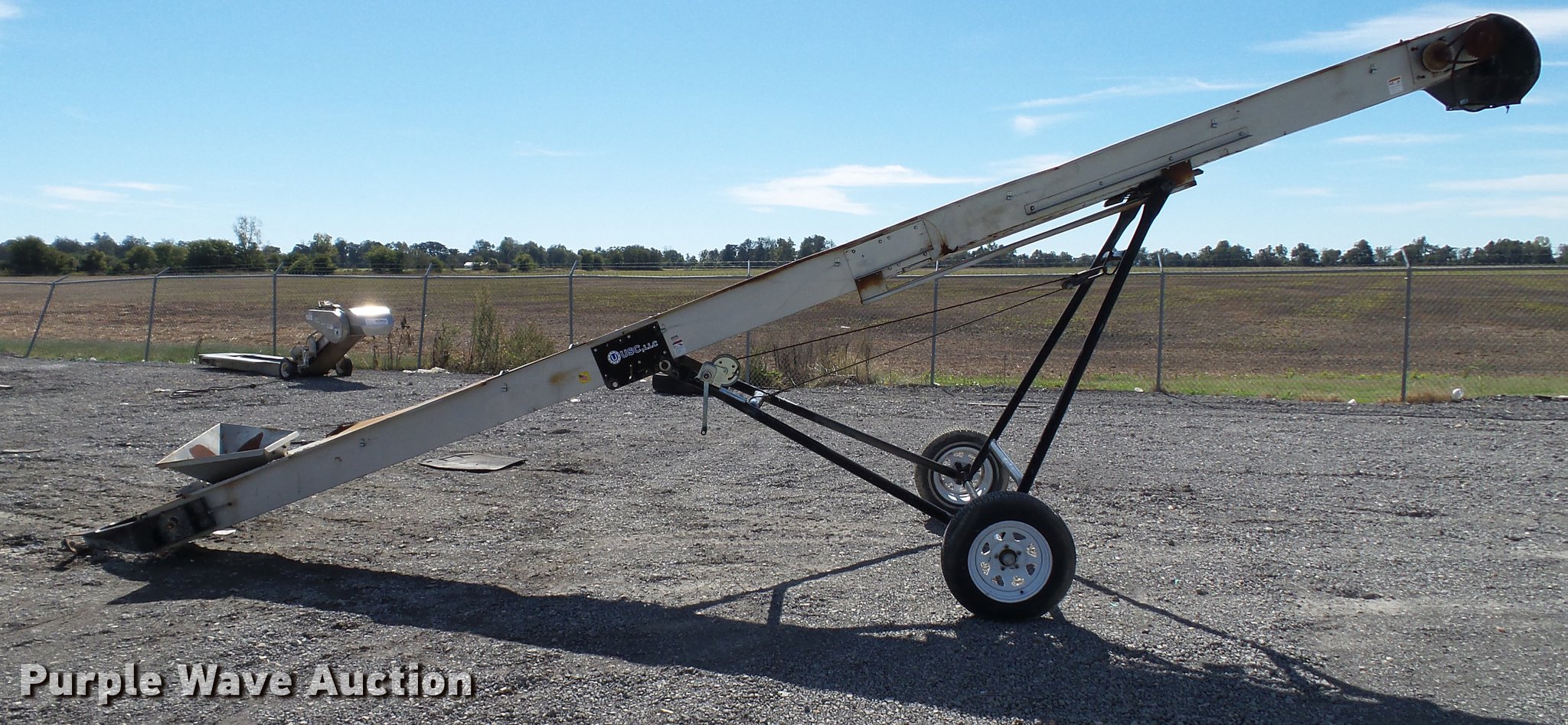 Purple Wave is selling a used Auger or Conveyor in Arkansas. This item is a USC stainless steel conveyor with the following: 25'L x 16"W belt, Manual height adjust, Pin hitch, 185/75R14 tires, Unit may be bent, No motor, Unknown operating condition, Serial 03747, Unit# 100625