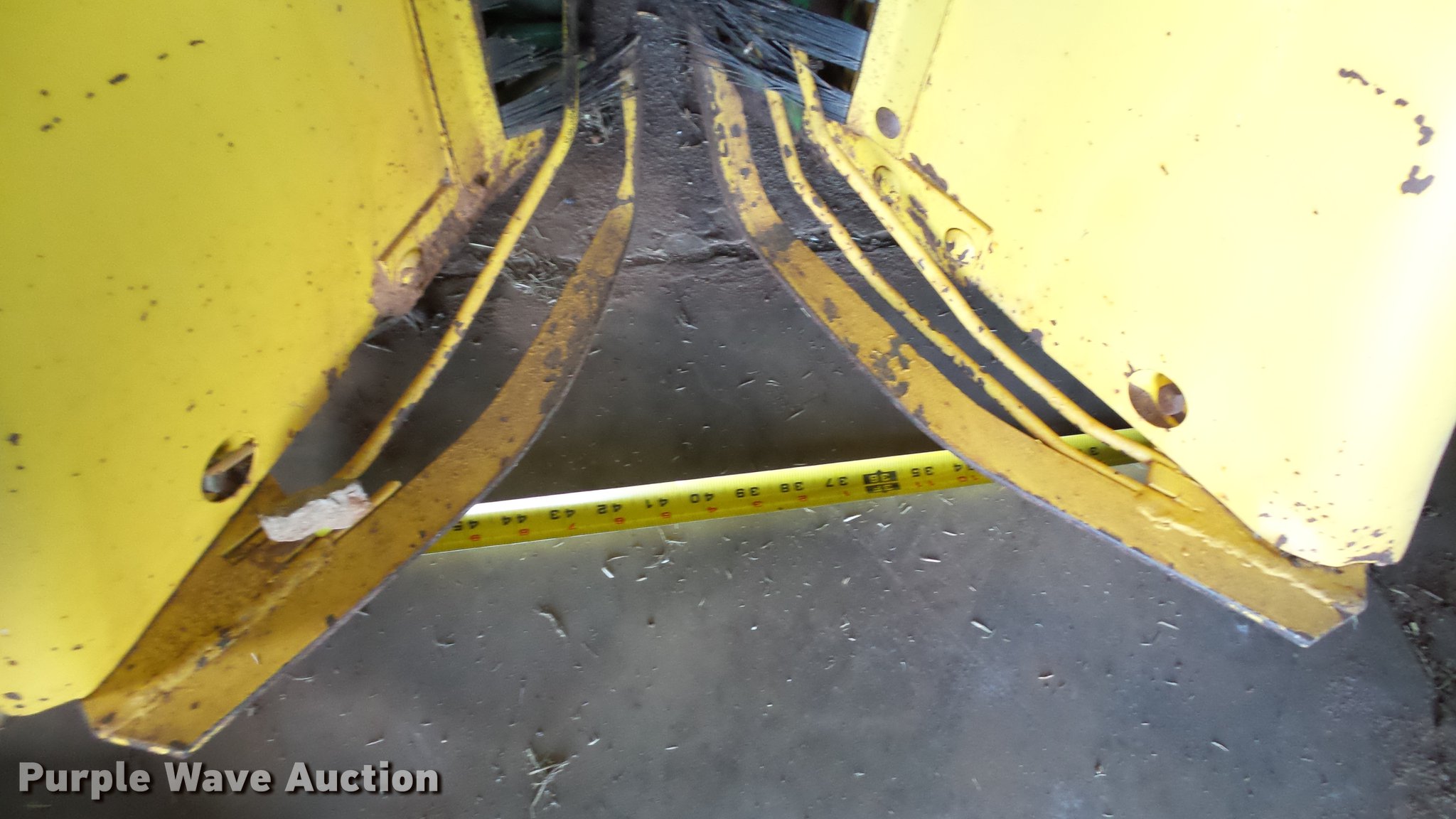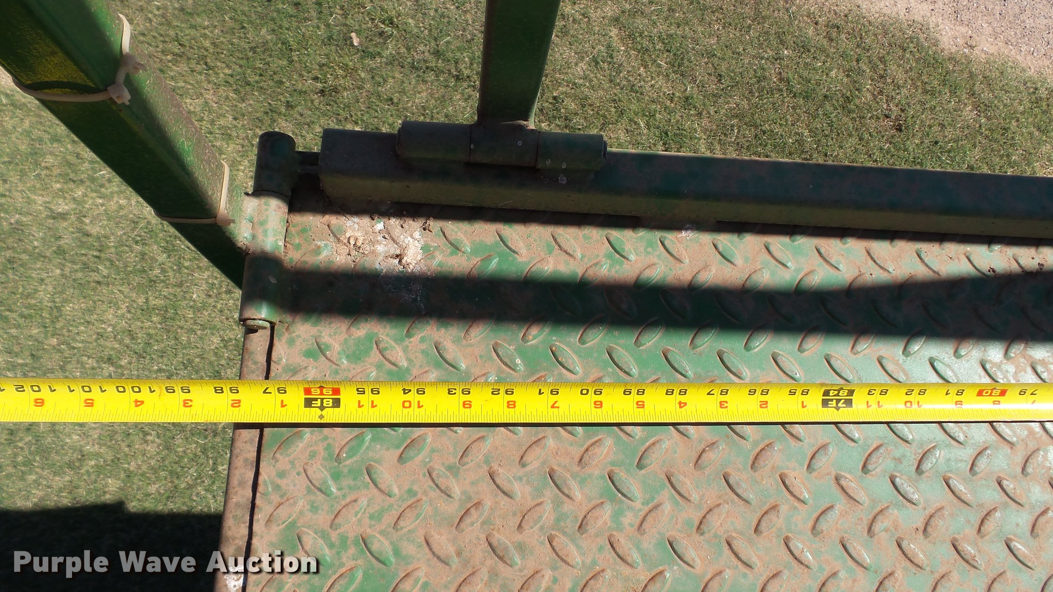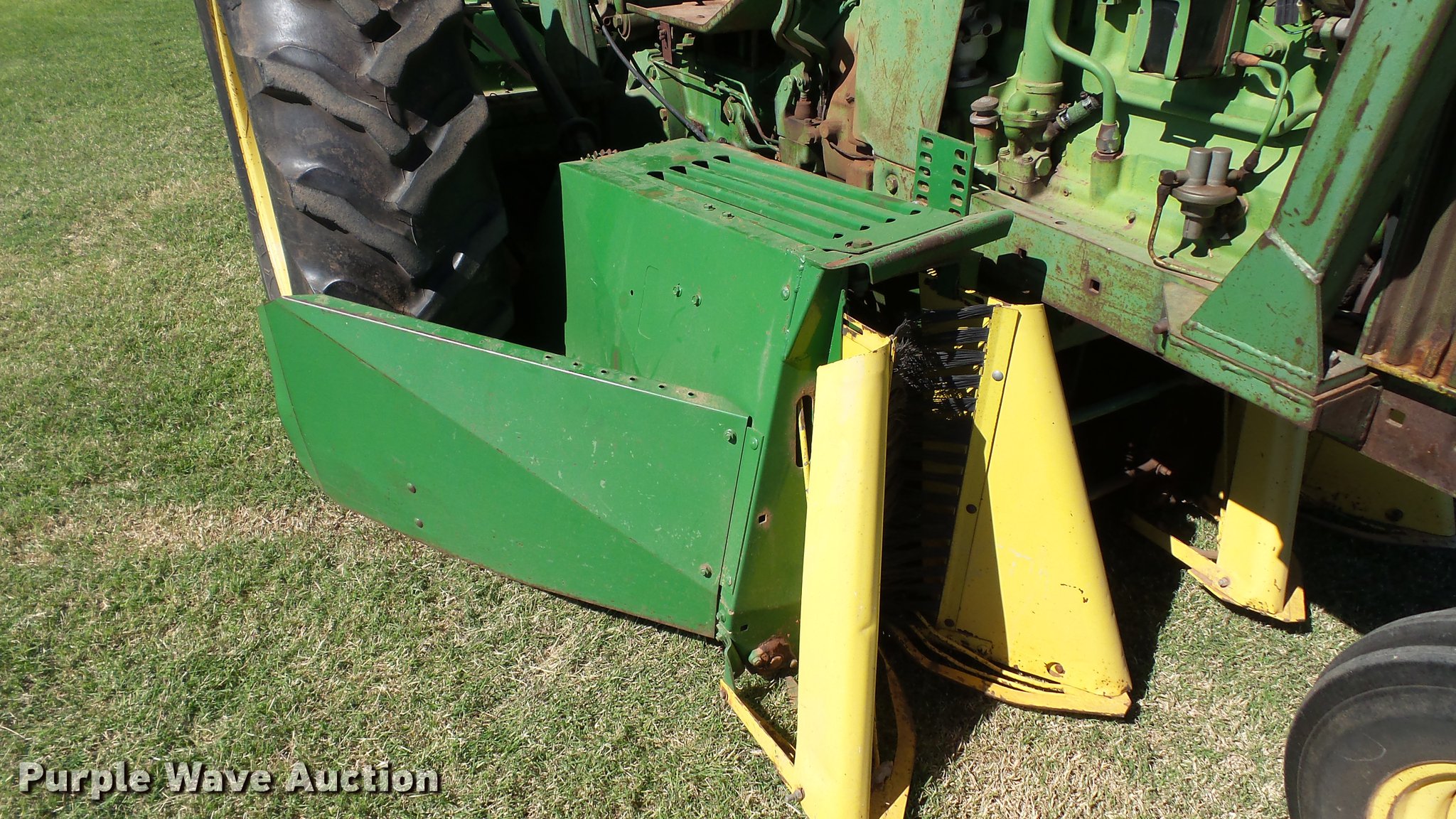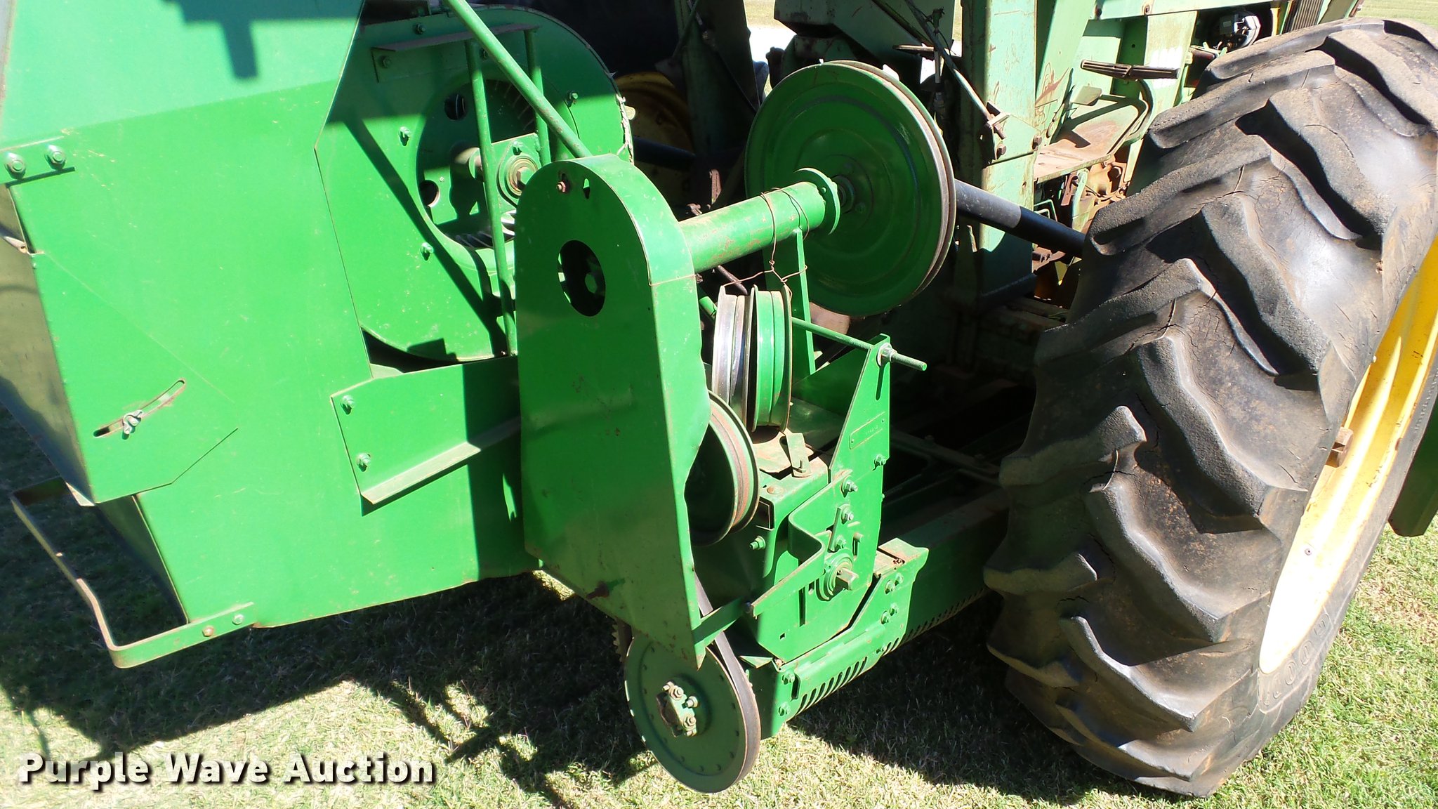 Purple Wave is selling a used Tractor in Oklahoma. This item is a 1972 John Deere 4000 tractor with the following: 2,617 hours on meter, John Deere 6404DR-01 six cylinder diesel engine, Serial 318233, Synchro transmission, 8F-2R gears, John Deere E0283 cotton harvester, 40" row spacing, 7" head opening, Additional pulleys, Hydraulic head level control, Dual augers on each side, Serial 002349, 188"L x 8'W top platform, Fold down railing, Three point, 1000 PTO, (2) rear hydraulic remote sets, (2) wheel weights, 7.5L-15 dual front tires, 16.0-34 rear tires, Right rear tire leaks air, Weak battery, Sale# 1816-KP, Serial 263774R, Unit# 097832