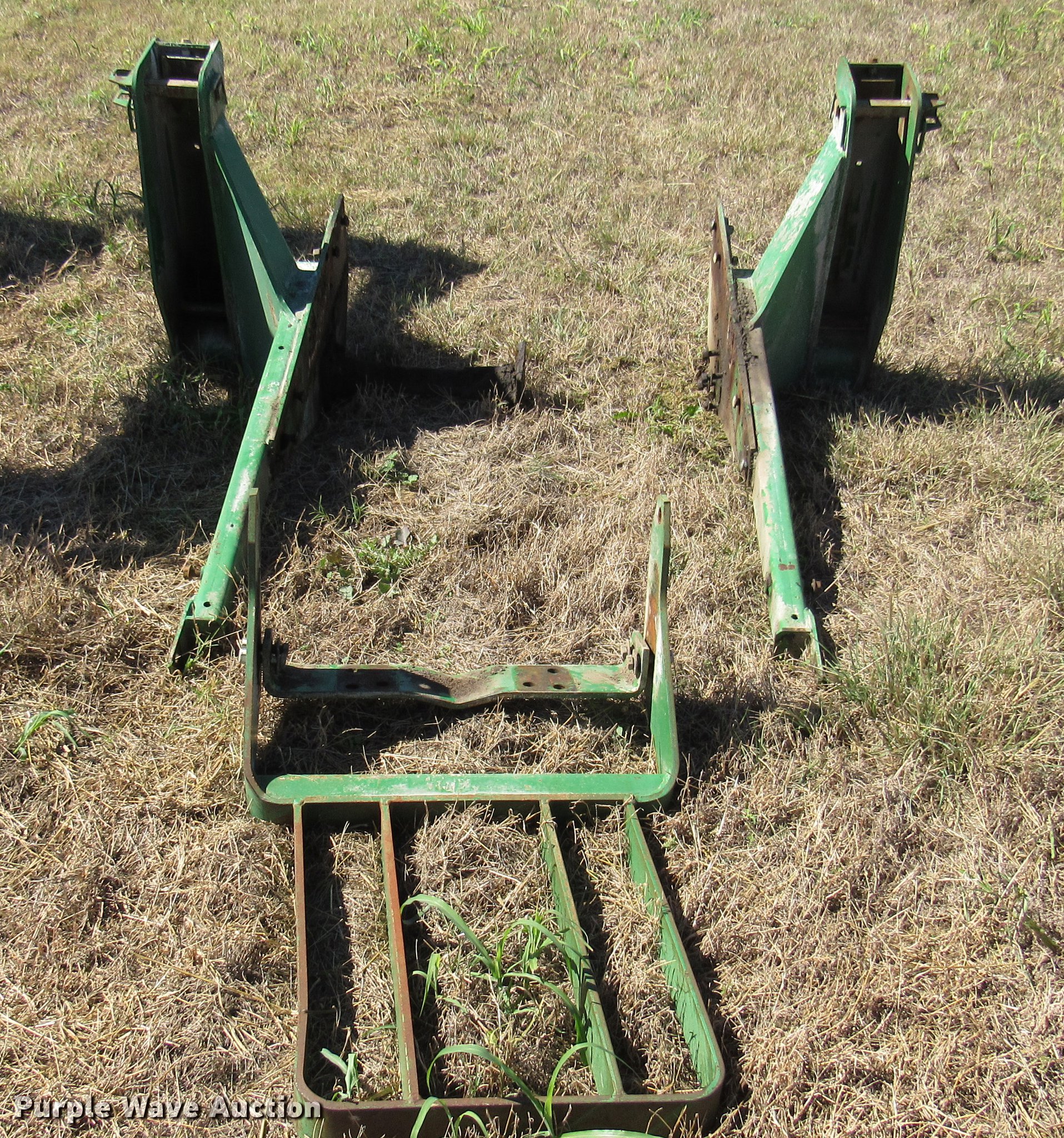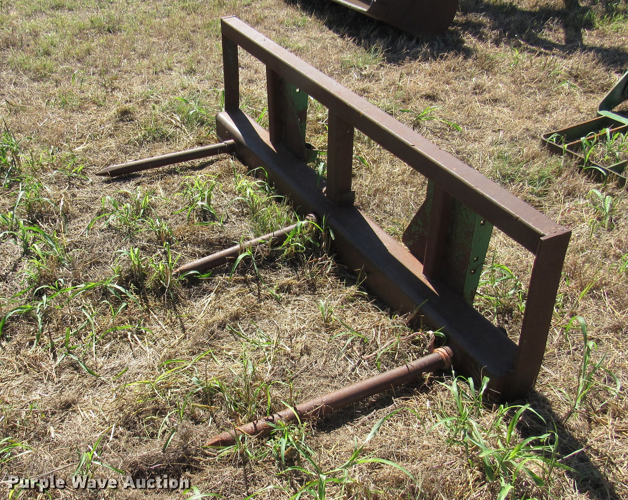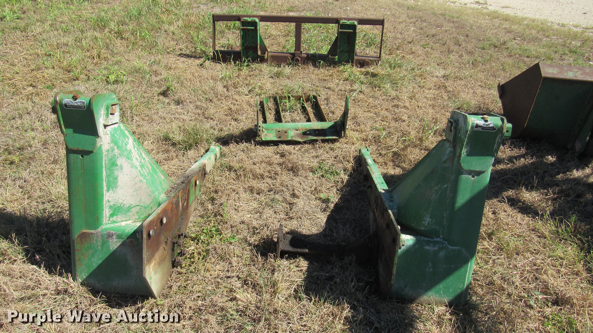 John Deere 280 loader. 84.5"W bucket Weld-on cutting edge, Bale forks 82"W, (3) 27"L tines, Frame parts, Fits John Deere 4440 tractors. Schwertner, TX 76573