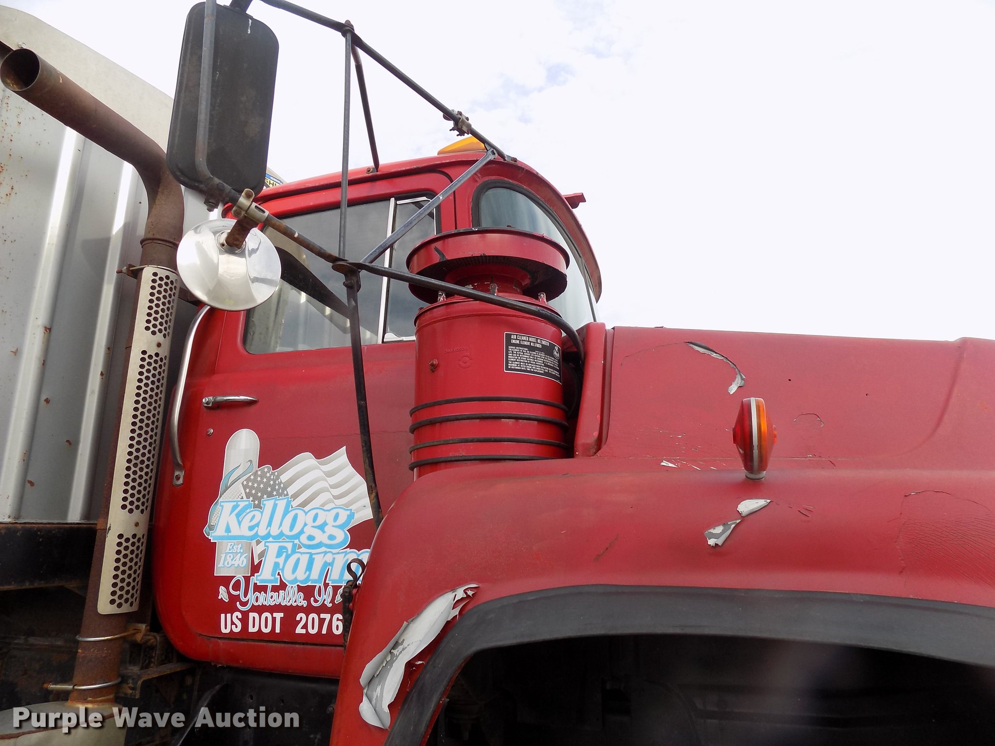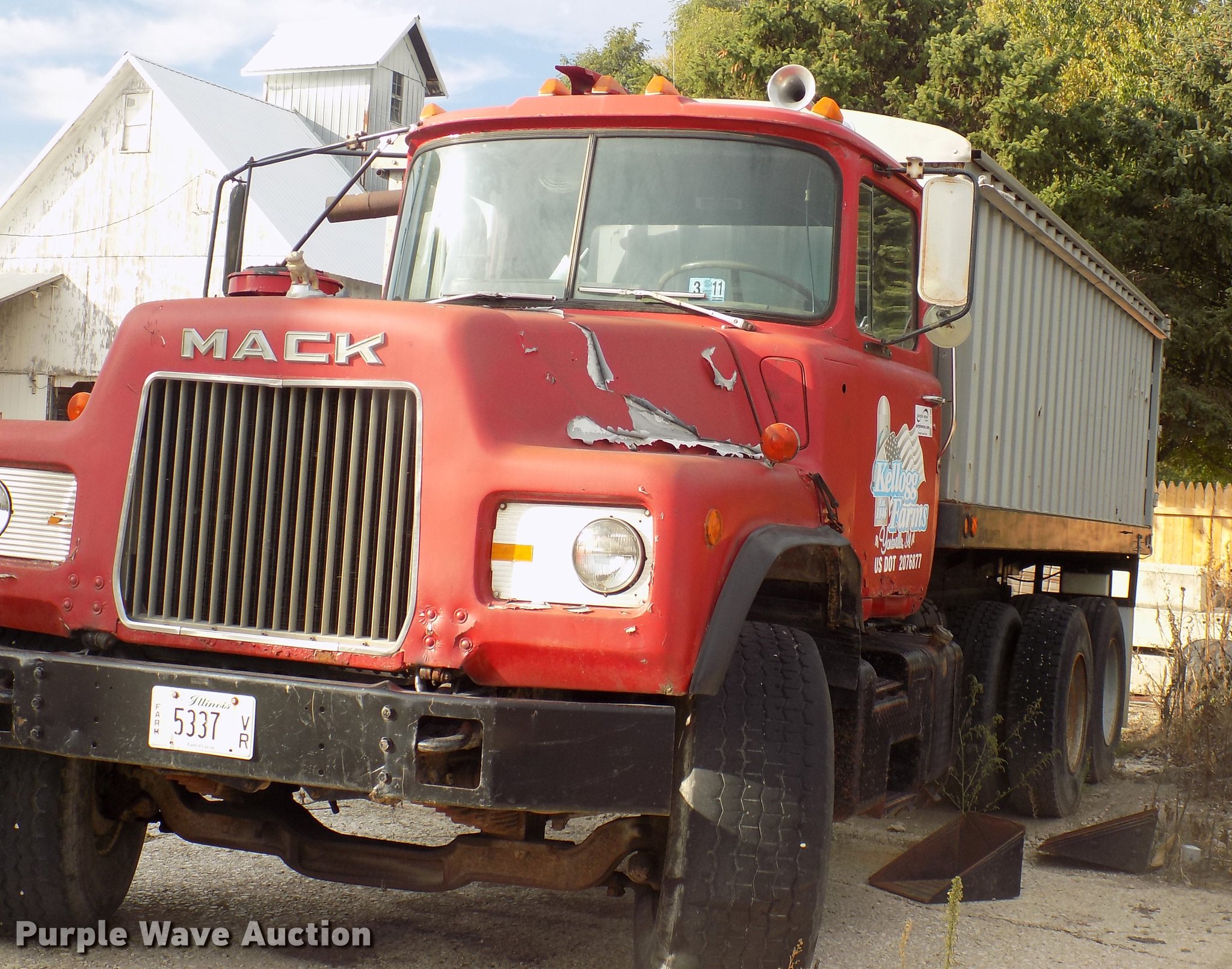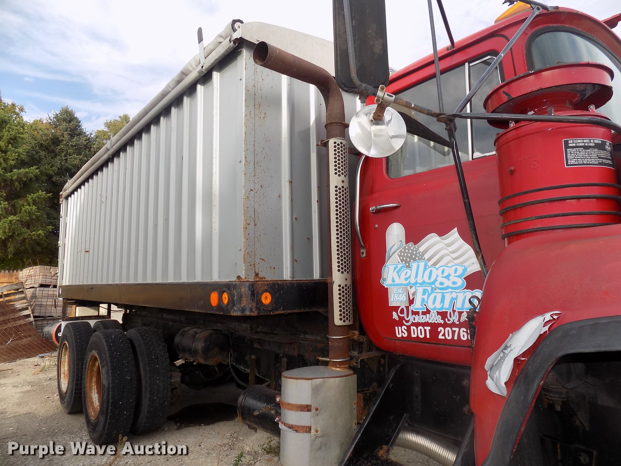 Purple Wave is selling a used Grain Truck in Illinois. This item is a 1982 Mack 685S grain truck with the following: 663,668 miles on odometer, Mack six cylinder diesel engine, Five speed manual transmission, Two speed rear end, Tandem axle, Heat, 10'L x 96"W aluminum grain bed, 72" side height, Single fuel tank, Camelback suspension, Air brakes, 172" wheelbase, 425/65R22.5 tires