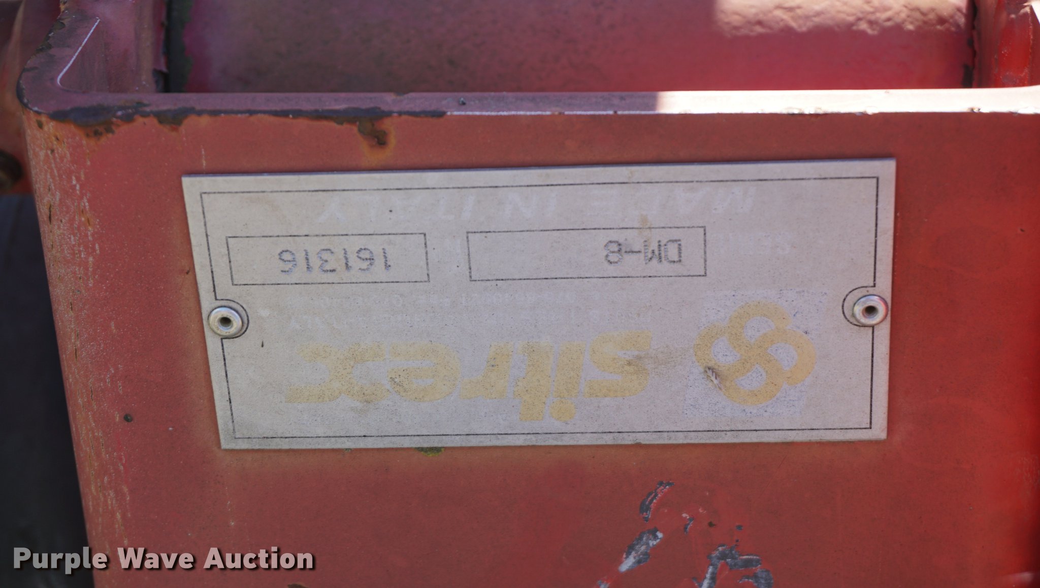 Purple Wave is selling a used Disc or Sickle Mower in Kansas. This item is a Sitrex DM8 disc mower with the following: 10'W, Hydraulic fold, 540 PTO, Three point, Serial 161316