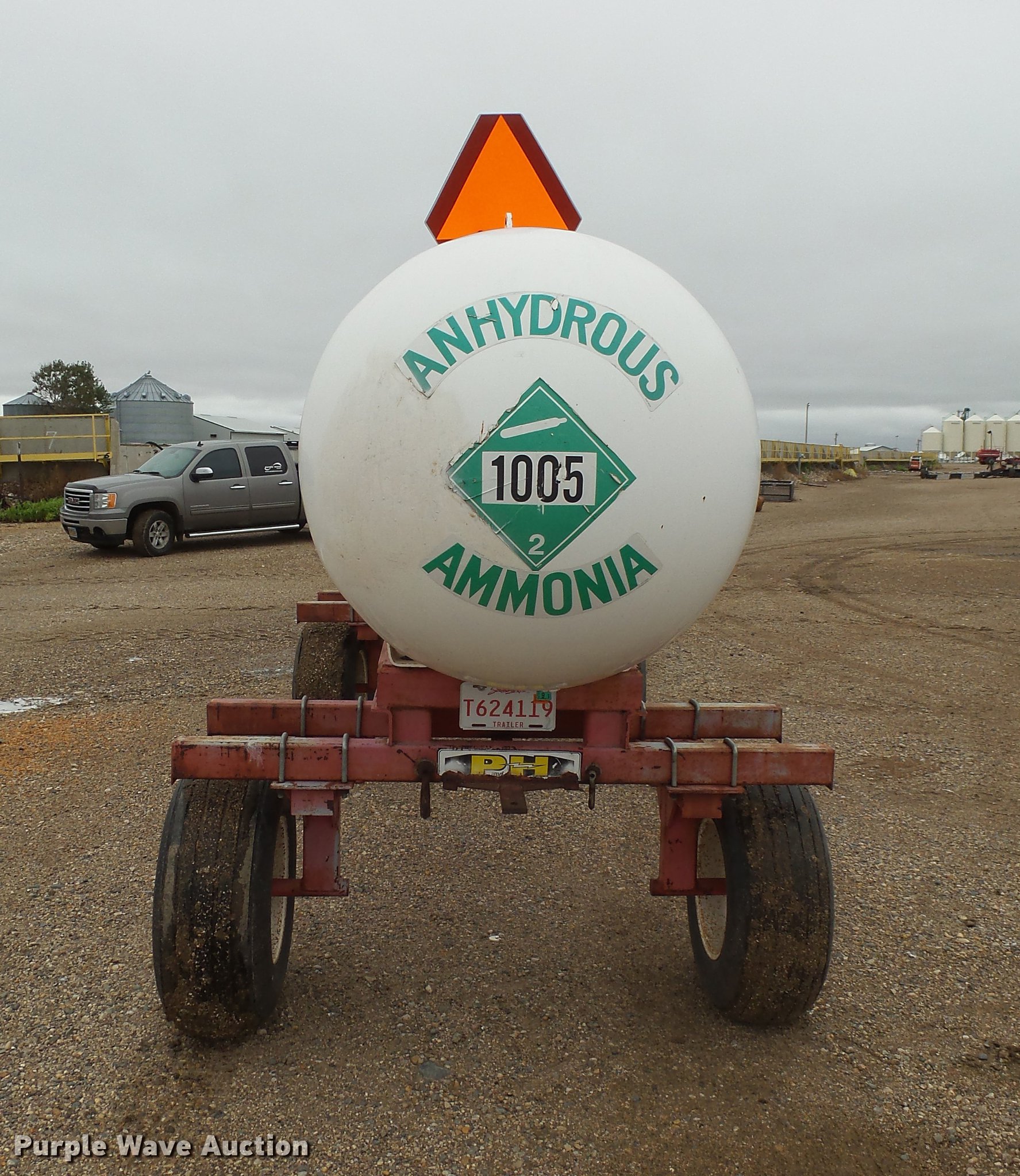 1976 Anhydrous ammonia tank. 1,000 gallon capacity, Steel construction, 12.5L-15 tires. South Dakota title. 755931. South Dakota Wheat Growers. 41 Co Rd 33. Bristol, SD 57219