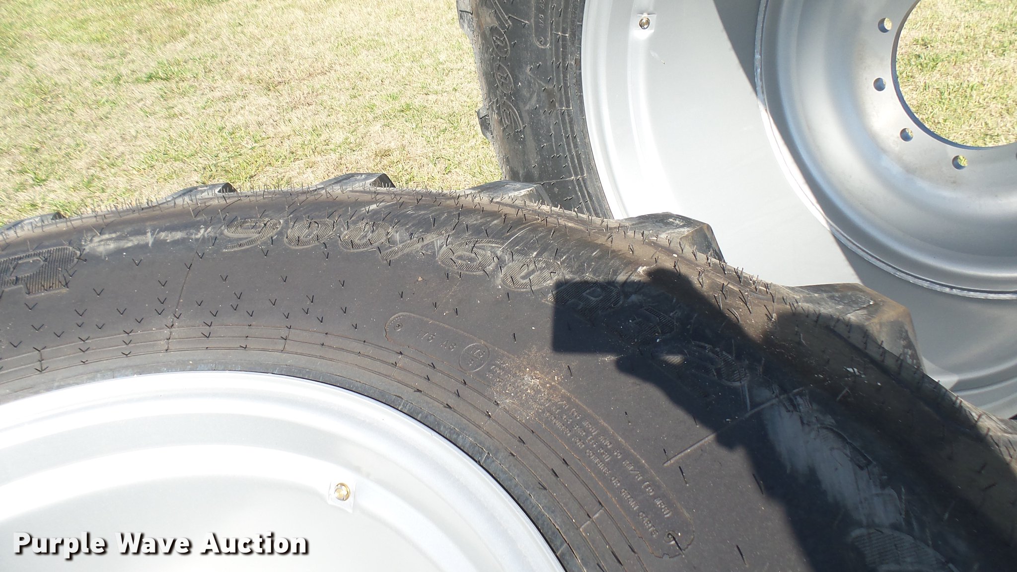 Purple Wave is selling a used Industrial Tires or Tracks in Kansas. This item is a (2) Goodyear Optitrac 900/60R32 tires and wheels with the following: Optitrac DT830 R1W tread, Load rating 176, 27" wide x 32" wheel, 10 lug wheels, 13 1/8 bolt spacing, 11" pilot hole, Center flange measures 2.5" off wheel center line, Can mount to either side of wheel flange, Unused, Wheels fit late model Case, John Deere, Massey, Gleaner, and New Holland