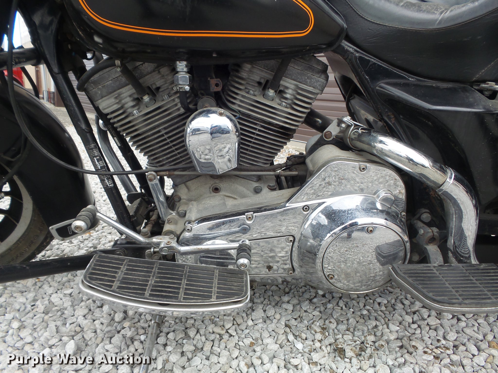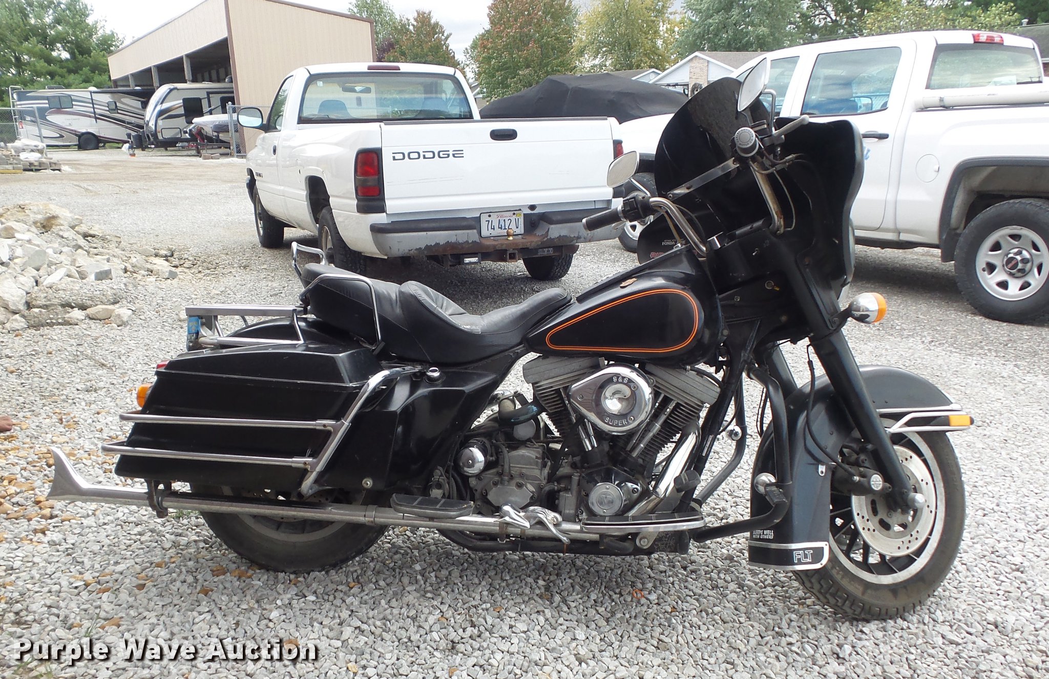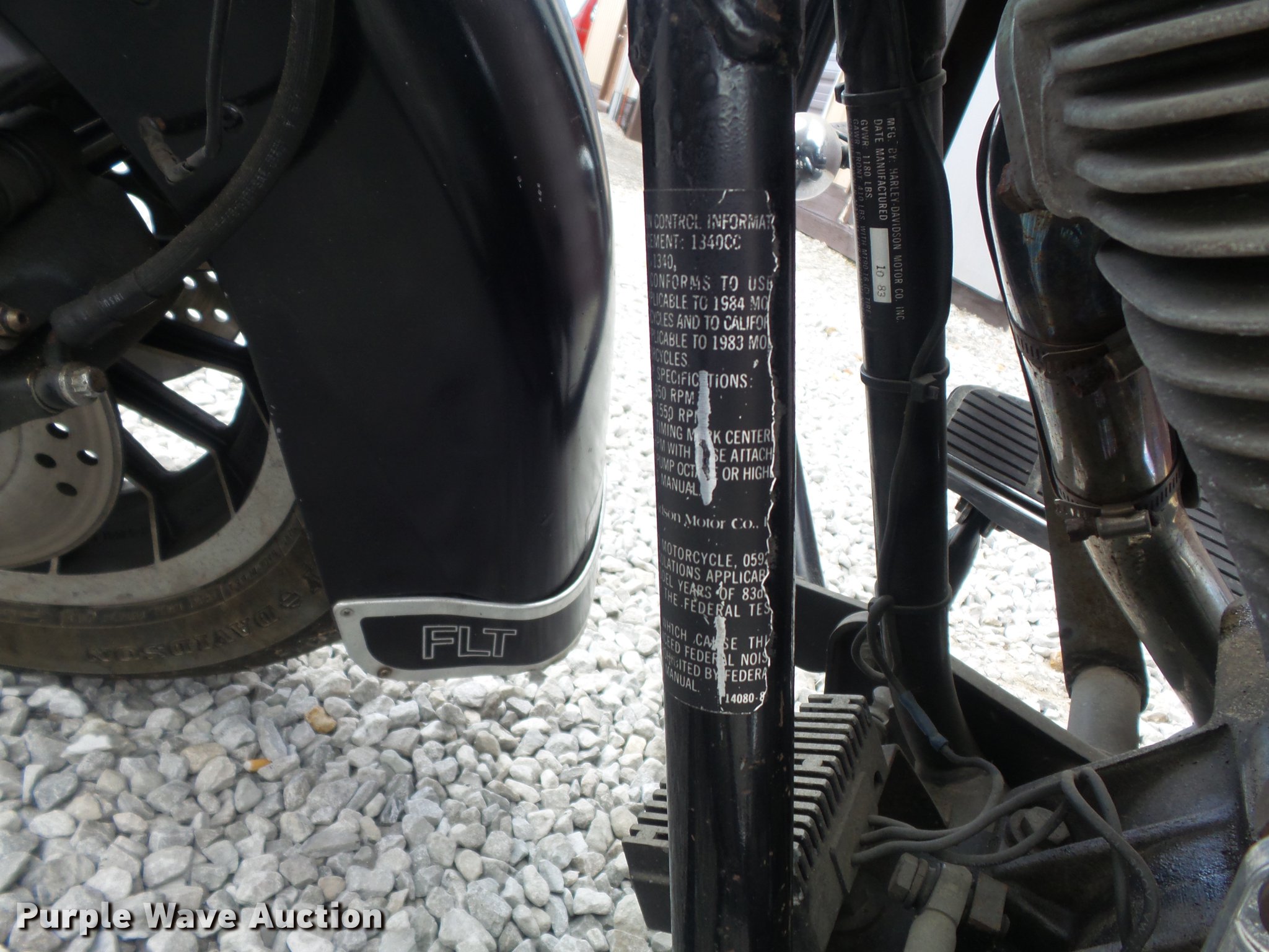 Purple Wave is selling a used Motorcycle in Illinois. This item is a 1984 Harley Davidson FLT Classic motorcycle with the following: 62,618 miles on odometer, Harley Davidson 1,340cc gas engine, Five speed manual transmission, Saddle bags, Disc brakes, Dunlop MT930B16 front tire, Dunlop MT90B16 rear tire, Turns over, but will not start, Possible bad fuel