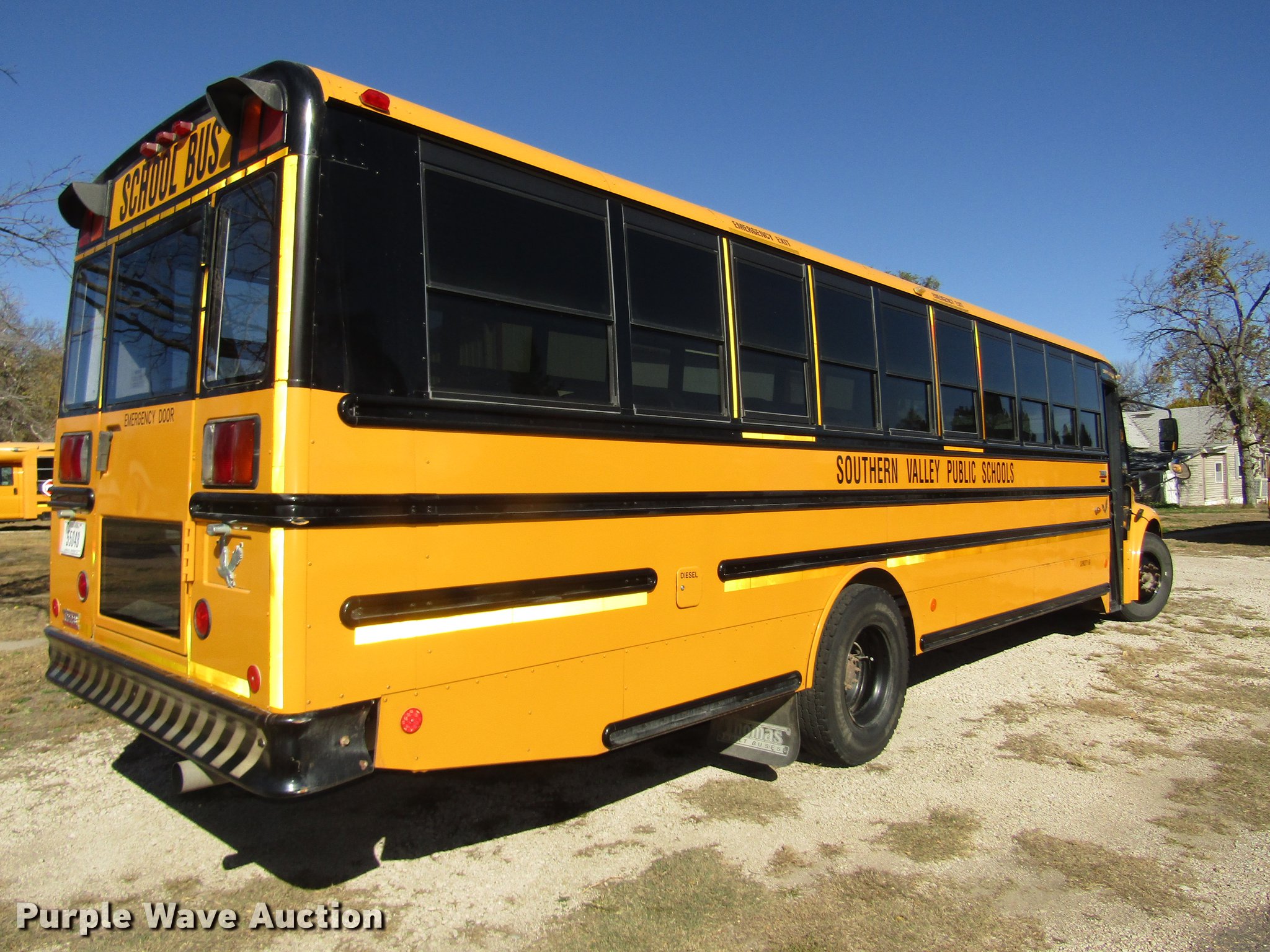 Purple Wave is selling a used Bus in Nebraska. This item is a 2008 Freightliner Thomas Saf-T-Liner school bus with the following: 123,235 miles on odometer, Mercedes-Benz MBE900 6.4L L6 diesel engine, Automatic transmission, Single axle, Heat, Cruise, AM/FM/CD, Heated mirrors, Air suspension seat, Kenwood two-way radio, Overhead storage, 60 passenger capacity, (20) adult seats, Ceiling, front, rear, and side emergency exits, Lighted stop sign, Backup alarm, Block heater, 11R22.5 tires, GVWR 27,000 lbs, FAWR 8,000 lbs, RAWR 19,000 lbs