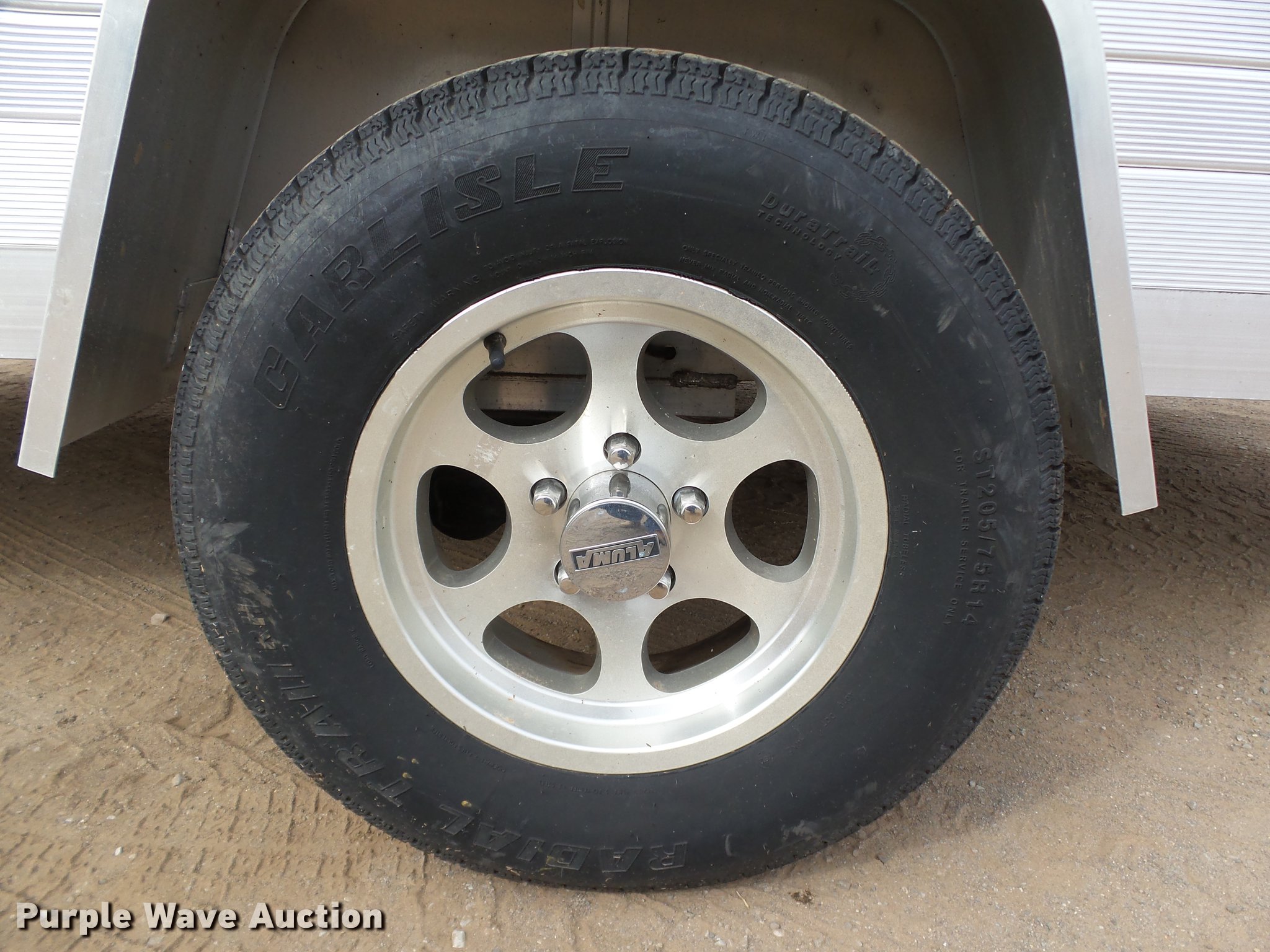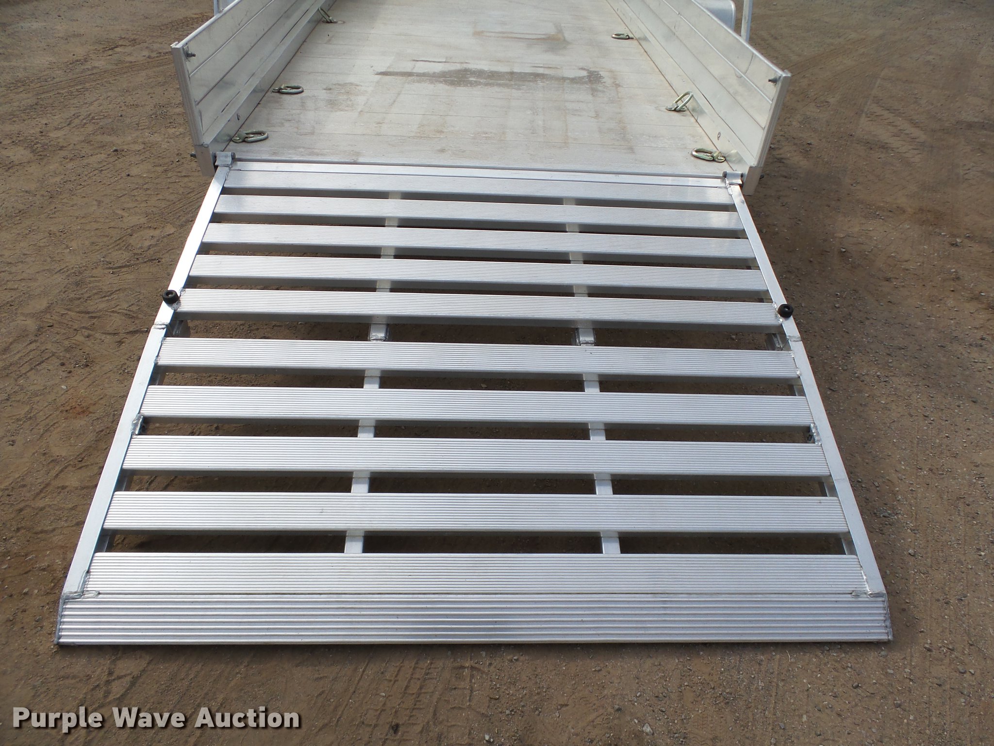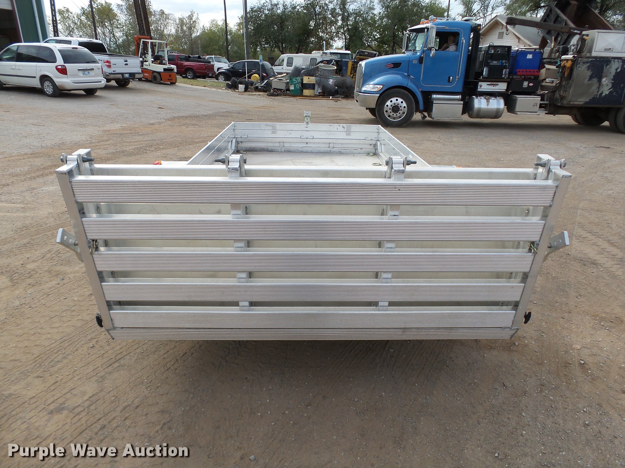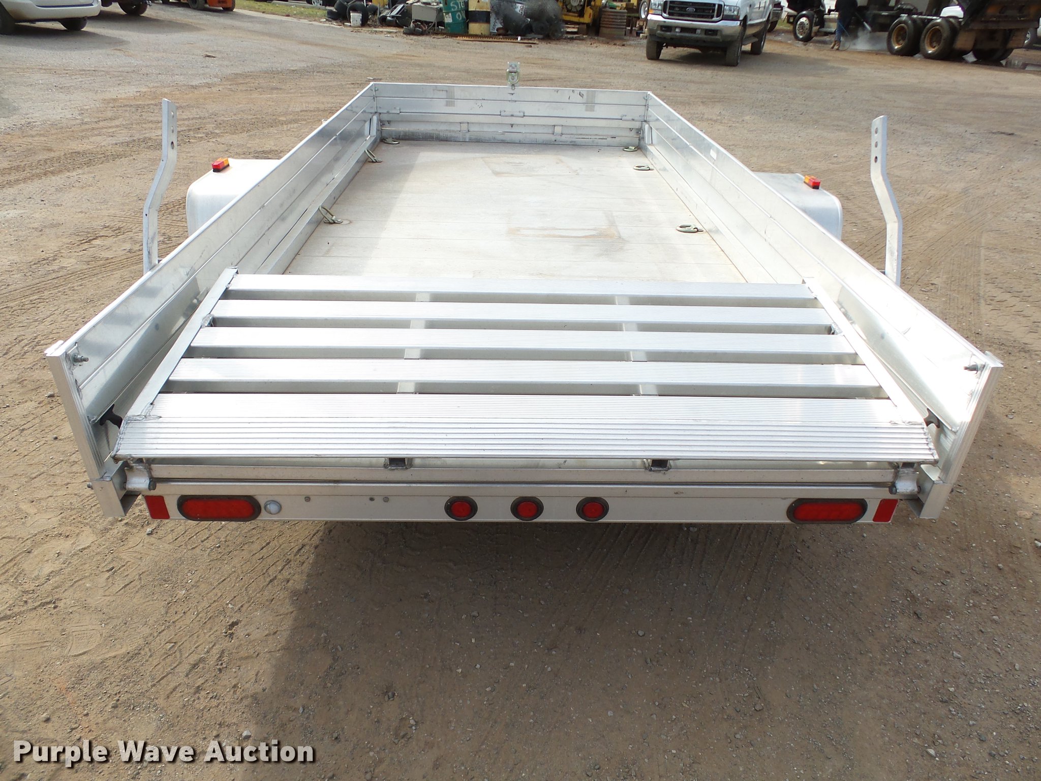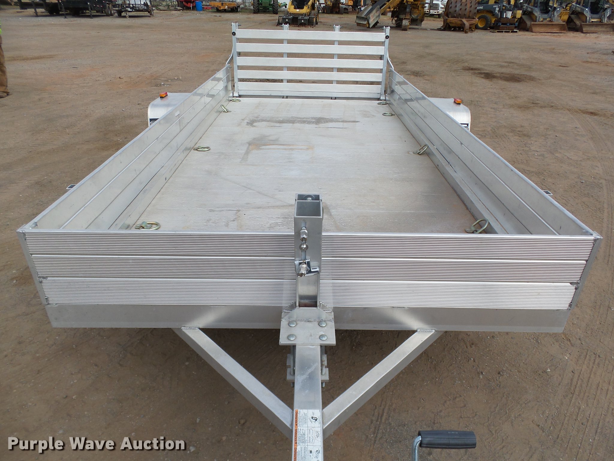Purple Wave is selling a used Car or Utility Trailer in Oklahoma. This item is a 2012 Aluma 6812H73T utility trailer with the following: 16.5'L x 72"W, 12.5'L deck, 14" side height, 17" floor height, 5'L ramps, Aluminum deck, D-ring tie downs, Stake pockets, Removable sideboards, 2" ball hitch, Single leg landing gear, Spring suspension, Single axle, Aluminum wheels, Carlisle 205/75R14 tires, GVWR 2,990 lbs
