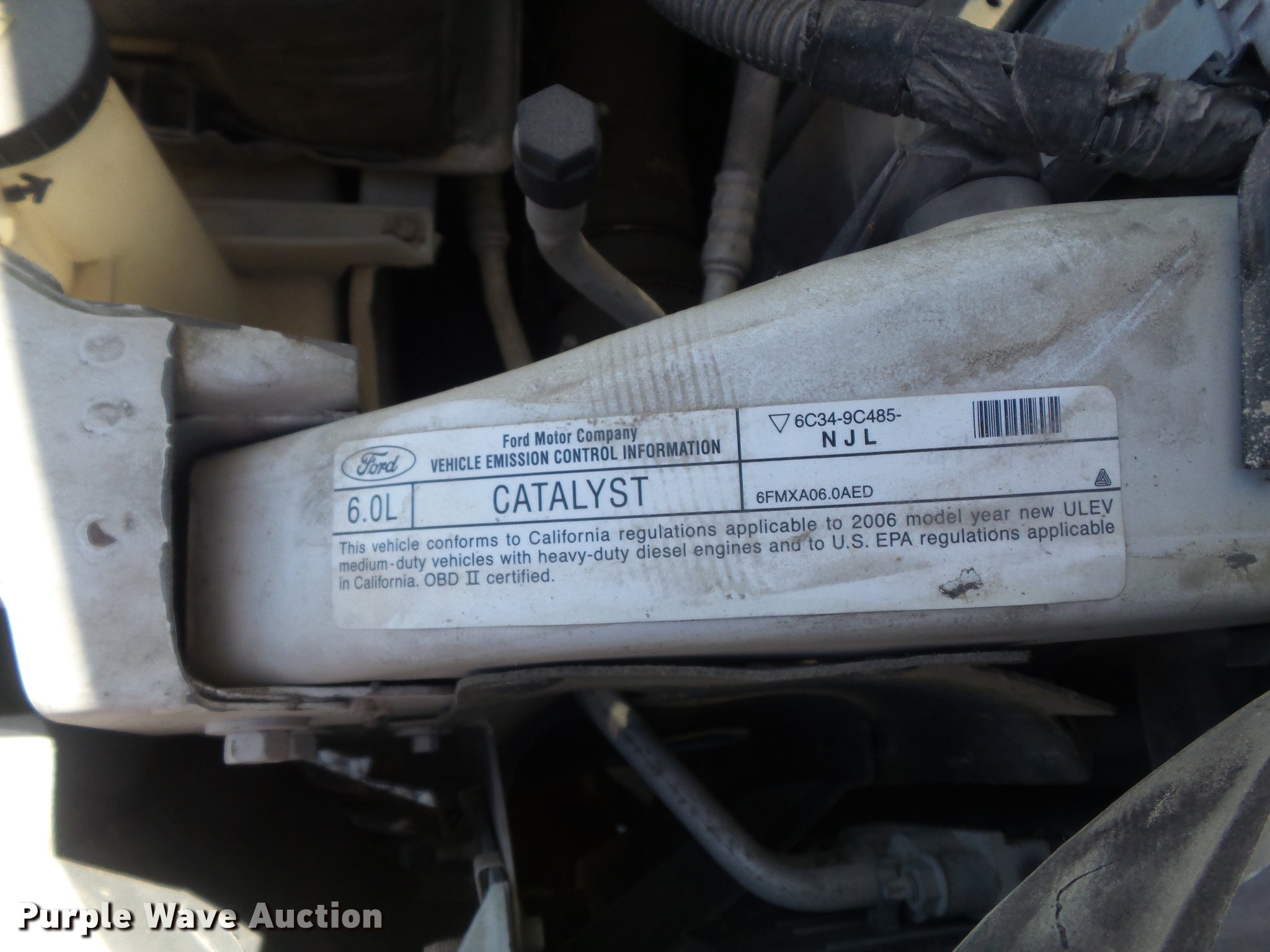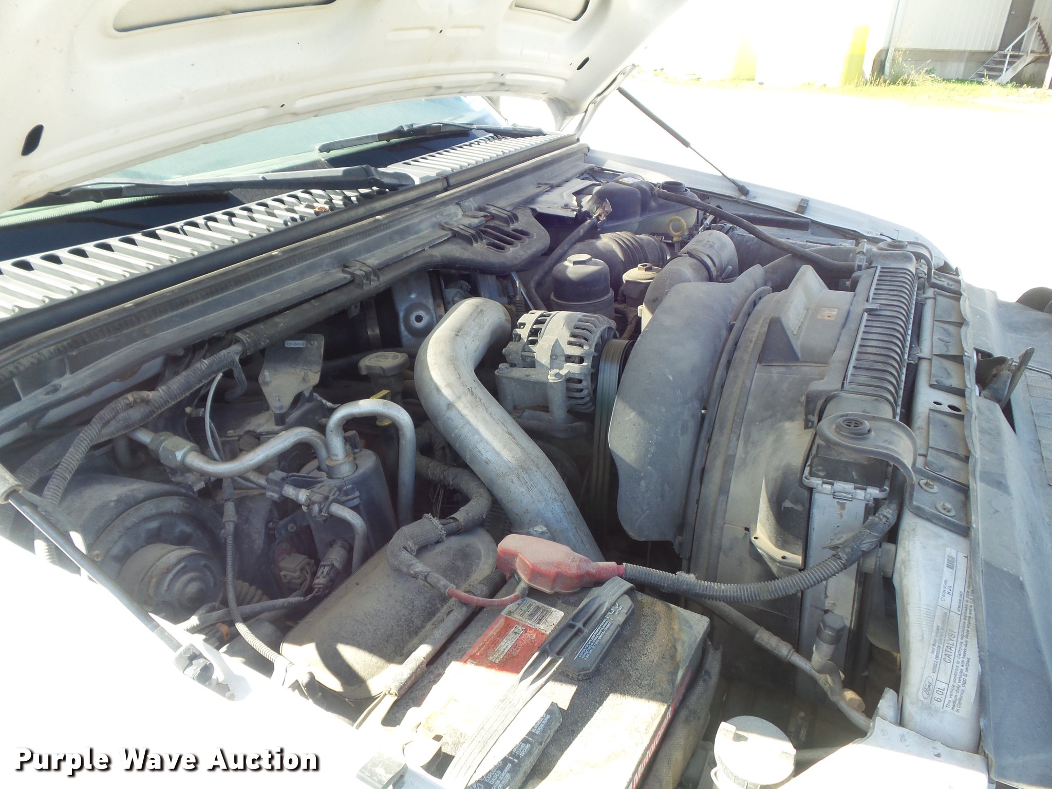 Purple Wave is selling a used 3/4 or 1 Ton Pickup or Van in Missouri. This item is a 2006 Ford F350 Super Duty XL flatbed pickup truck with the following: 120,753 miles on odometer, 6.0L V8 OHV 32V turbo diesel engine, Automatic transmission, Four wheel drive, AC and heat, Tilt, Cruise, AM/FM, Manual windows and locks, Vinyl interior, Running boards, 9'L x 94"W flatbed, Toolbox, Gooseneck ball, Trailer wiring, LT245/75R17 tires, Check engine light on, Engine issues, cylinder head gasket blown, Coolant being forced out of radiator