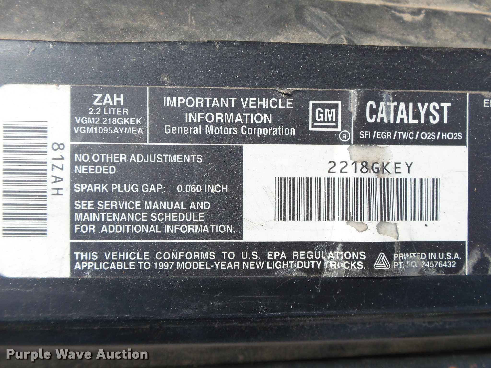 Purple Wave is selling a used Compact Pickup or Van in Missouri. This item is a 1997 Chevrolet S10 Ext. Cab pickup truck with the following: 173,933 miles on odometer, 2.2L L4 OHV 8V gas engine, Five speed manual transmission, AC and heat, Tilt, Cruise, AM/FM, Power windows, locks, and mirrors, Cloth interior, 205/70R15 tires