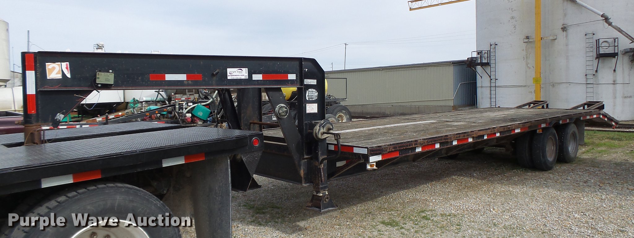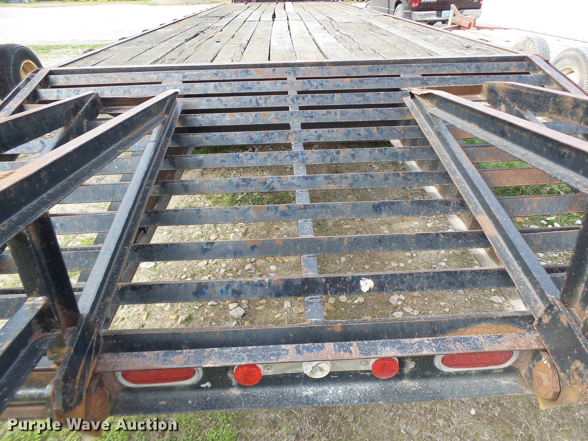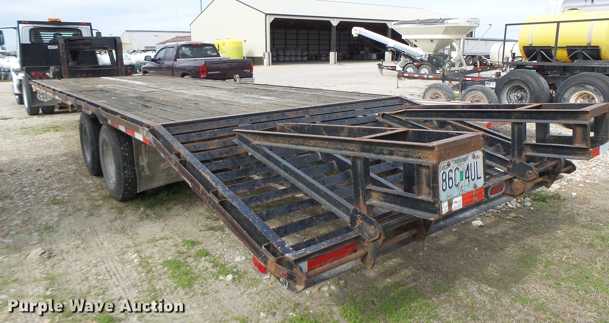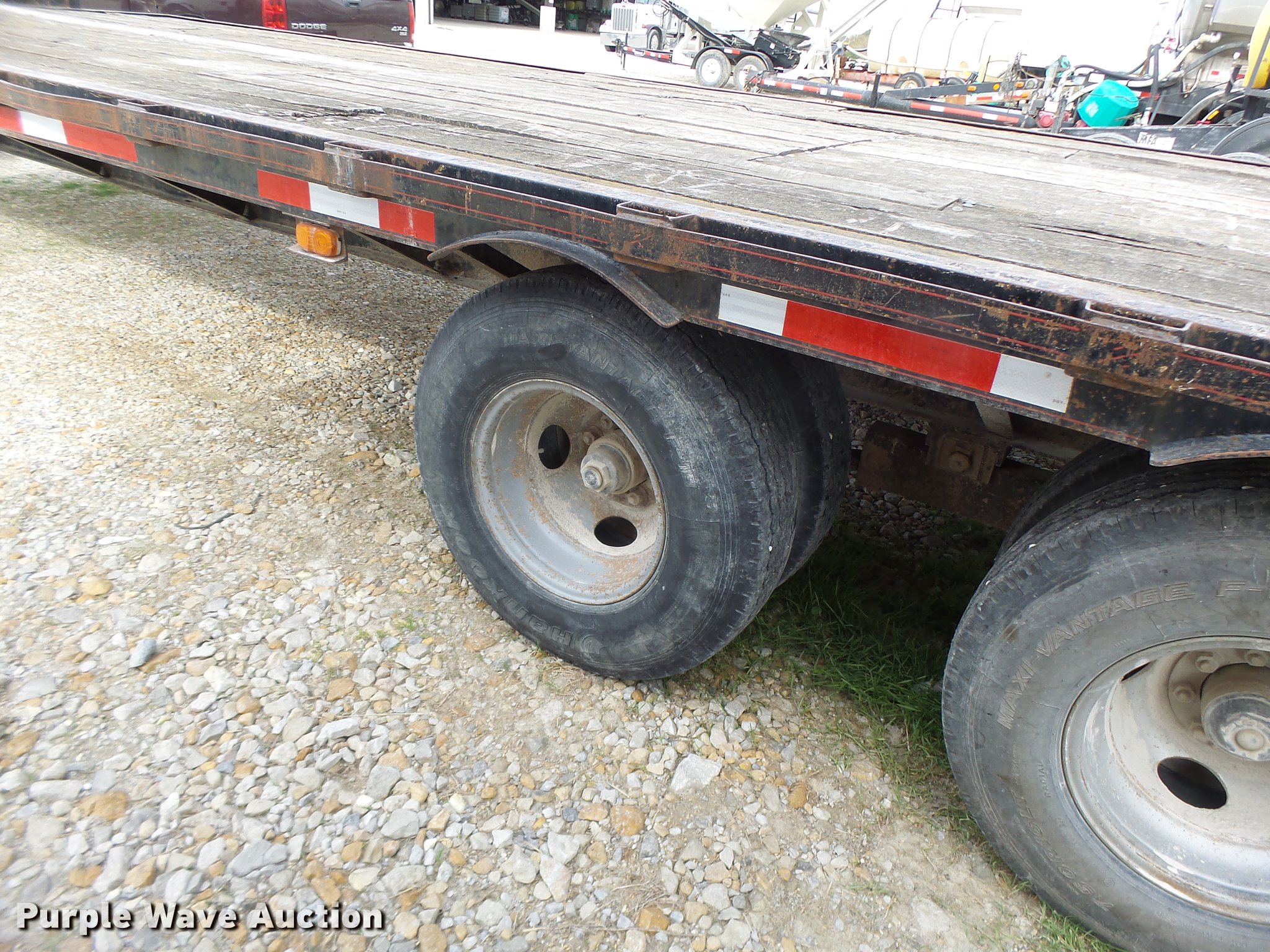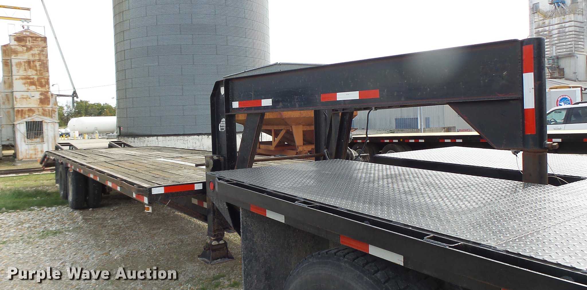 Purple Wave is selling a used Equip. Trailer in Missouri. This item is a 1997 Maxwell equipment trailer with the following: 30'L x 8'W, 25'L wood deck, 5'L dovetail, 5'L ramps, Gooseneck hitch, Dual leg landing gear, Spring suspension, Electric brakes, Tandem axle, Steel wheels, 7.50R16 tires, GVWR 20,000 lbs