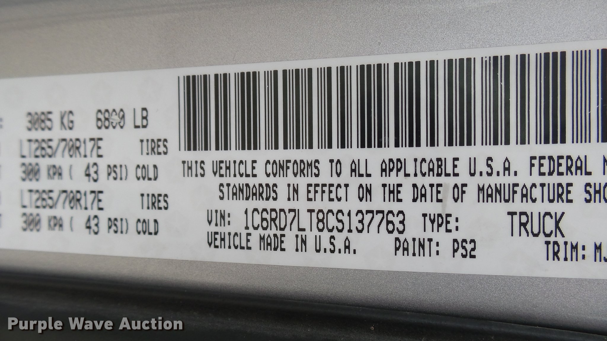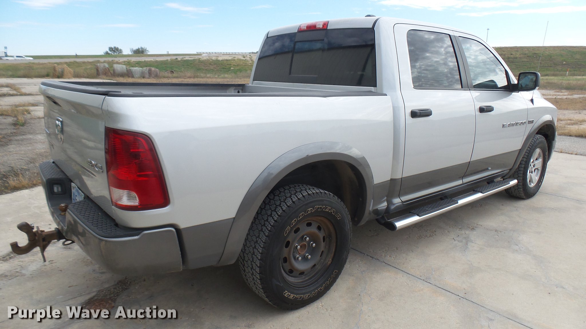 Purple Wave is selling a used 1/2 Ton Pickup or Van in Kansas. This item is a 2012 Dodge Ram 1500 Crew Cab pickup truck with the following: 137,582 miles on odometer, Actual mileage unknown, 5.7L V8 OHV 16V gas engine, Automatic transmission, Four wheel drive, AC and heat, Tilt, Cruise, AM/FM/CD, Power windows, locks, mirrors, and seat, Cloth interior, Front tow hooks, Running boards, Receiver hitch, Trailer wiring, 265/70R17 tires, Spare tire on passenger rear