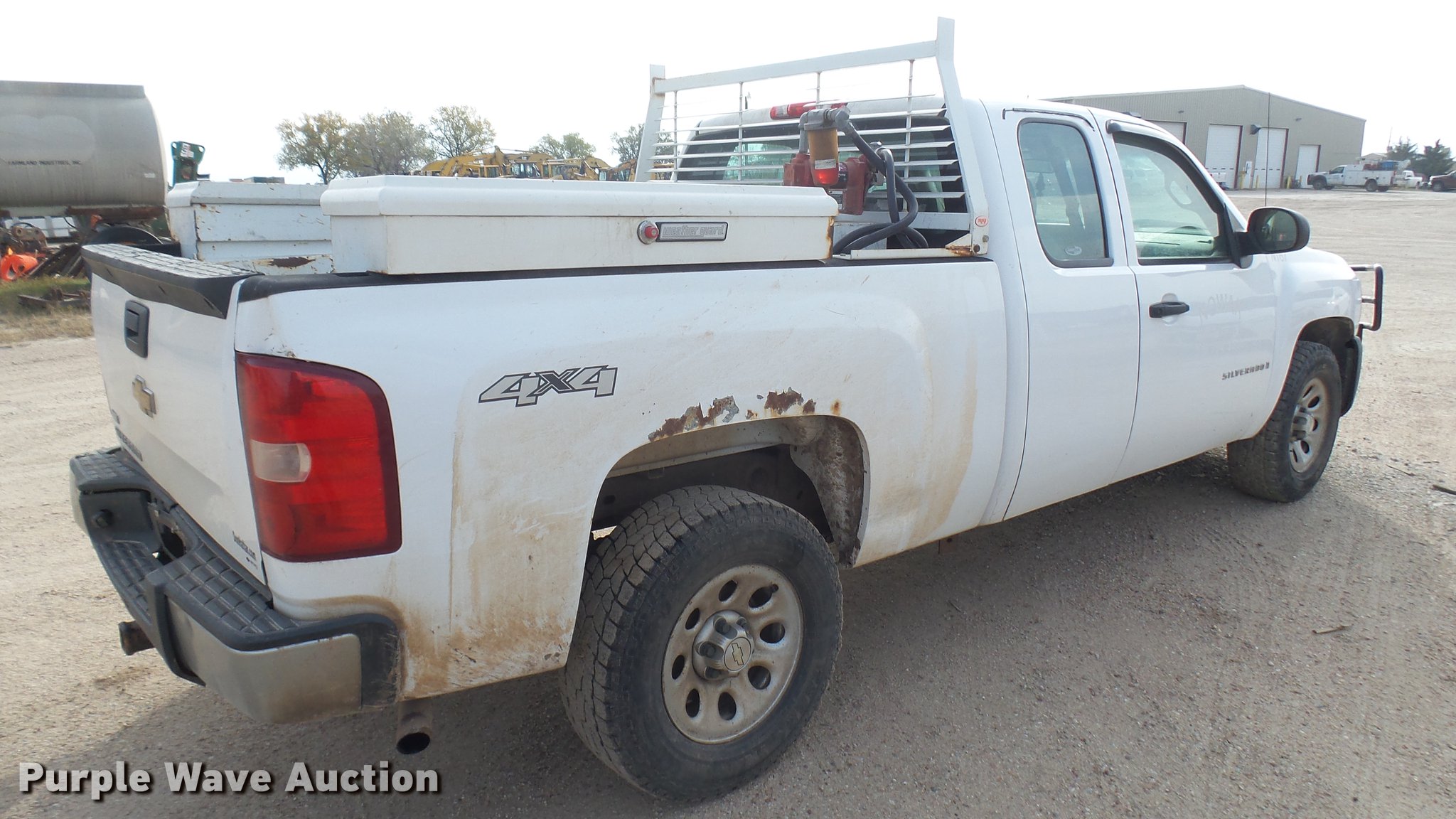 Purple Wave is selling a used 1/2 Ton Pickup or Van in Kansas. This item is a 2007 Chevrolet Silverado 1500 Ext. Cab pickup truck with the following: 277,152 miles on odometer, 5.3L V8 OHV 16V FFV gas engine, Automatic transmission, Four wheel drive, AC and heat, Tilt, Cruise, AM/FM/CD, Vinyl interior, Grill guard, Front tow hook, Toolboxes, Fuel tank, Pump, Hose, Nozzle, Receiver hitch, Trailer wiring, 265/70R17 tires