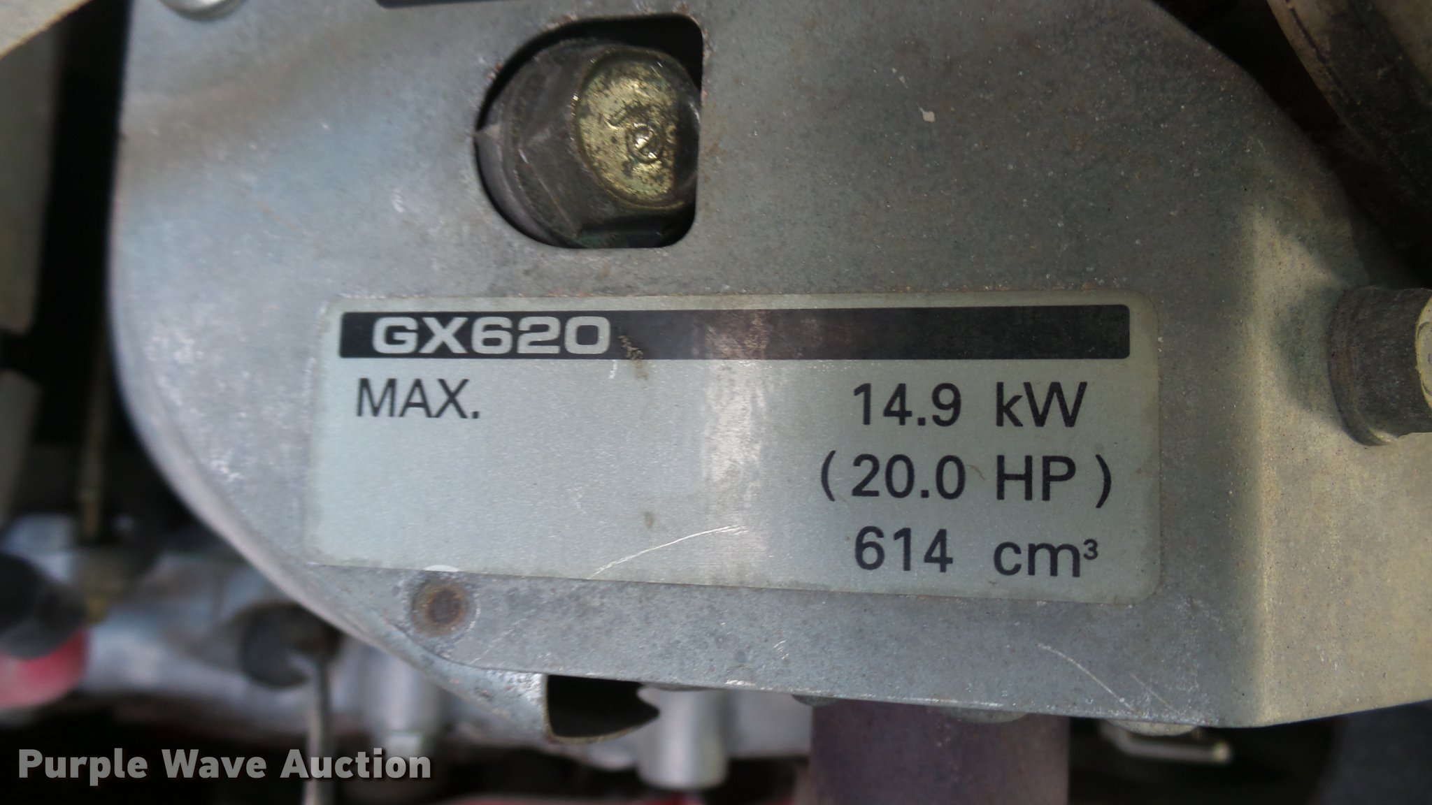 MK Diamond concrete saw. 120 hours on meter, Honda GX620 gas engine 20 HP, Forward/reverse, Electric start, 18" blade capacity, Depth gauge, Serial 581707. Haysville Rental Center. 7560 S Broadway St. Haysville, KS 67060