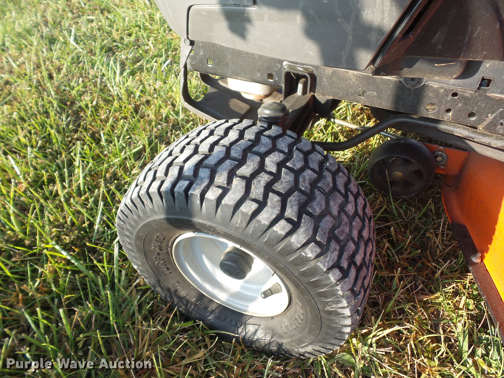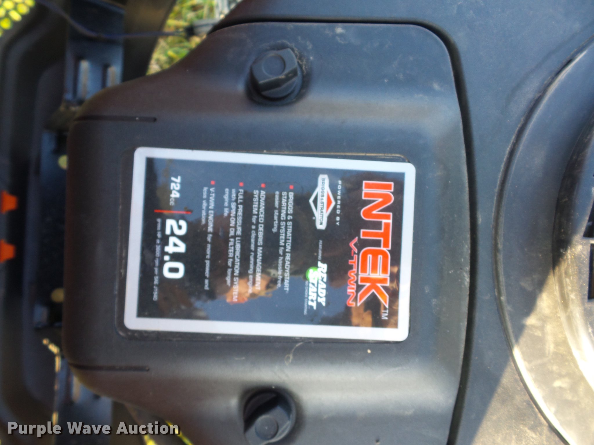 Purple Wave is selling a used Lawn Mower in Missouri. This item is a Husqvarna YTH24V48 lawn mower with the following: 213 hours on meter, 48" cut, Briggs & Stratton V-twin gas engine, 24 HP, Hydrostatic transmission, 15x6-6 front tires, 20x8x8 rear tires