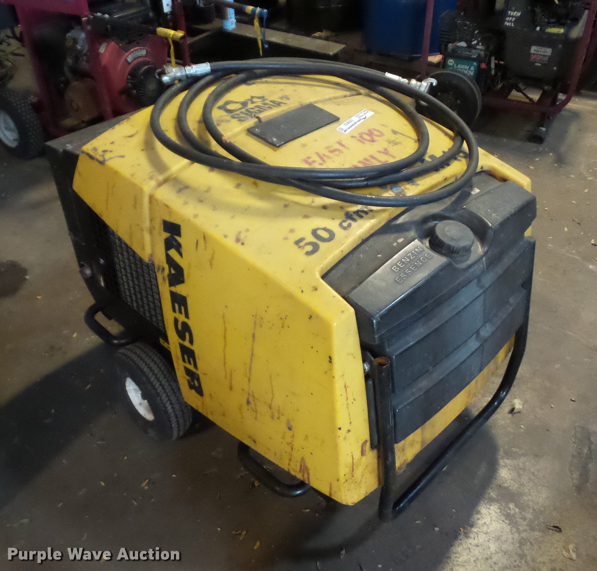Purple Wave is selling a used Air Compressor in Missouri. This item is a Kaeser air compressor with the following: 1,160 hours on meter, Honda GX620 gas engine, 50 cfm
