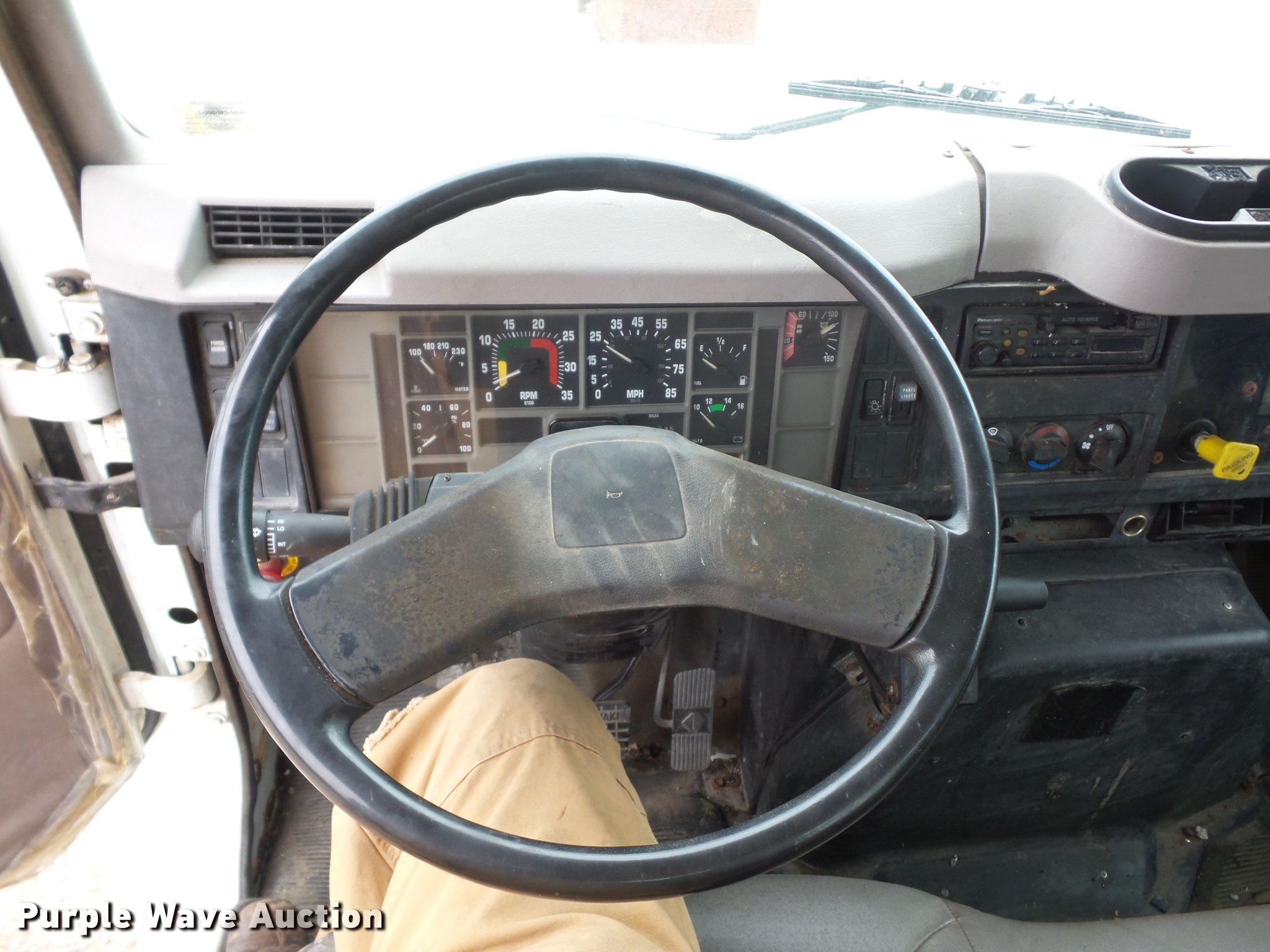 Purple Wave is selling a used Flat Bed Truck in Missouri. This item is a 1998 International 4900 flatbed truck with the following: 185,603 miles on odometer, International DT466 7.6L L6 turbo diesel engine, Automatic transmission, Heat, Cruise, Manual windows and locks, Power and heated mirrors, 20'L x 97"W flatbed, Stake pockets, Toolbox, Spring suspension, Air brakes, 11R22.5 tires