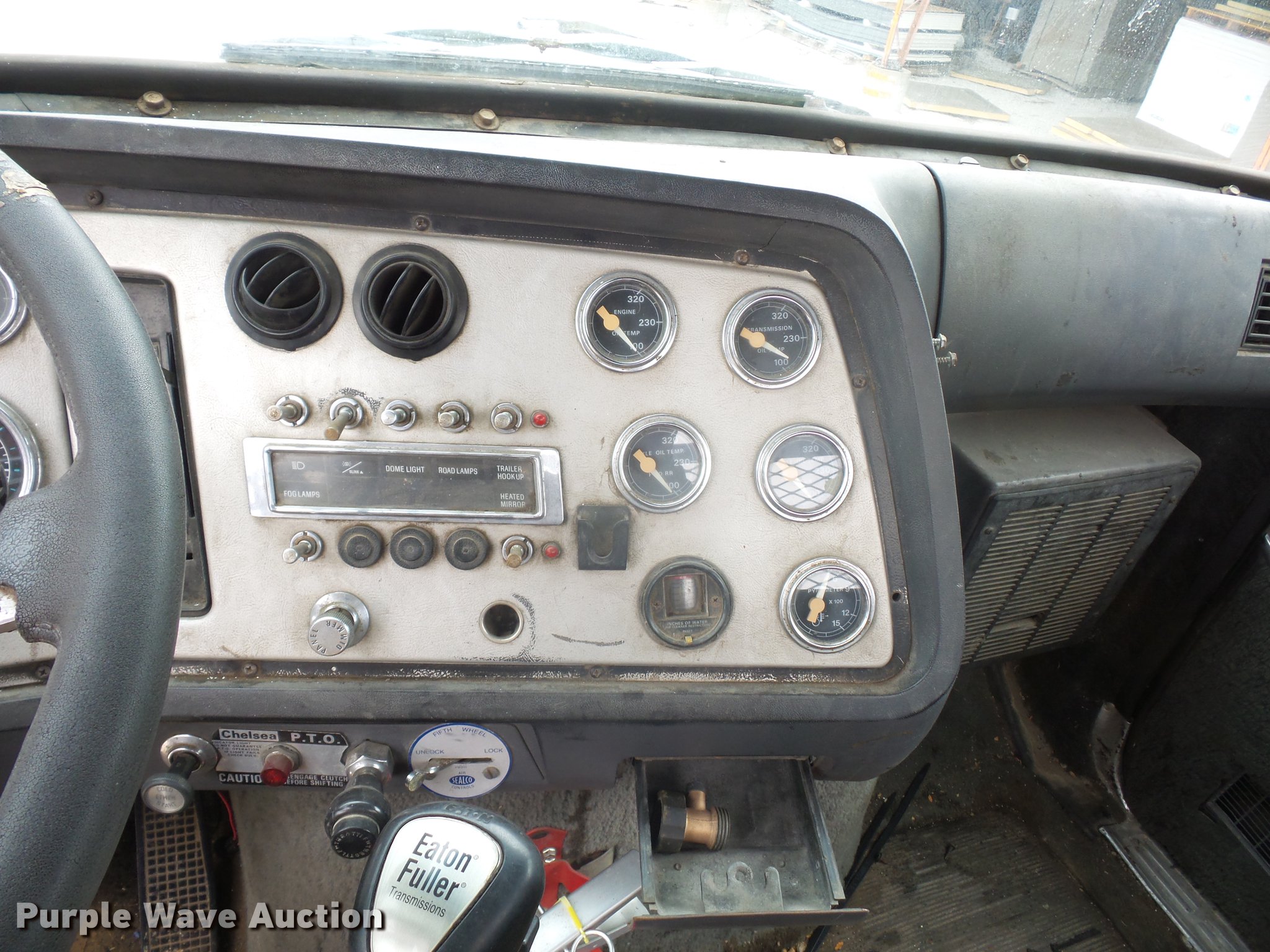 Purple Wave is selling a used Flat Bed Truck in Missouri. This item is a 1987 Ford LTL9000 flatbed truck with the following: 132,891 miles on odometer, Caterpillar 3406 14.6L L6 turbo diesel engine, Eaton Fuller RTO-11613-14613 13 speed manual transmission, Tandem axle, Heat, AM/FM, Air suspension seat, 24'L x 8'W flatbed, Steel floor, Storage boxes, Pintle hitch, Spring over walking beam suspension, GVWR 46,000 lbs