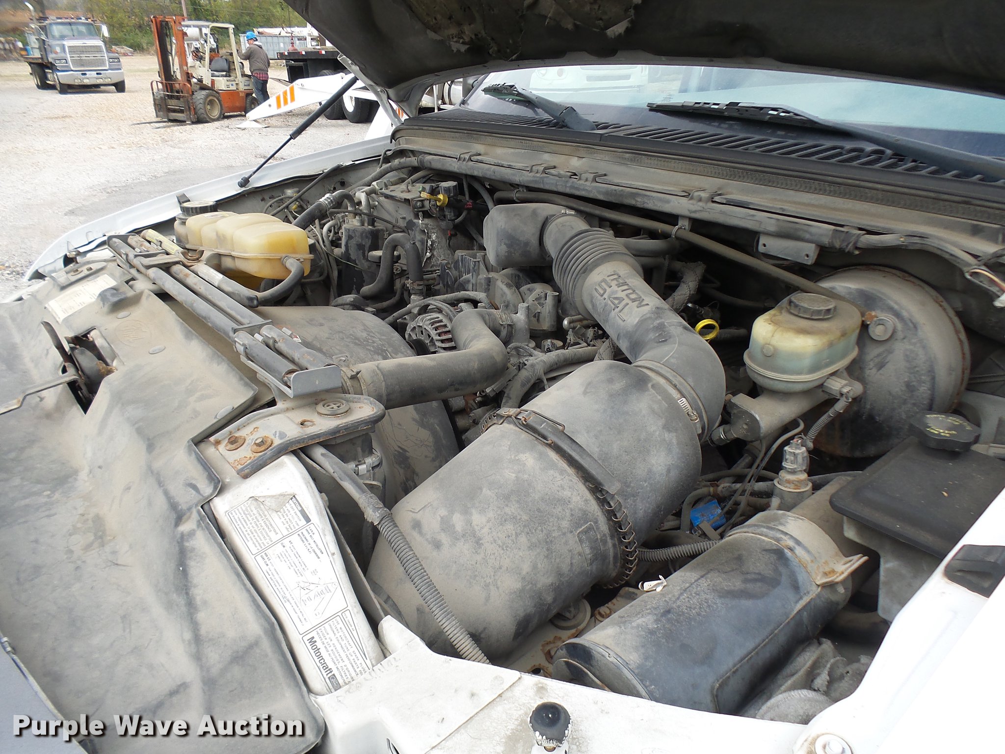 Purple Wave is selling a used 3/4 or 1 Ton Pickup or Van in Missouri. This item is a 2002 Ford F350 Super Duty utility bed pickup truck with the following: 182,161 miles on odometer, 5.4L V8 SOHC 16V gas engine, Automatic transmission, AC and heat, Tilt, Cruise, Manual windows and locks, Vinyl interior, Reading Classic utility bed, 11'L x 94"W, Ladder rack, 215/85R16 tires, Check engine light on