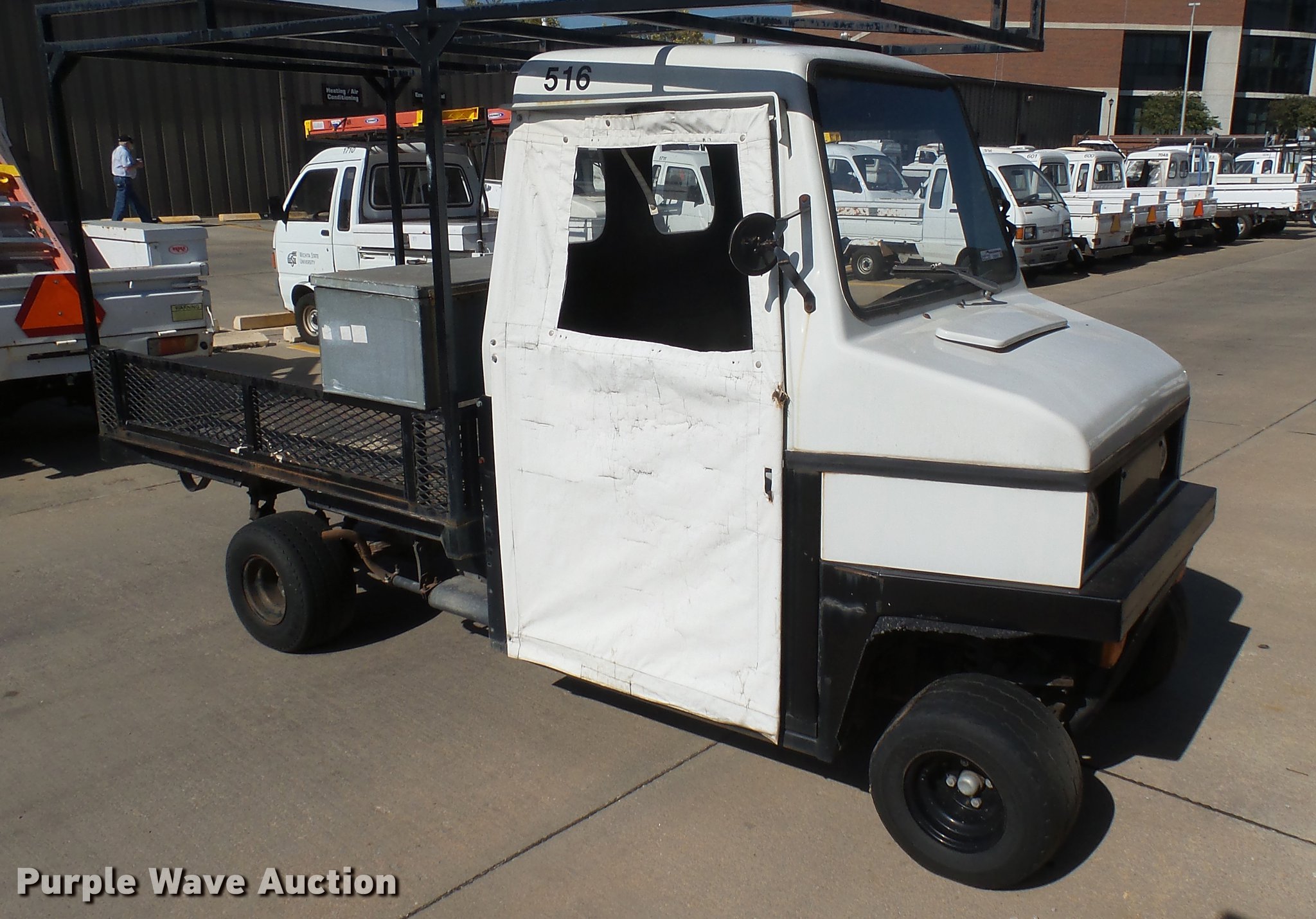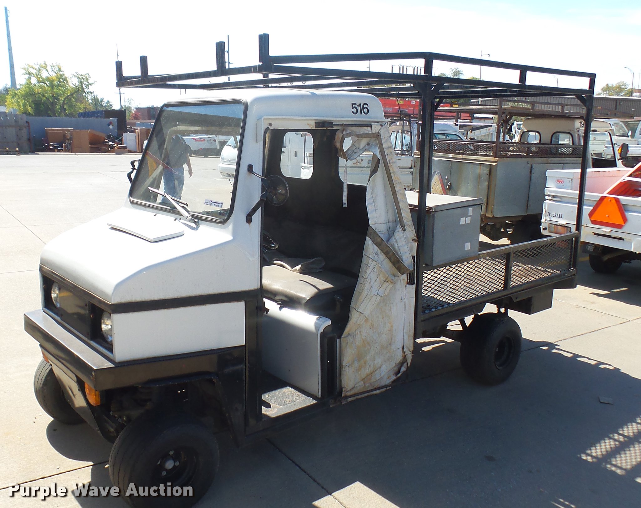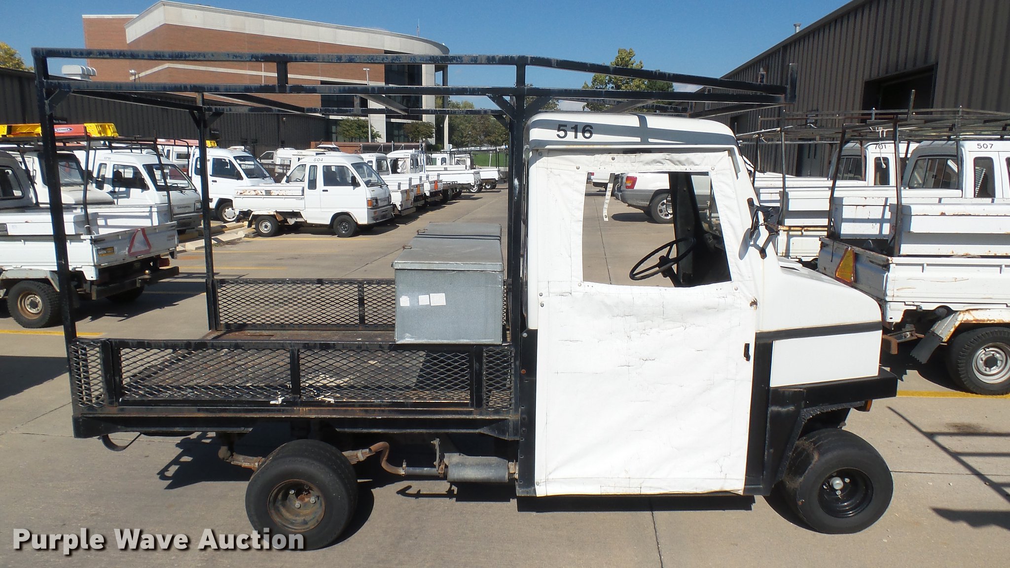 Purple Wave is selling a used Utility Vehicle in Kansas. This item is a 1989 Cushman utility vehicle with the following: 2,112 hours on meter, Two cylinder gas engine, Enclosed cab, 69" x 53" steel bed, Receiver hitch, 18.5x8.50-8 tires, Weak battery, Unit# 516