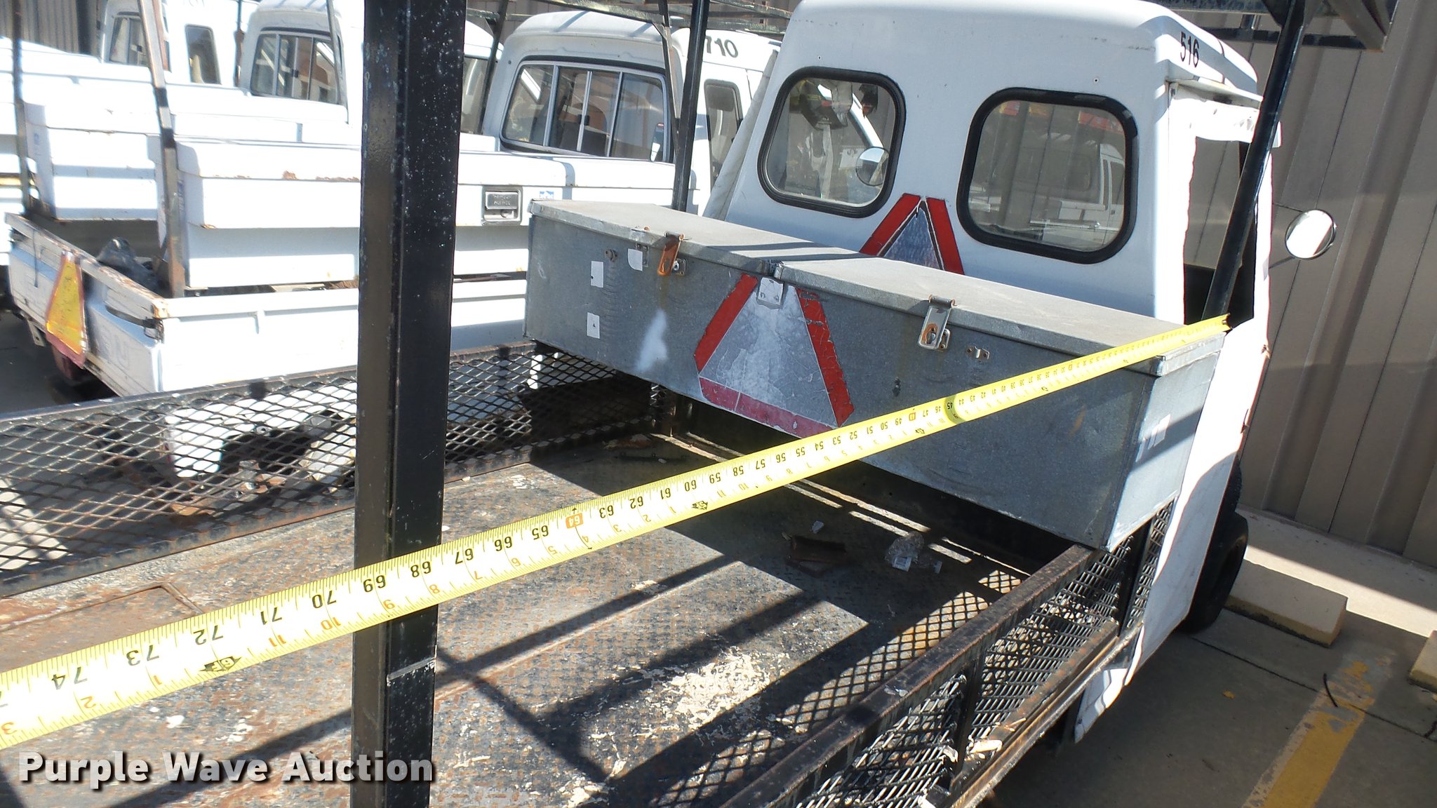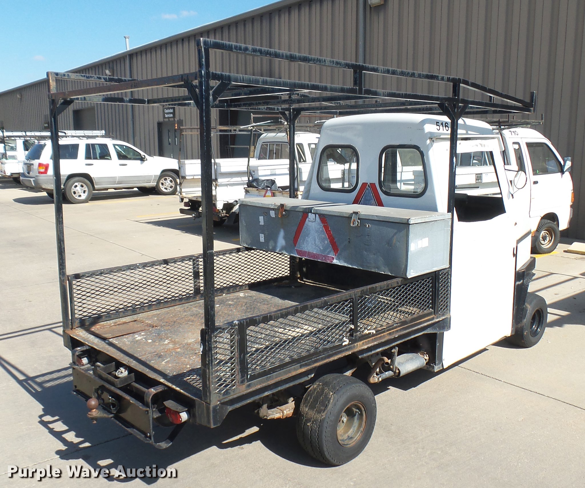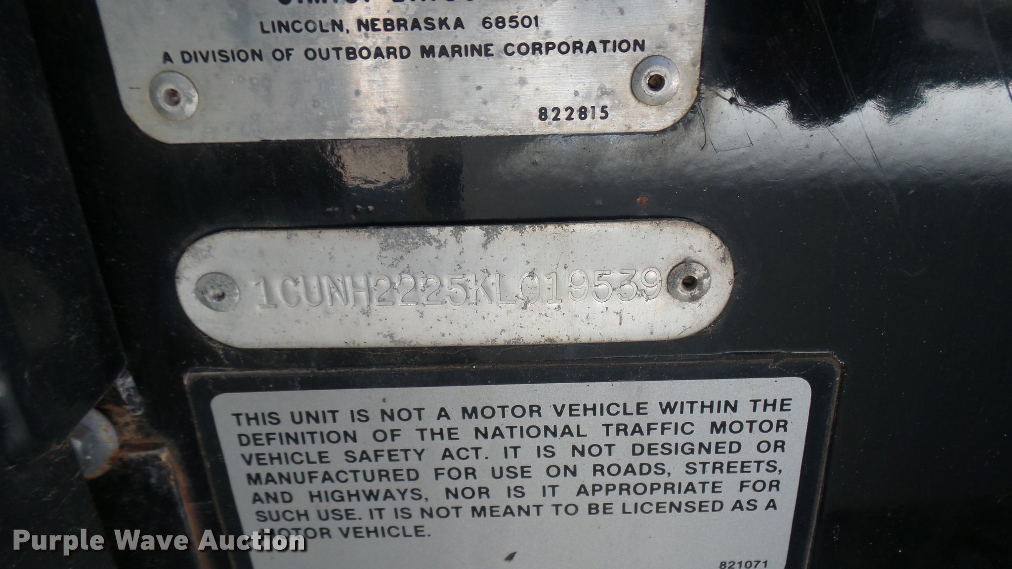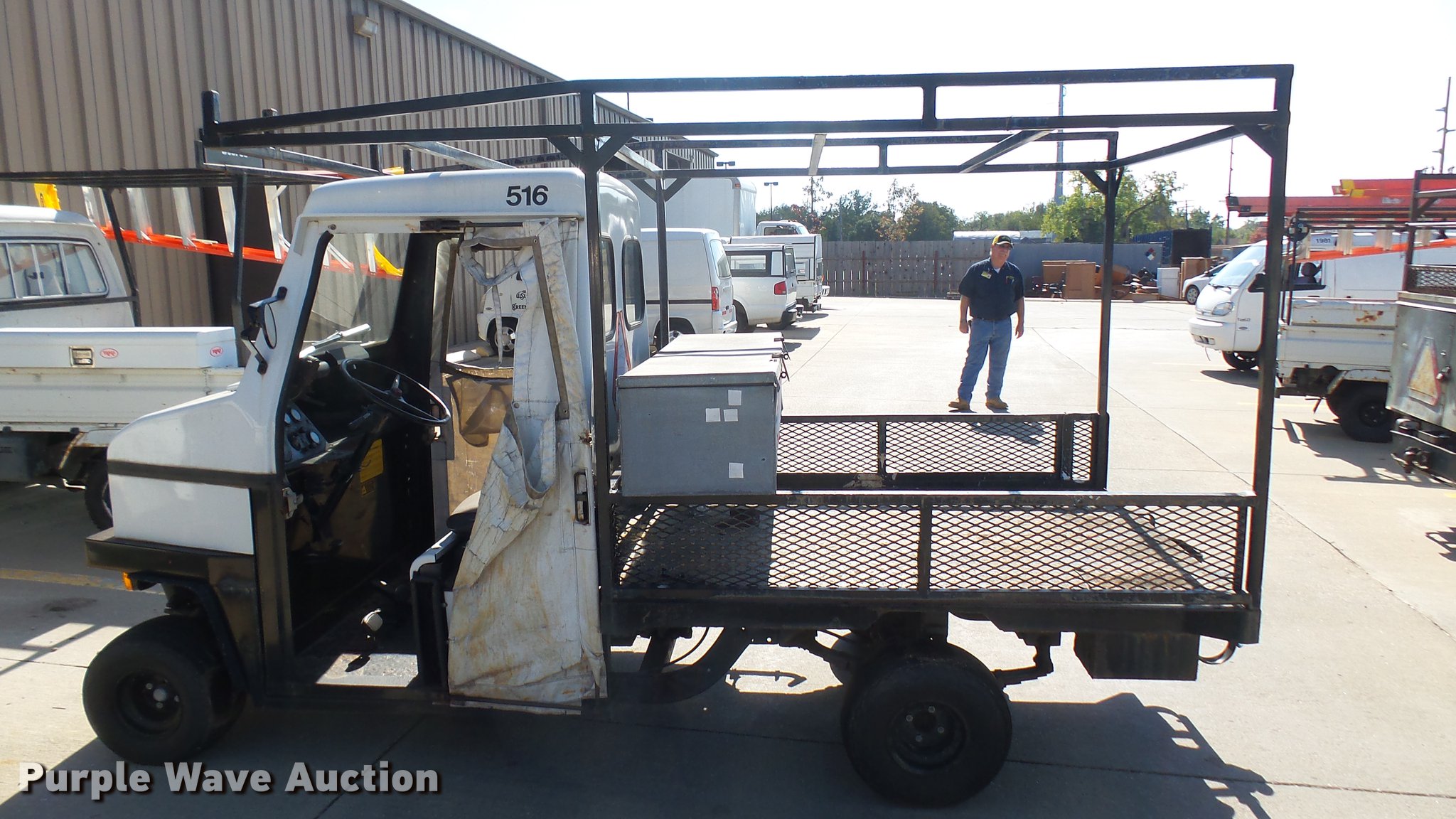 Purple Wave is selling a used Utility Vehicle in Kansas. This item is a 1989 Cushman utility vehicle with the following: 2,112 hours on meter, Two cylinder gas engine, Enclosed cab, 69" x 53" steel bed, Receiver hitch, 18.5x8.50-8 tires, Weak battery, Unit# 516