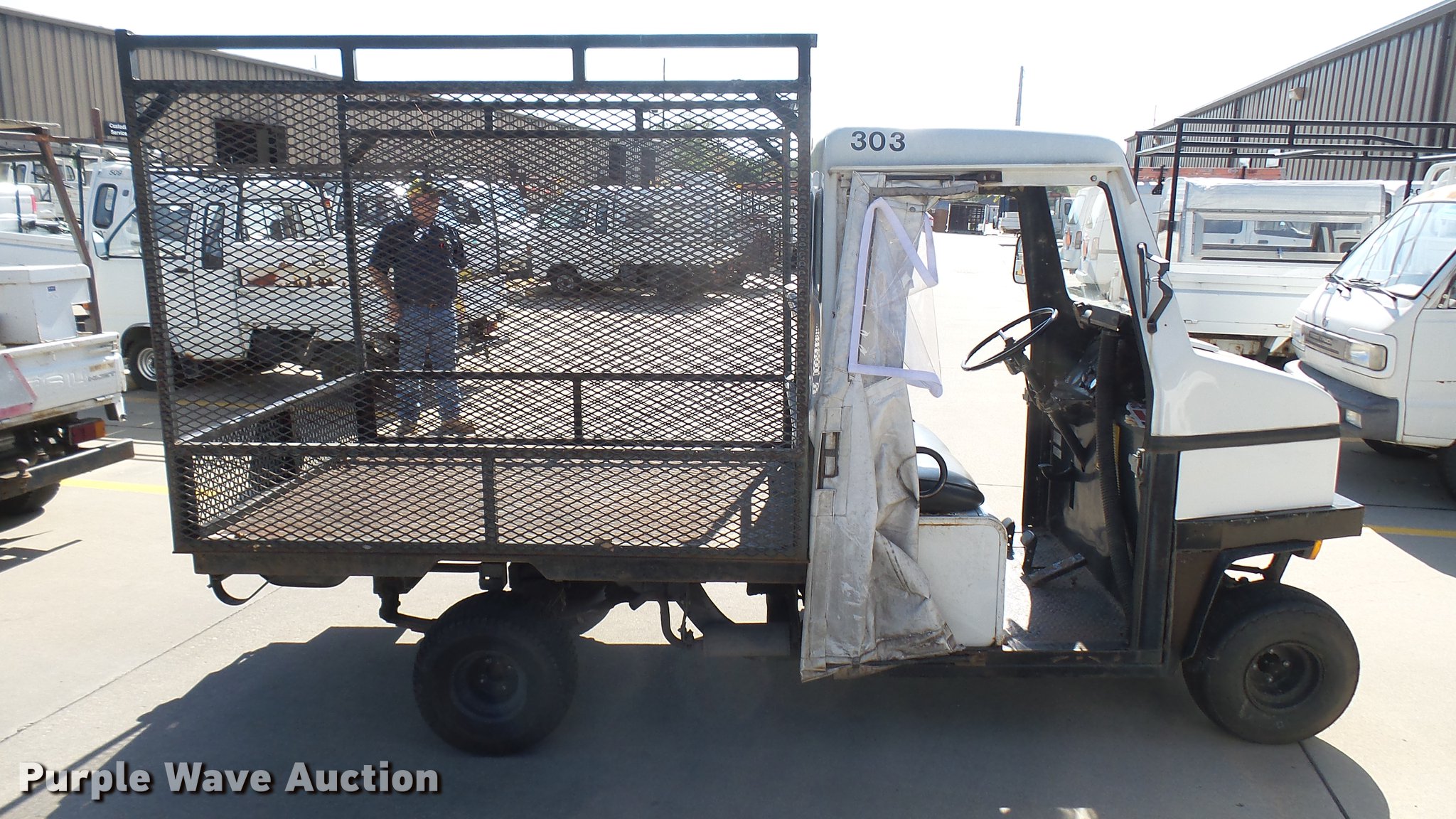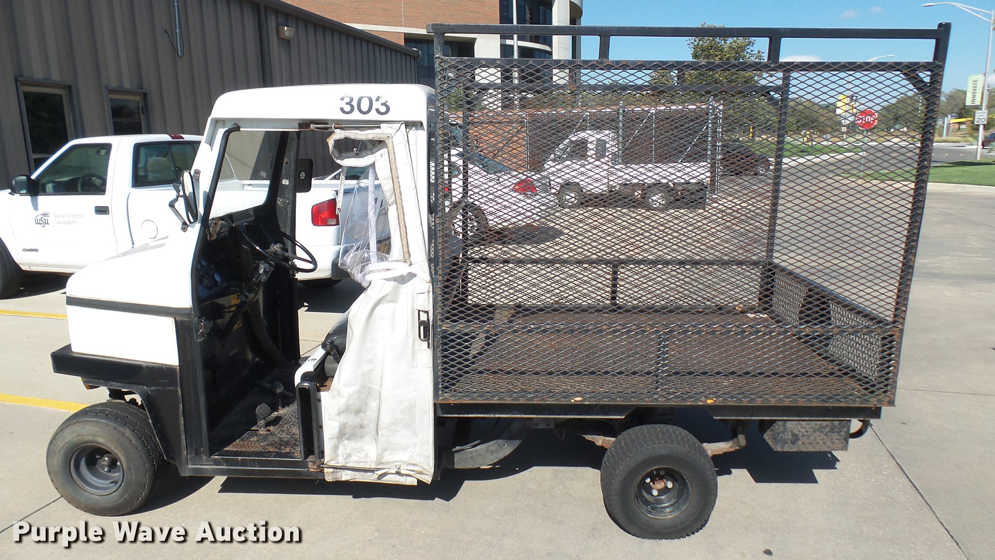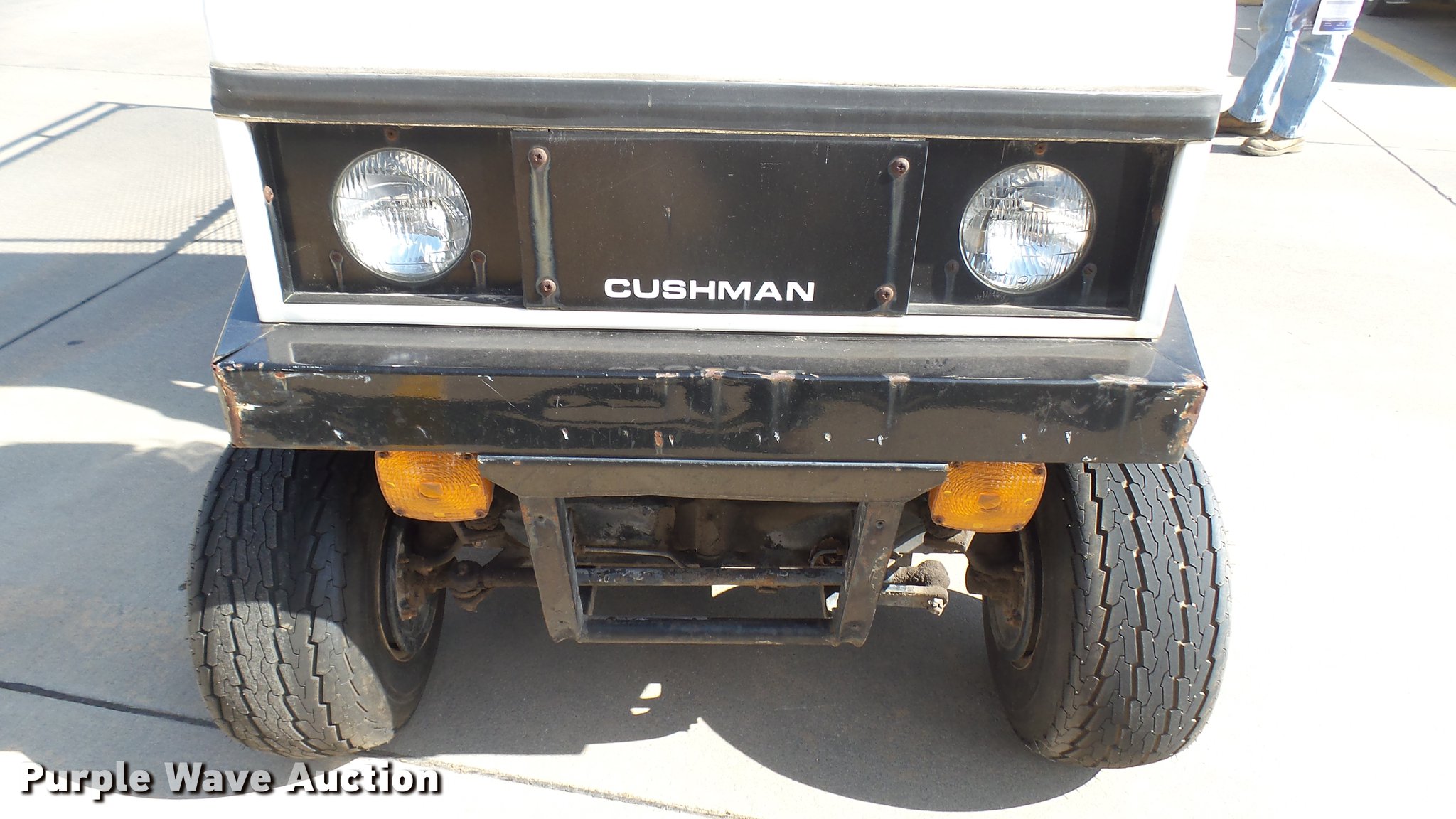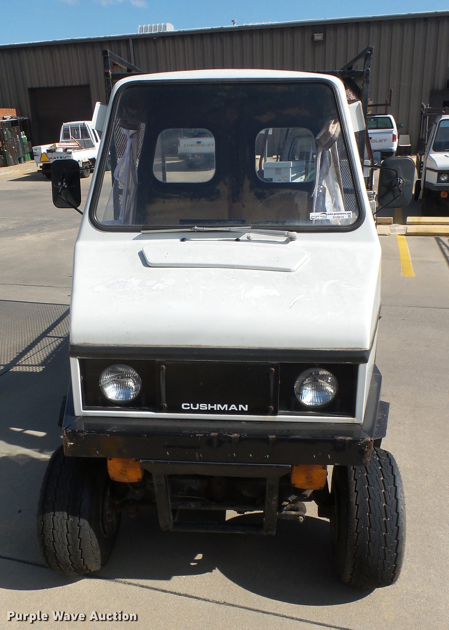 Purple Wave is selling a used Utility Vehicle in Kansas. This item is a 1989 Cushman utility vehicle with the following: 4,872 hours on meter, Two cylinder gas engine, Enclosed cab, 69" x 54" steel bed, Receiver hitch, 18x9.50-8 tires, Unit# 303