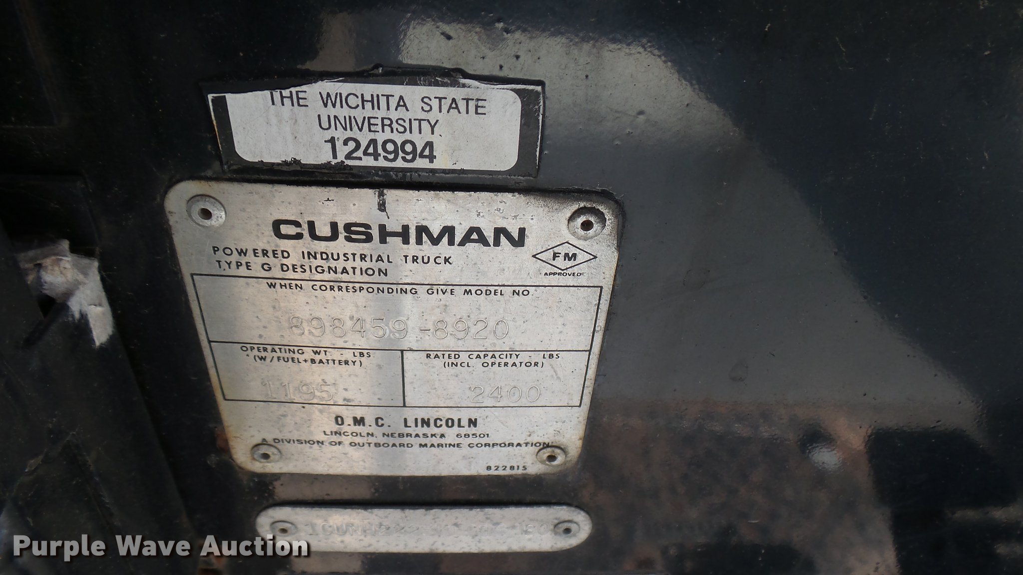 1989 Cushman utility vehicle has sold in Wichita, Kansas for $1375. Item DV9016 sold on November 29th, 2017.