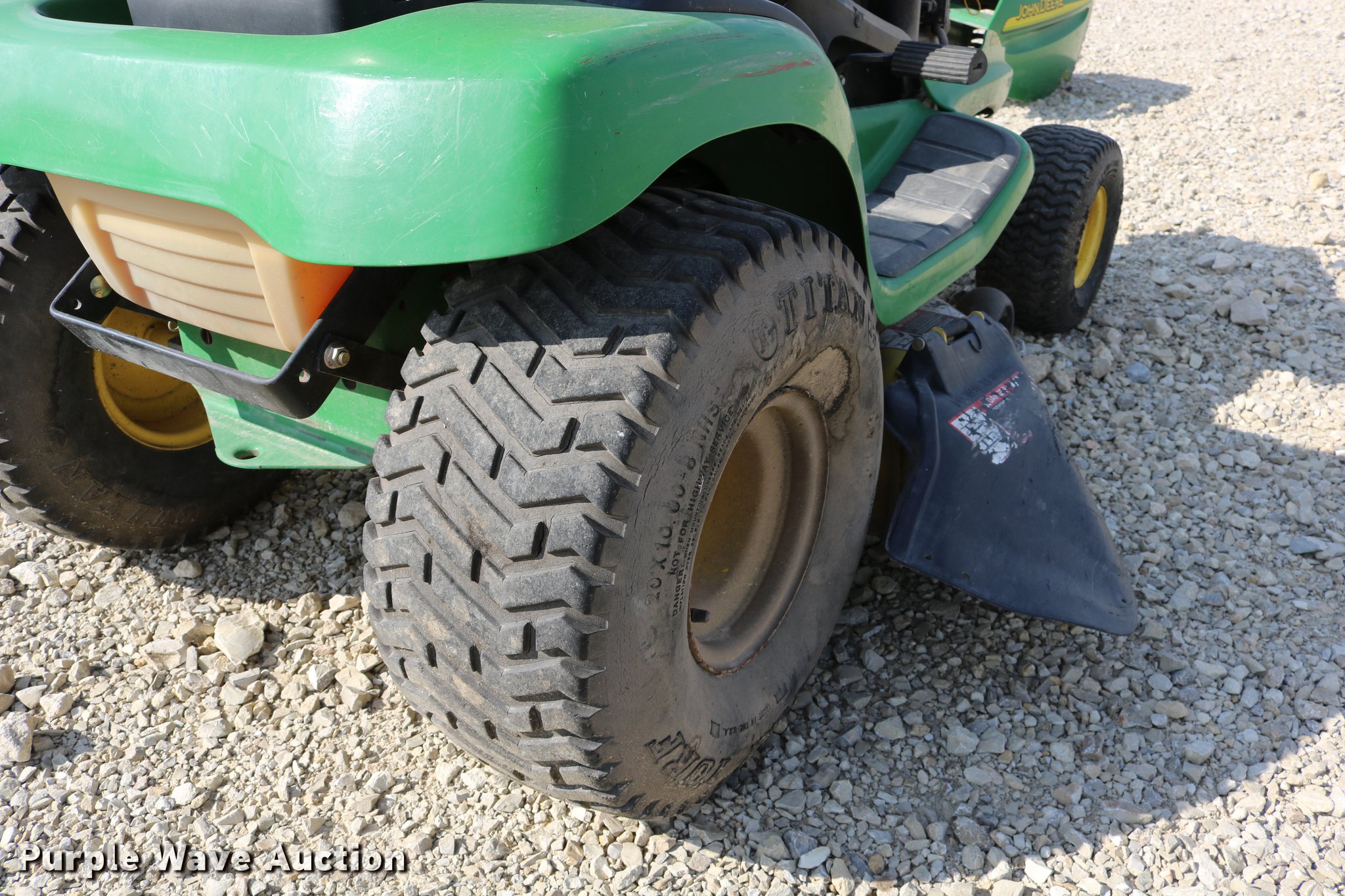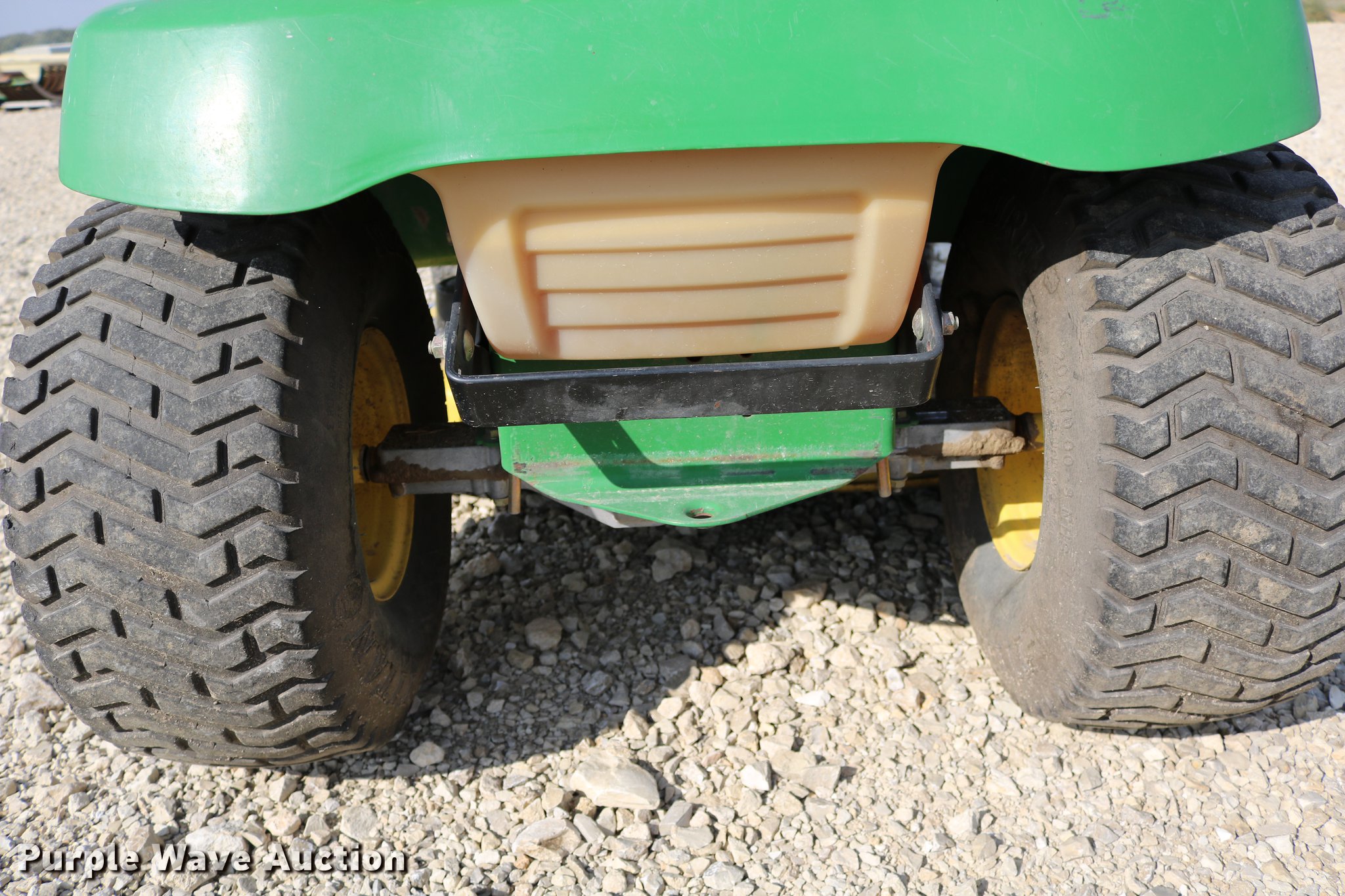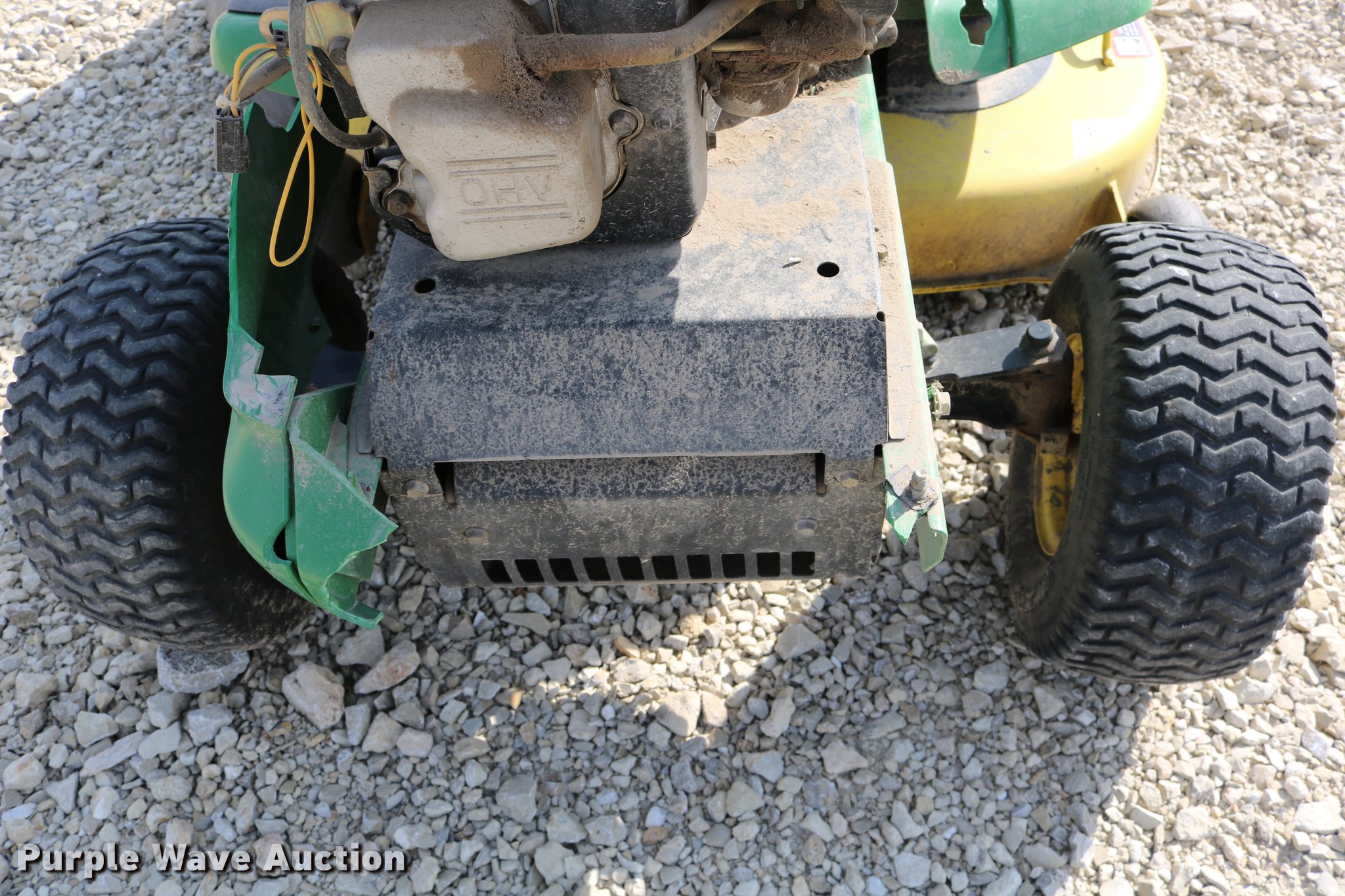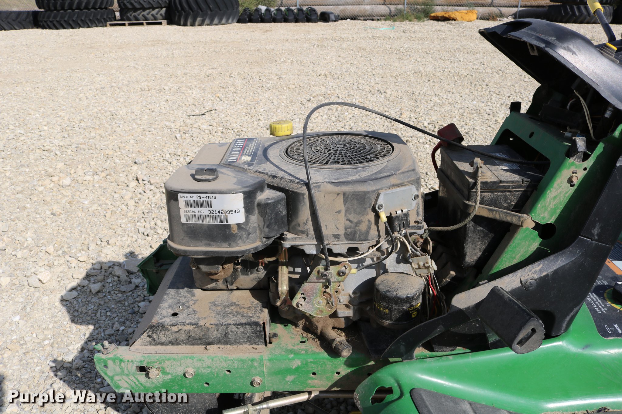 Purple Wave is selling a used Lawn Mower in Kansas. This item is a 2002 John Deere LT150 lawn mower with the following: 38" cut, John Deere 15 HP gas engine, Serial 3214209543, Manual transmission, 5F-1R gears, 15x6.00-6 front tires, 20x10.00-8 rear tires, Engine hood broken off, hinge broken off, Dead battery, Unknown operating condition, Serial M0L150A019265