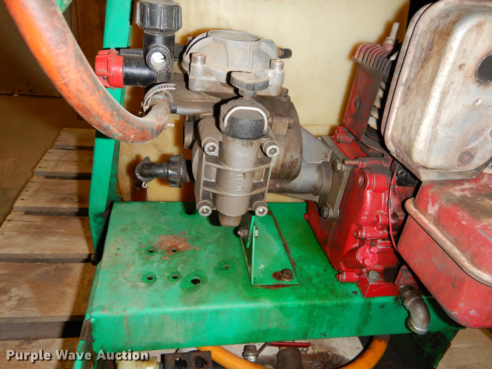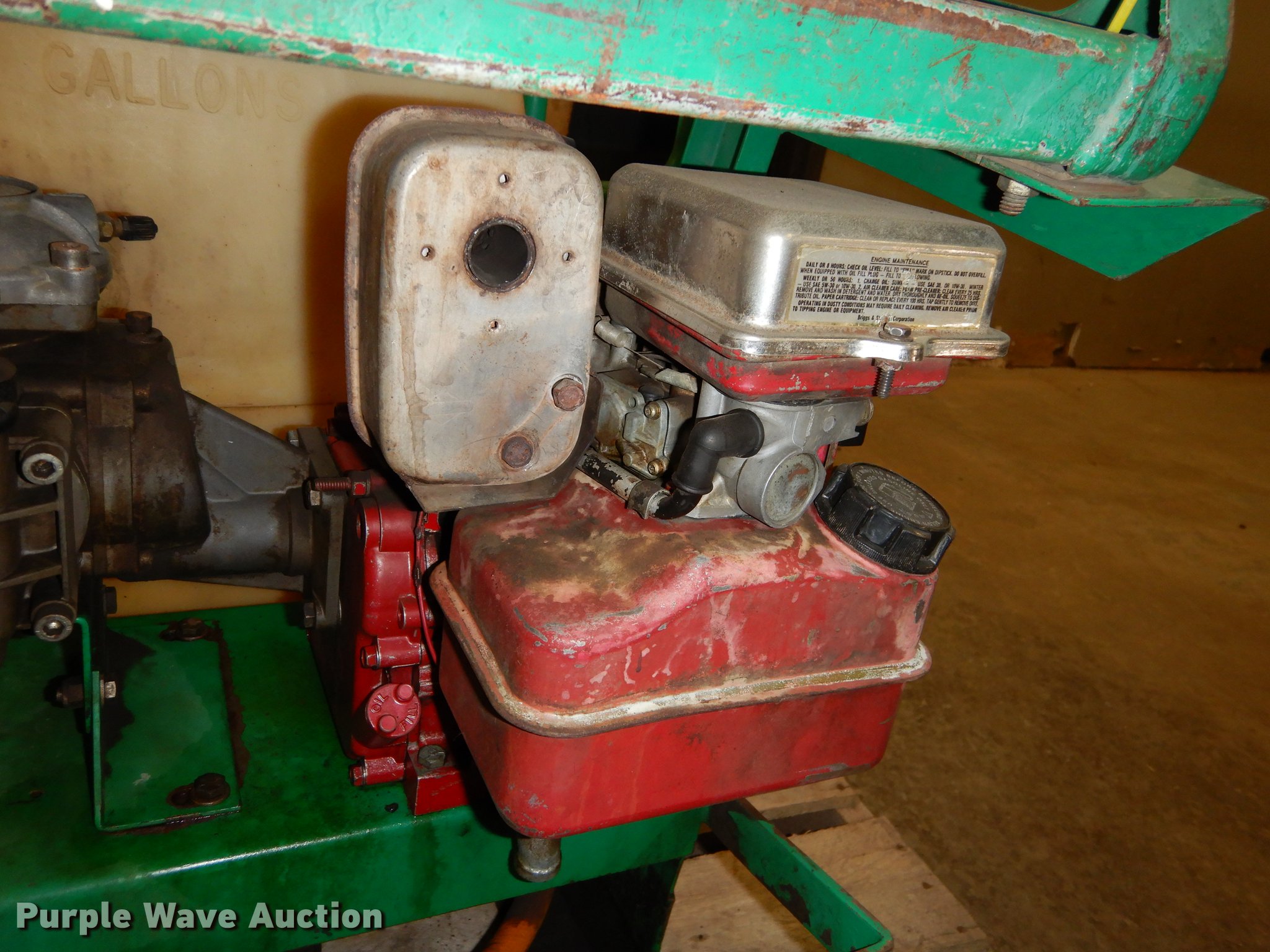 Purple Wave is selling a used Applicator Attach. in Kansas. This item is a Sprayer with the following: Briggs & Stratton 3.5 HP gas engine, Hypro pump, 50 gallon tank, Approx. 250' hose, Lesco skid