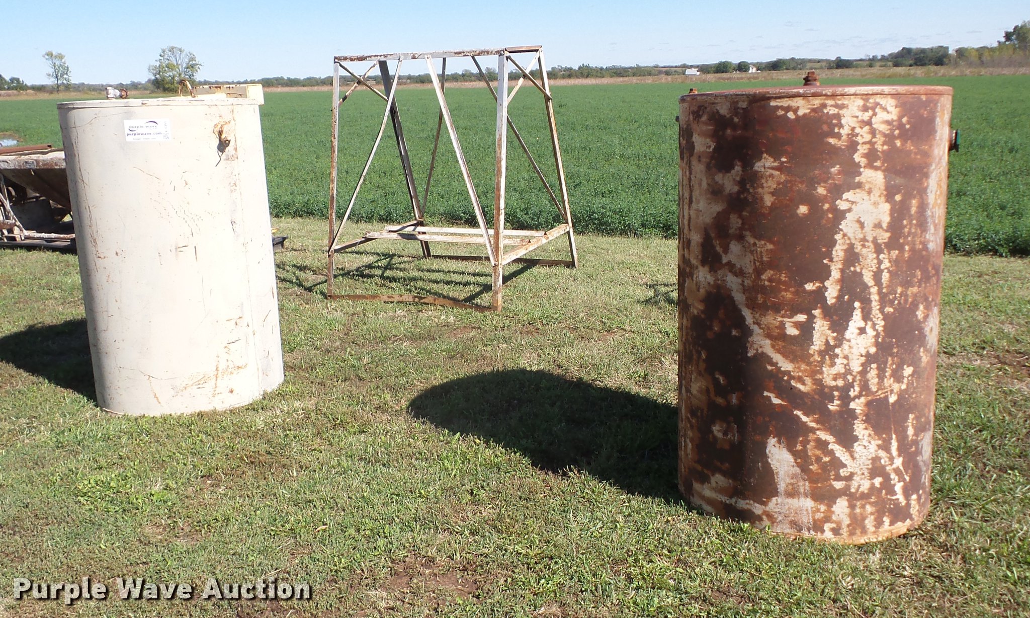 Purple Wave is selling a used Fuel and Lube in Kansas. This item is a (2) steel fuel tanks with the following: 300 gallon capacities, Stands