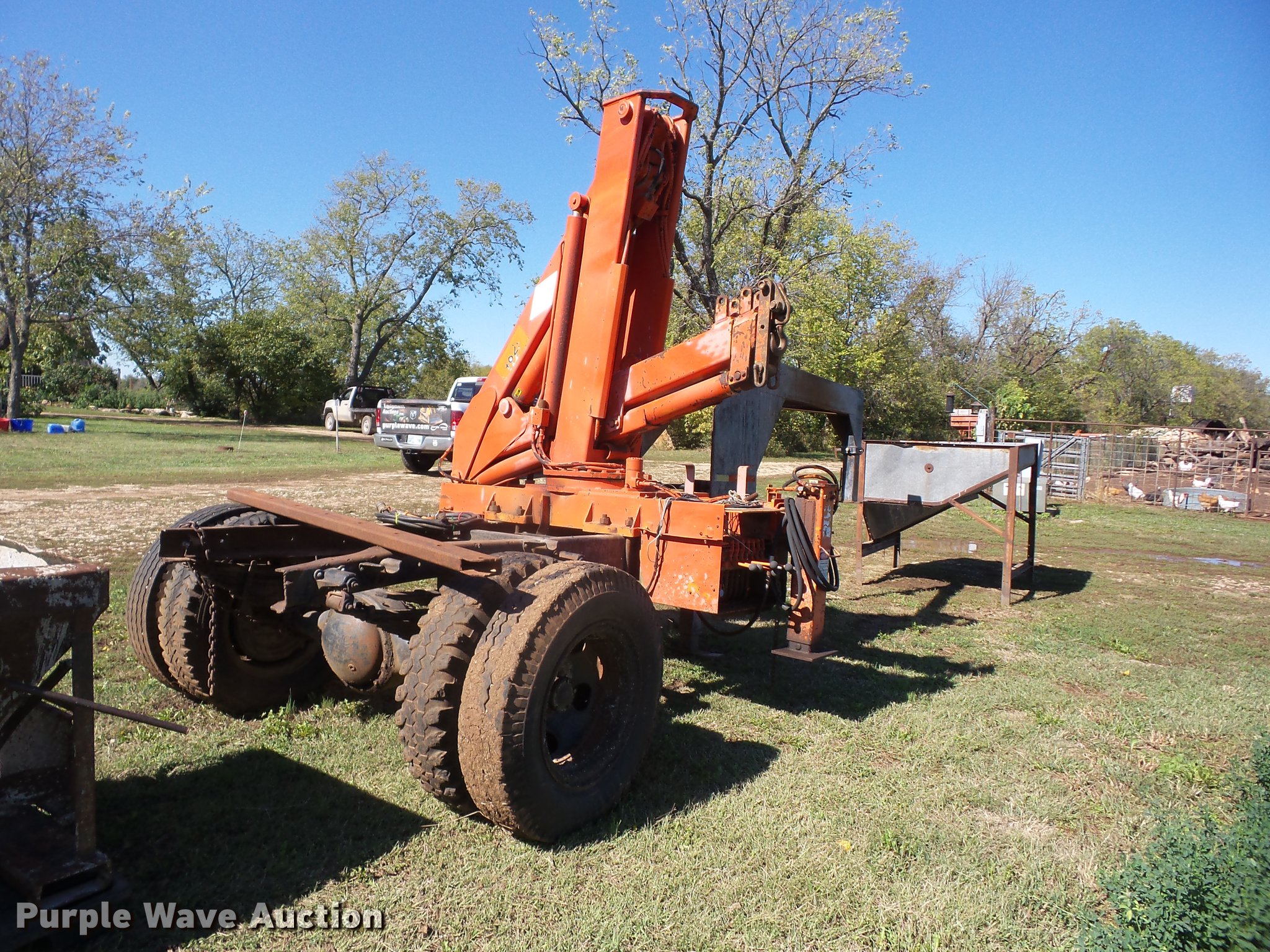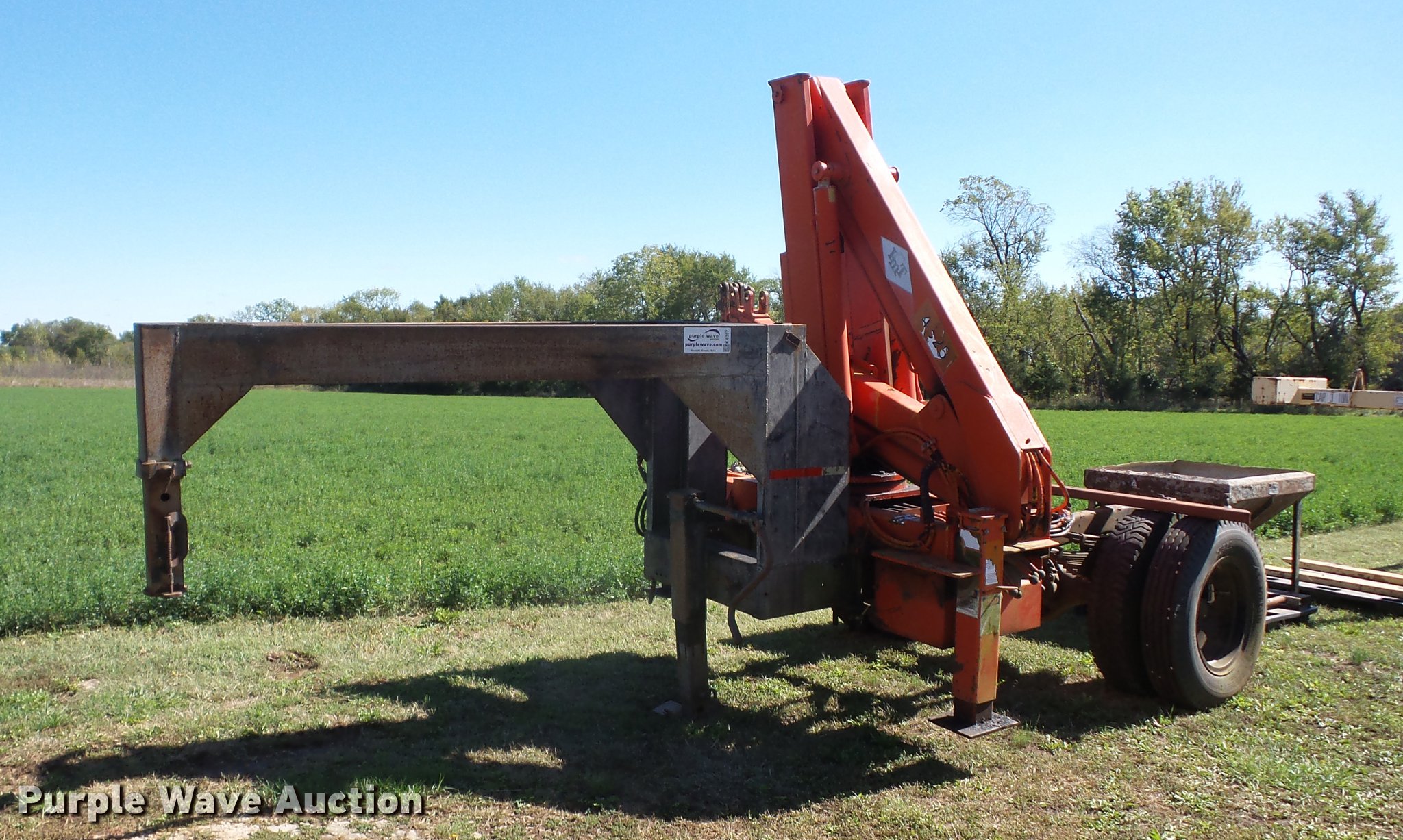 Purple Wave is selling a used Truck Mounted Crane in Kansas. This item is a 1988 IMT 4825 crane with the following: Gooseneck hitch, 8.25-20 tires, Serial 482588G051