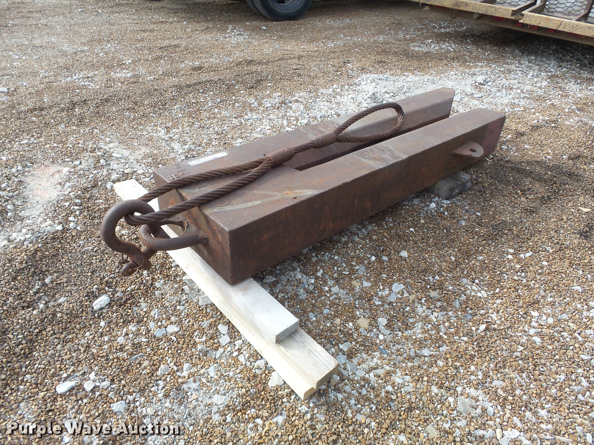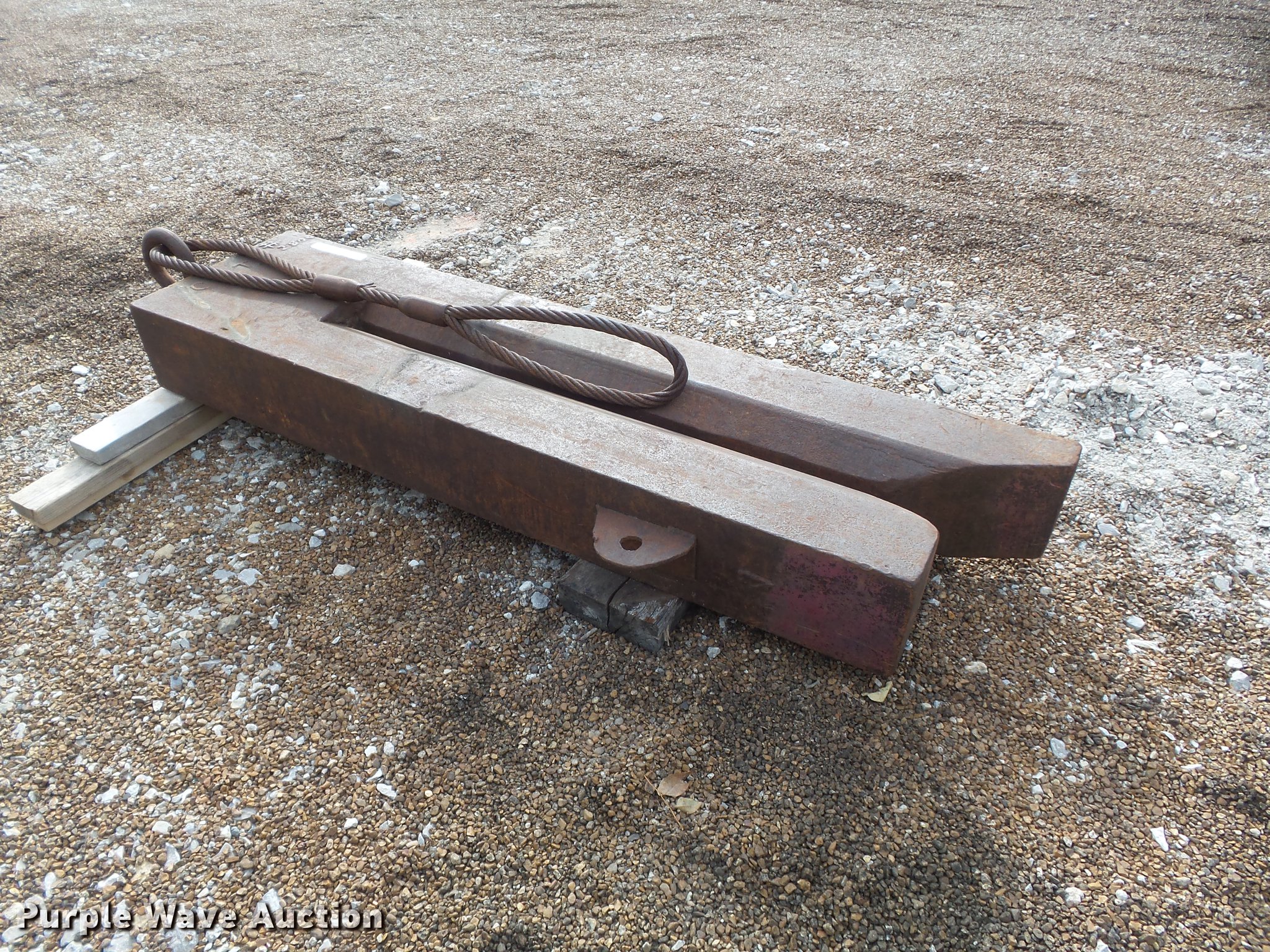 Purple Wave is selling a used Breaker or Hammer in Missouri. This item is a Sheet pile driver weight with the following: 6'L x 18"W x 8" thick, 53"L x 1" diameter double, Lifting eye